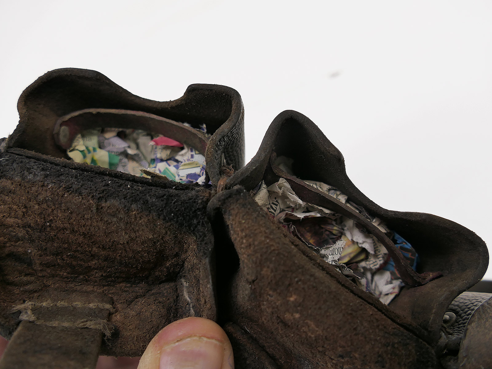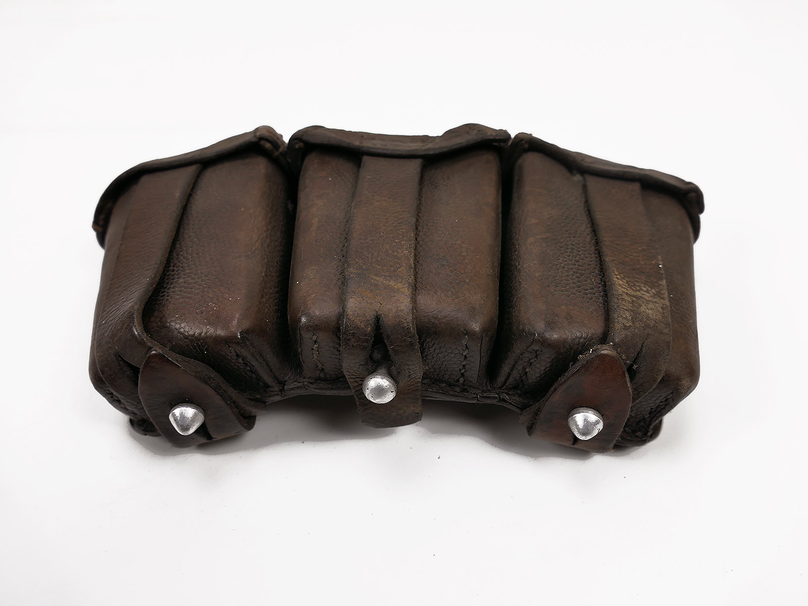 Original 3er K98 cartridge pouch Wehrmacht, brown, WITH the inner dividers, stamped with manufacturer.