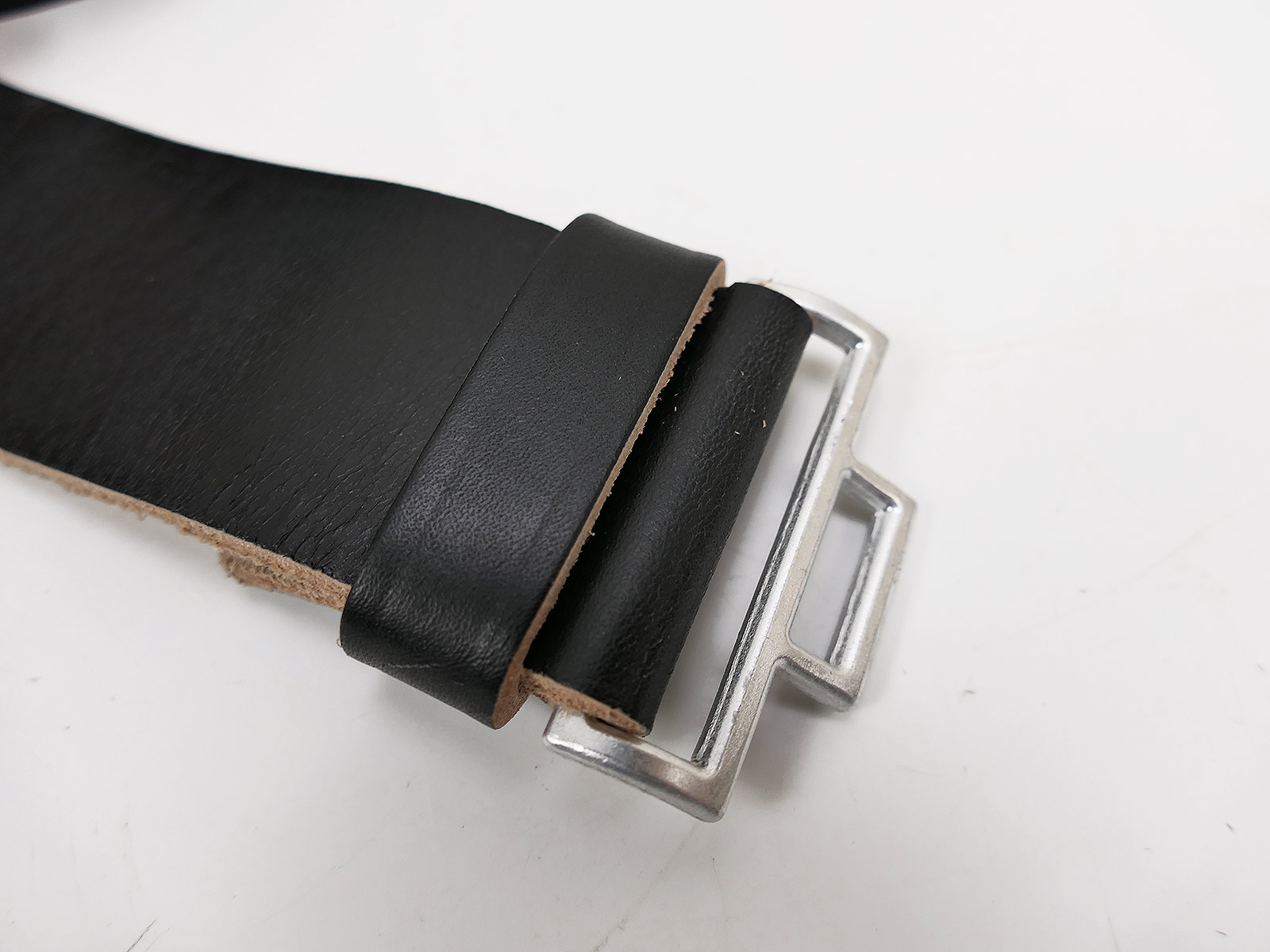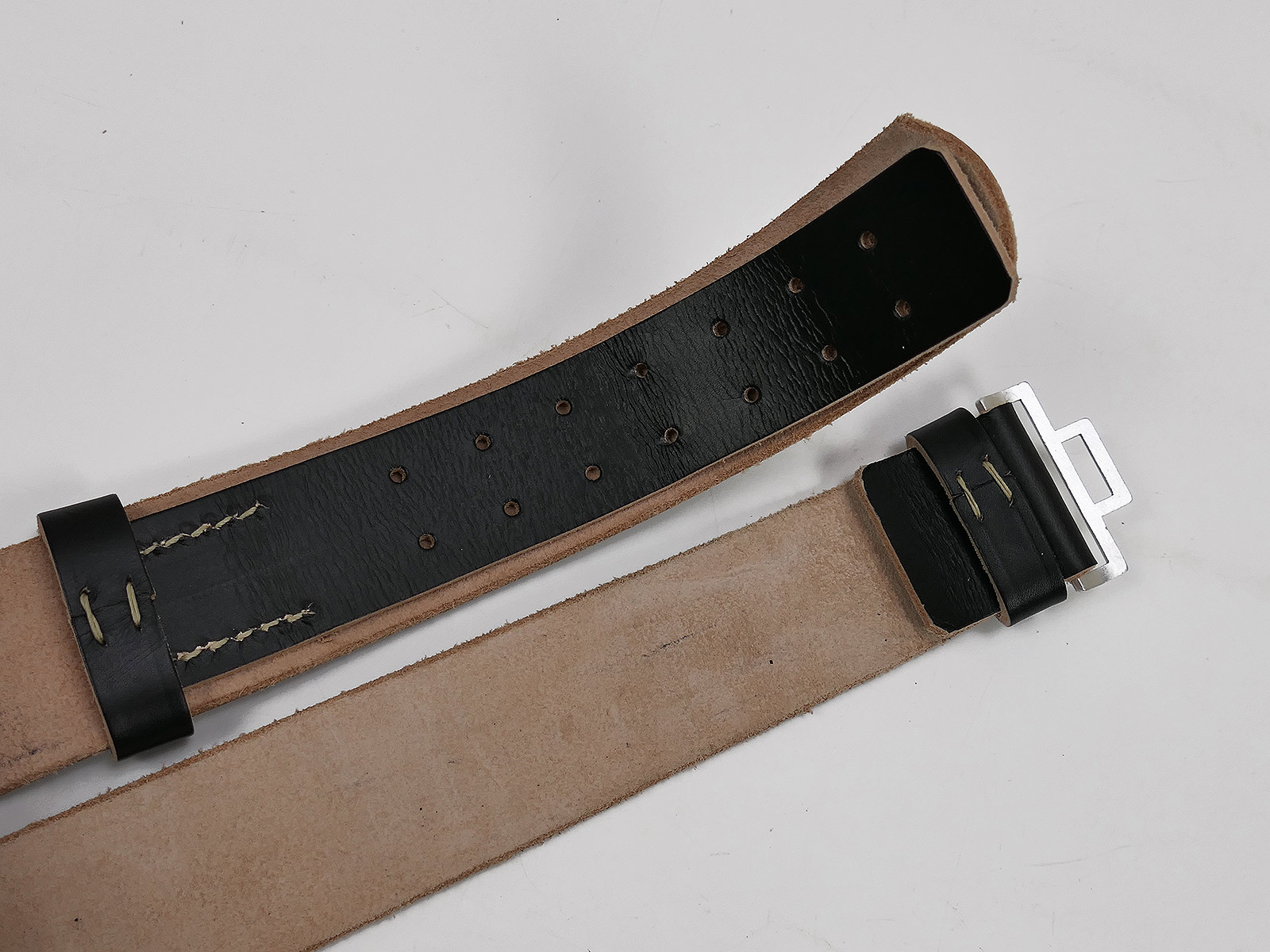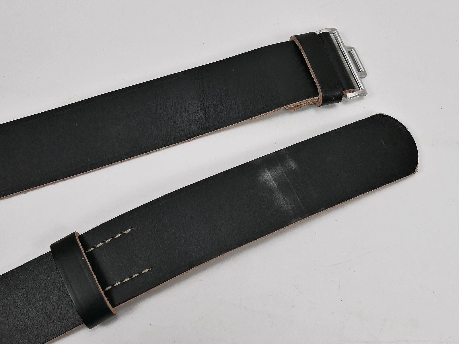Sturdy design with correct aluminium buckle and corresponding leather tongue.