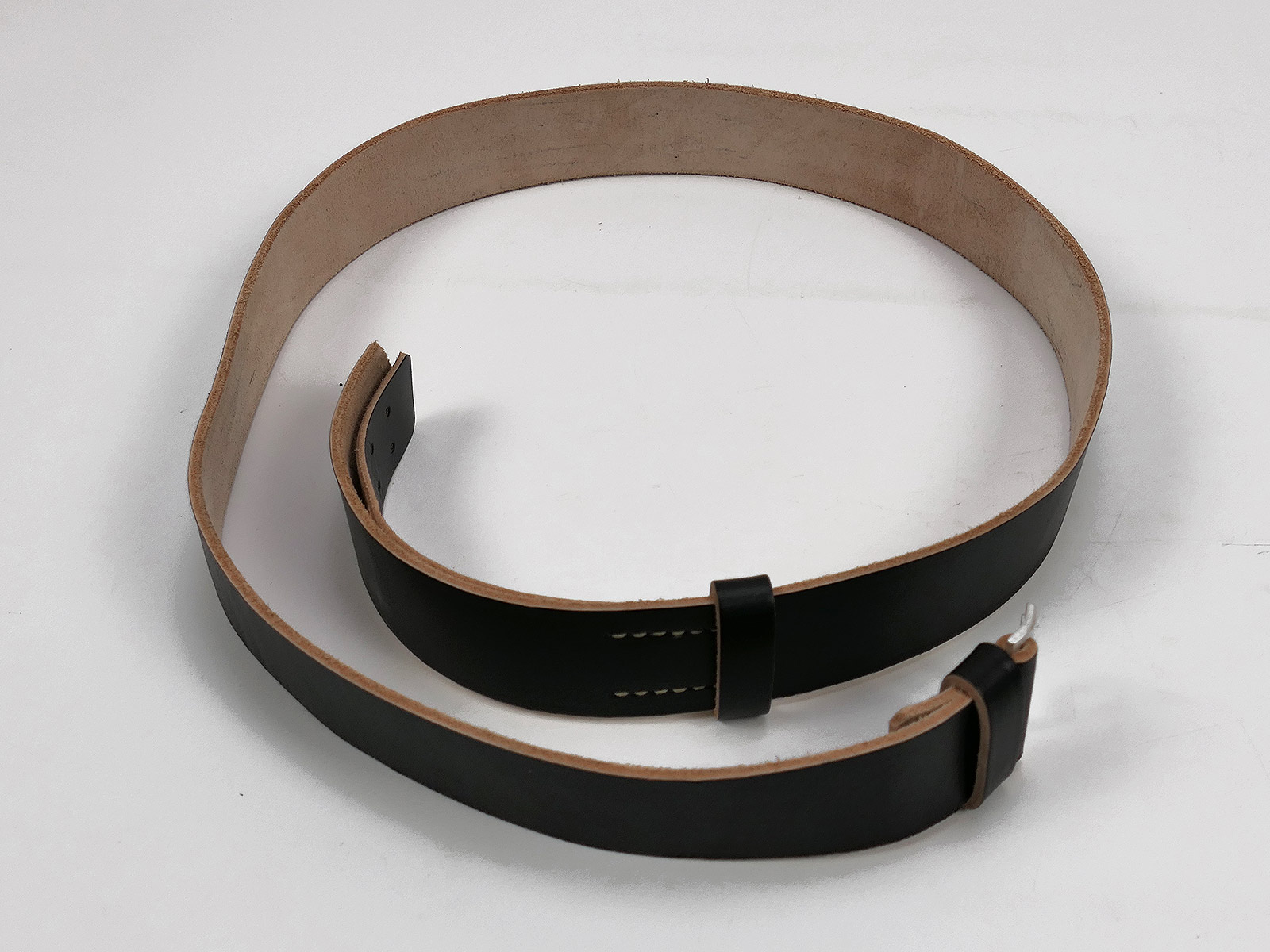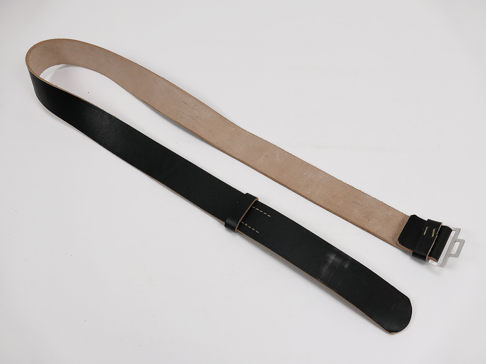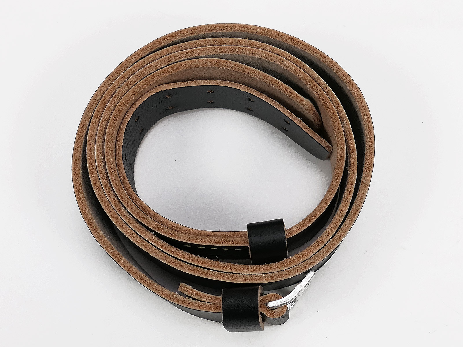Sturdy design with correct aluminium buckle and corresponding leather tongue.