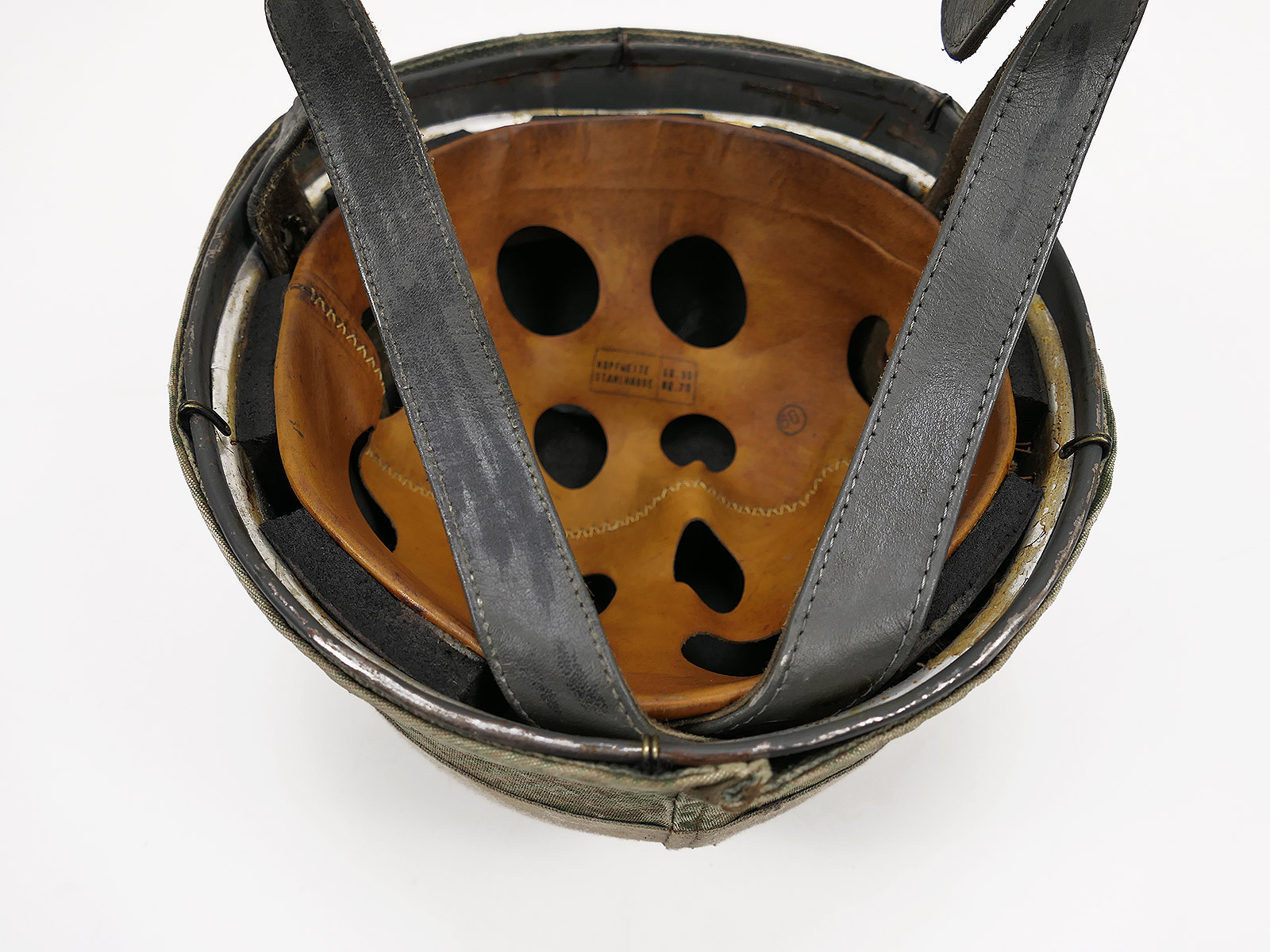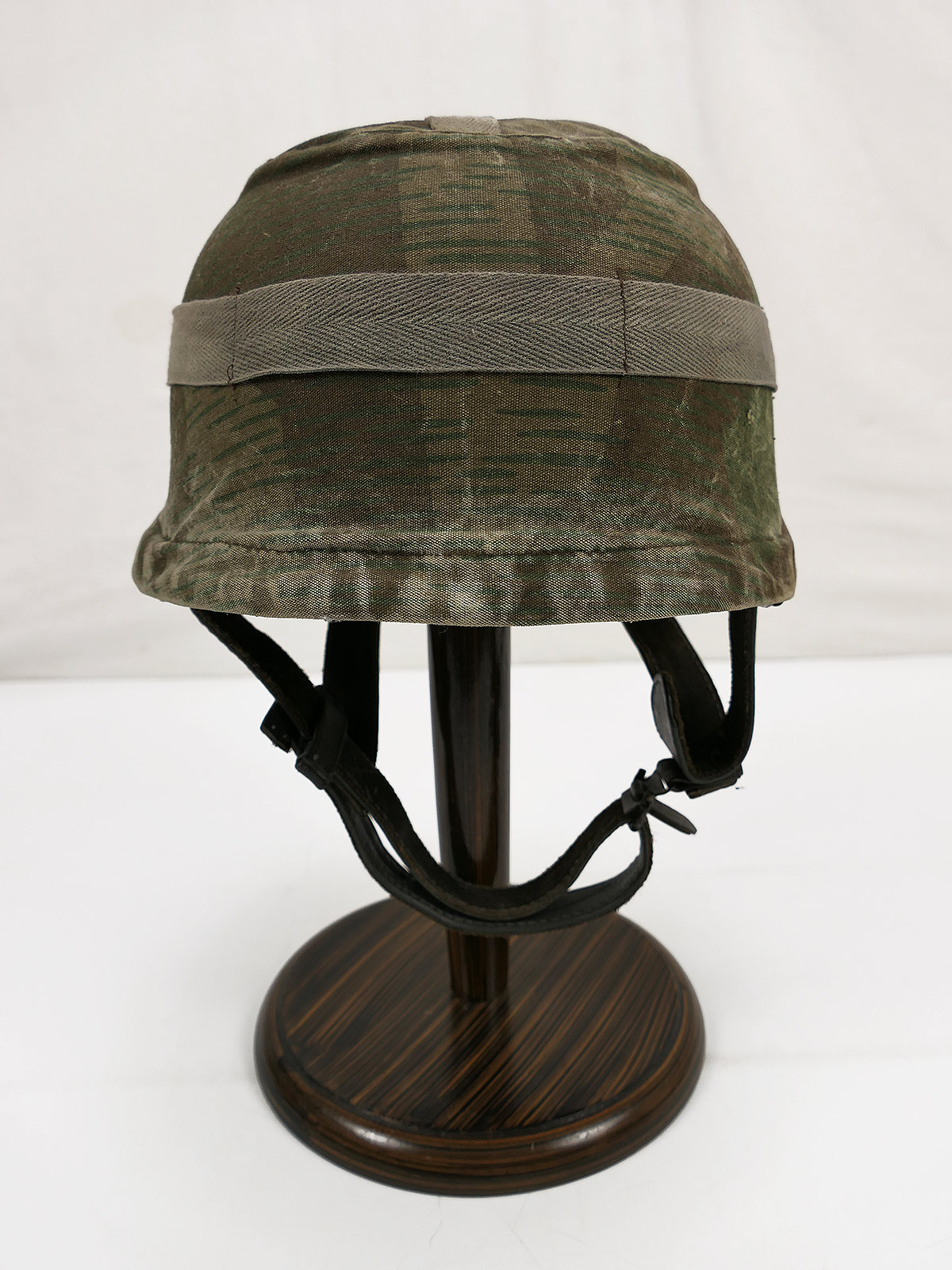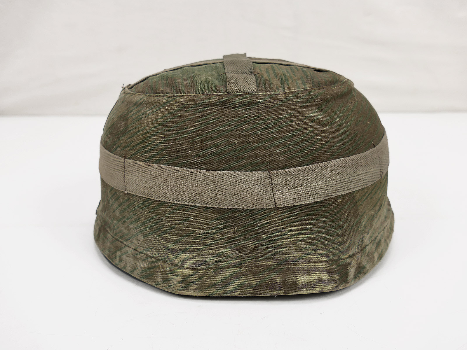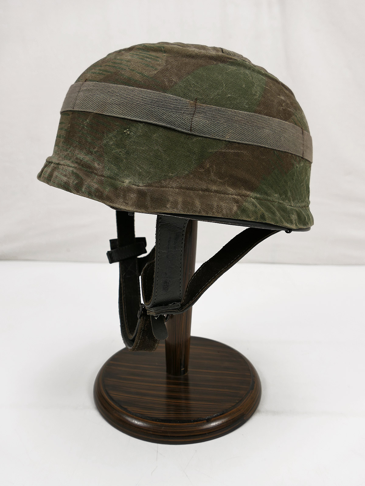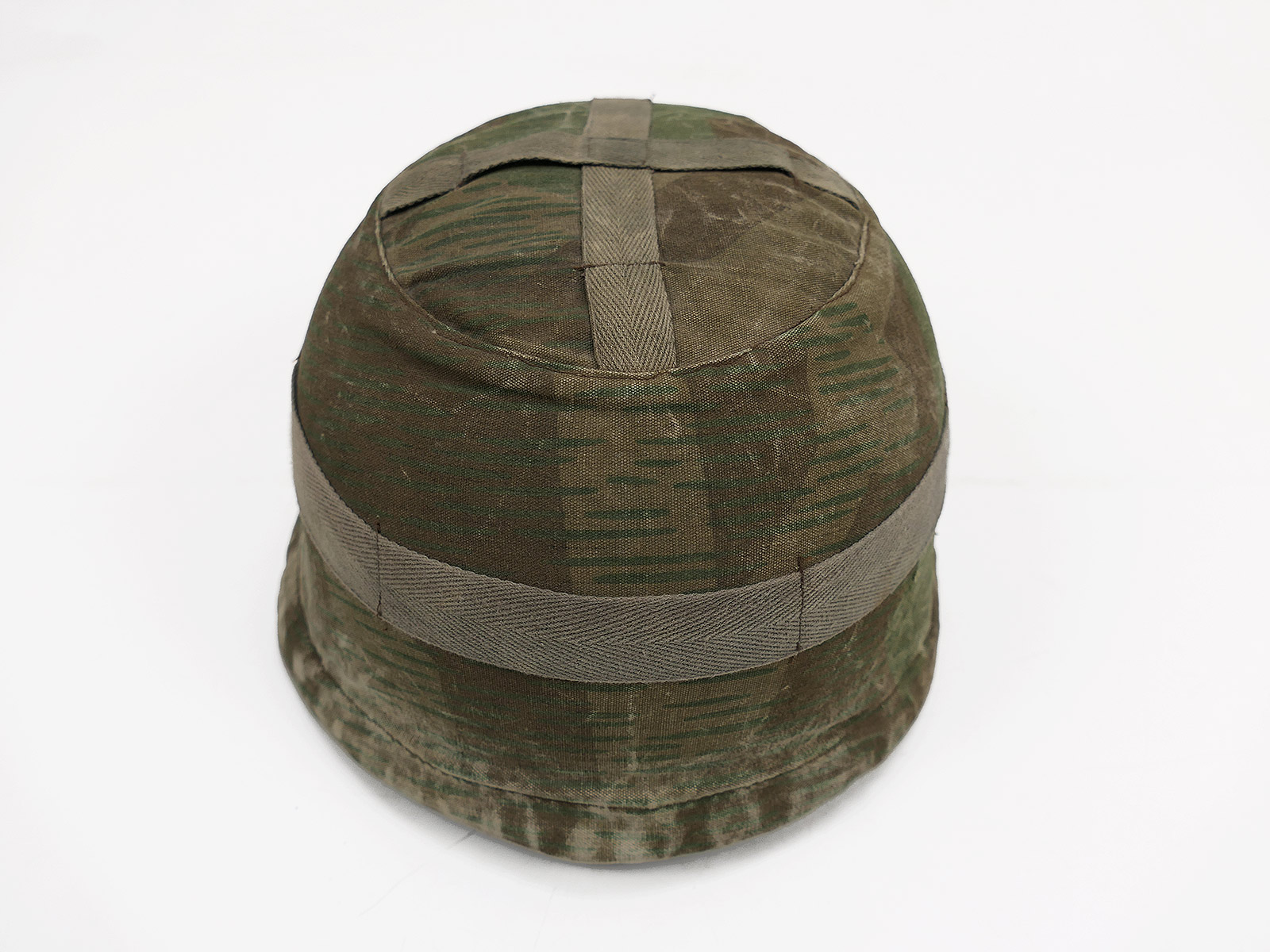 Beautiful patina, 2 badges and a vintage splinter camouflage helmet cover (older repro)