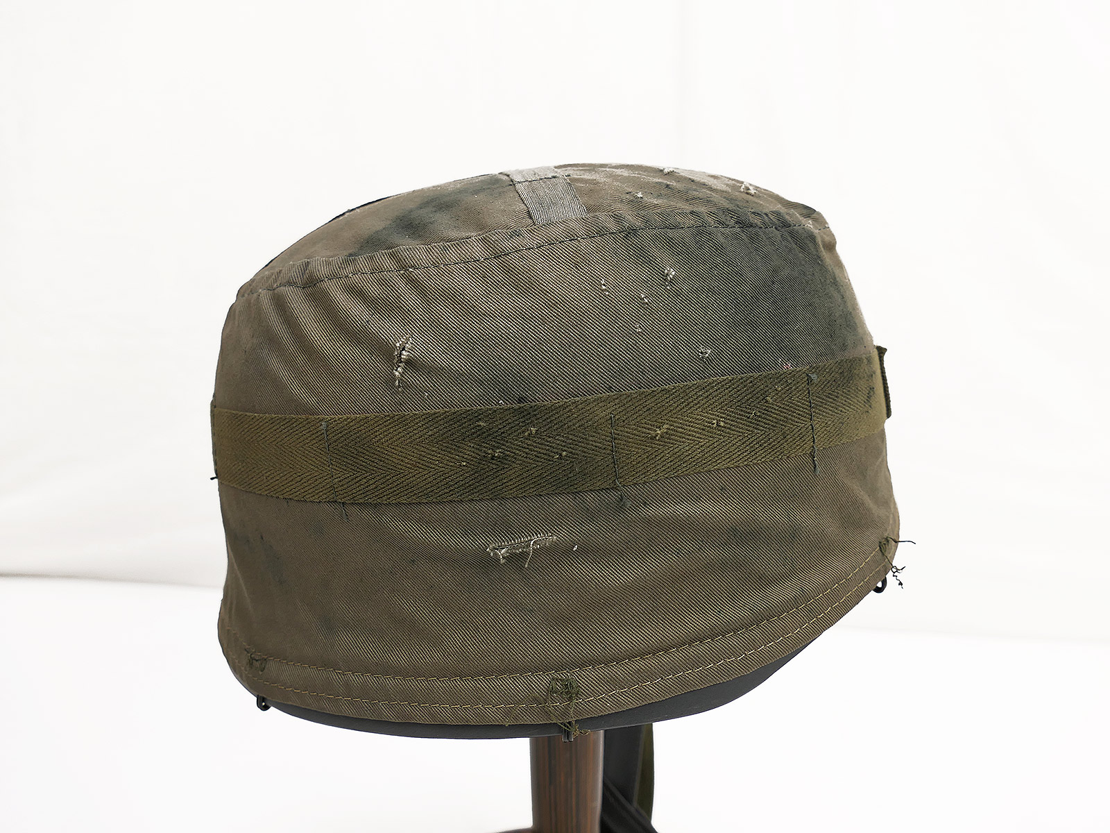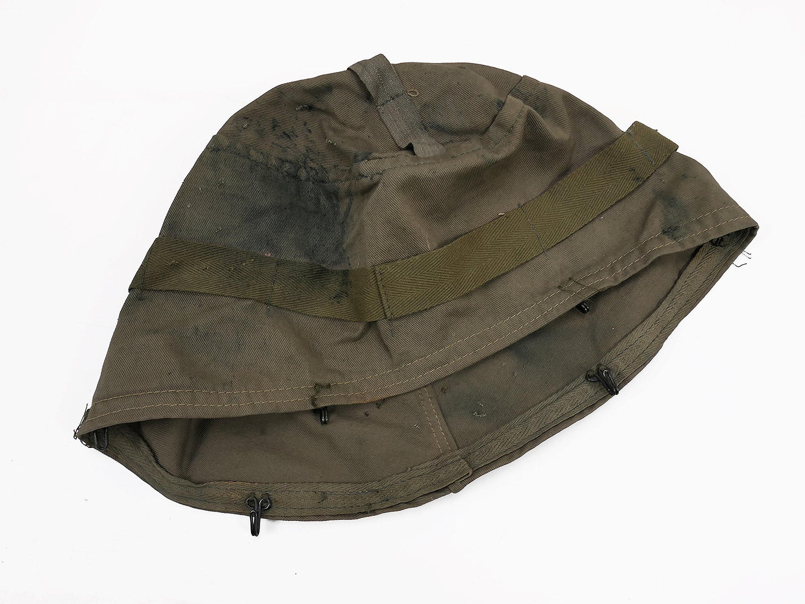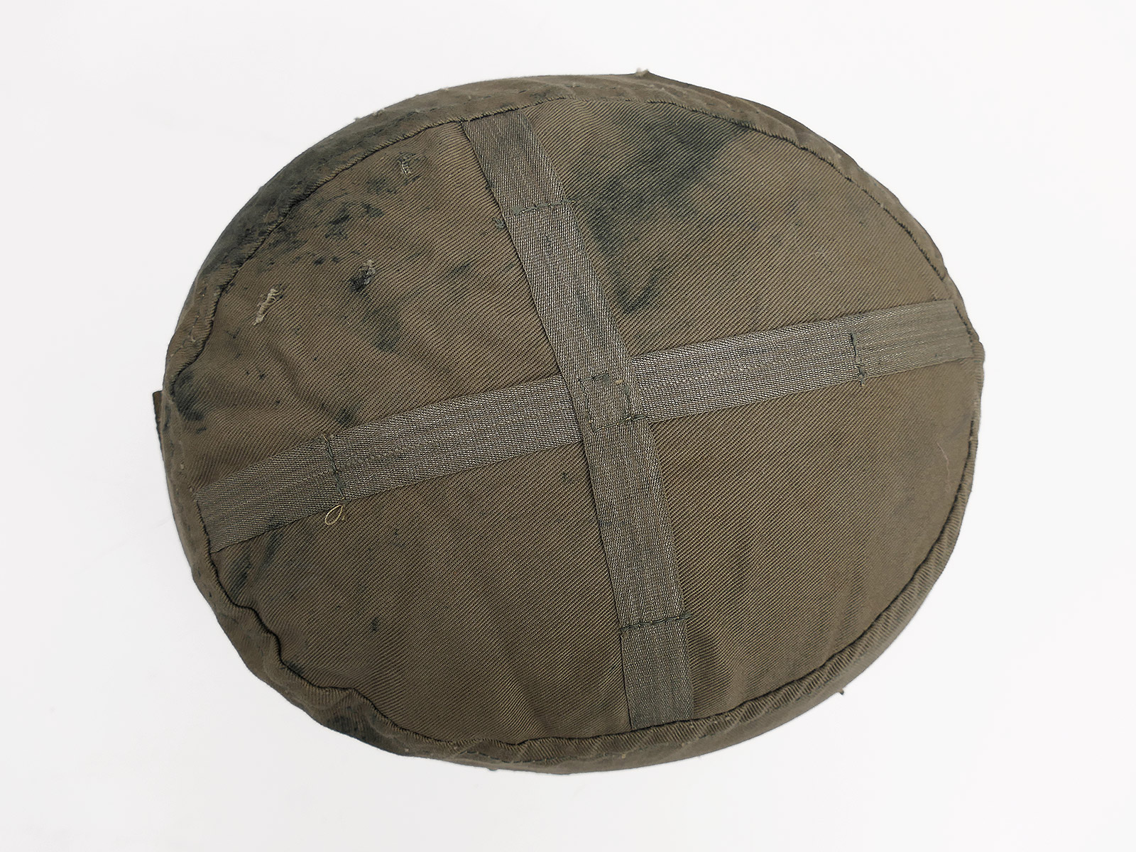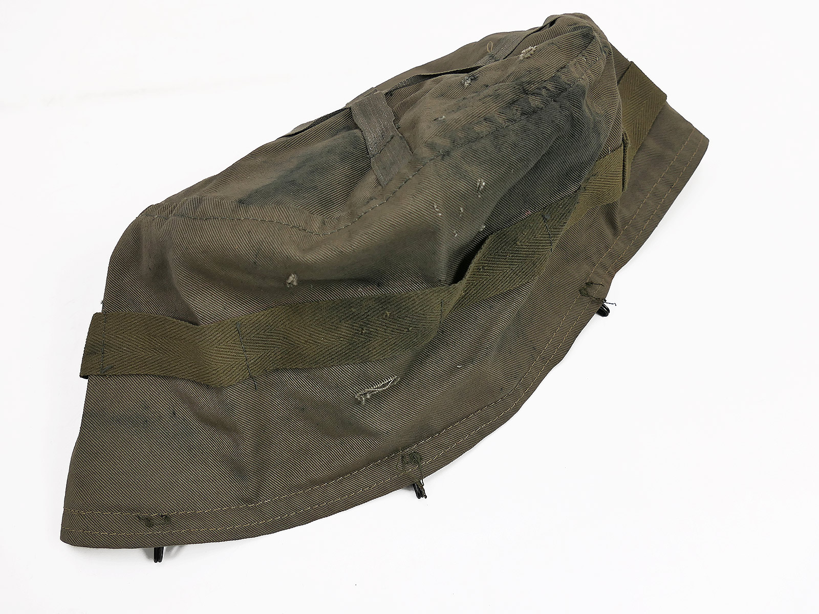 Paratrooper helmet camouflage cover made of old vintage material, light olive,