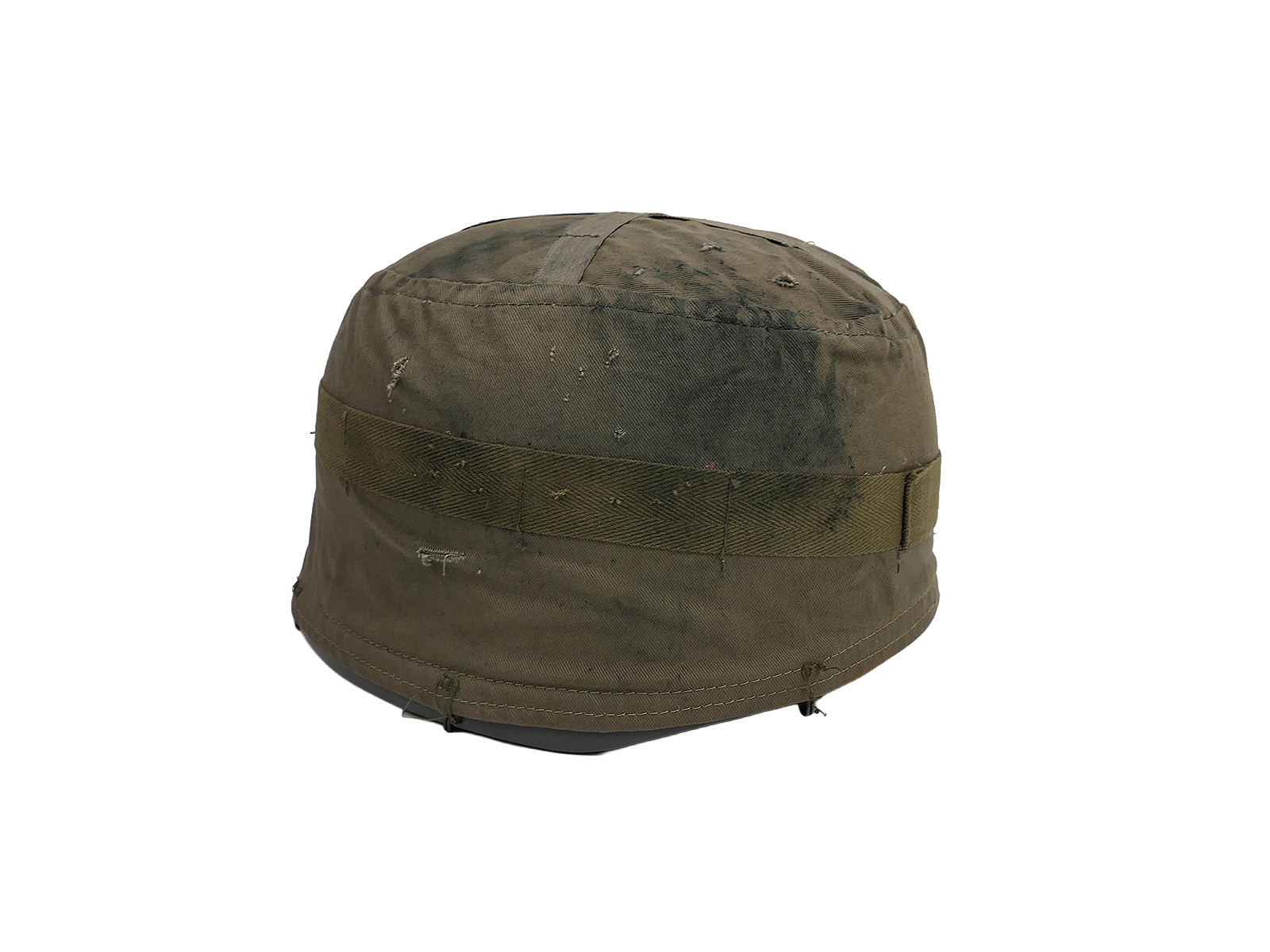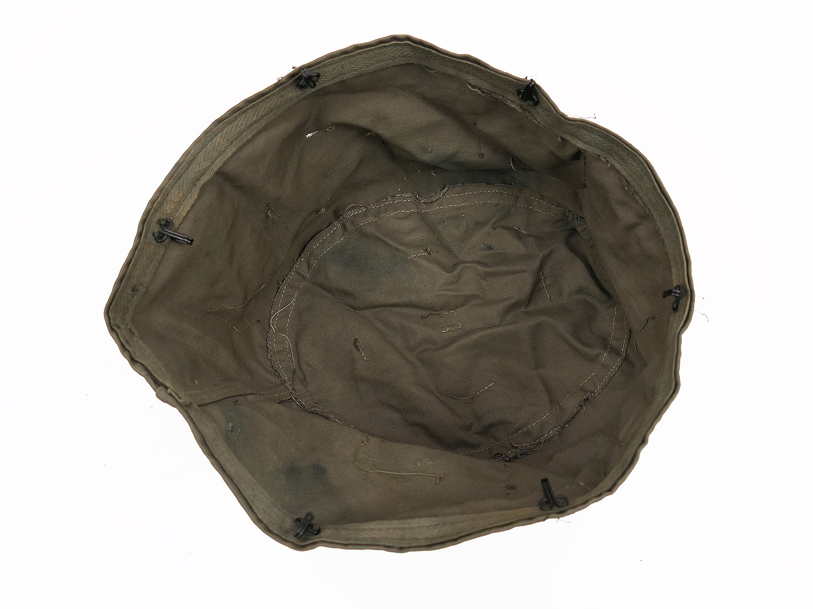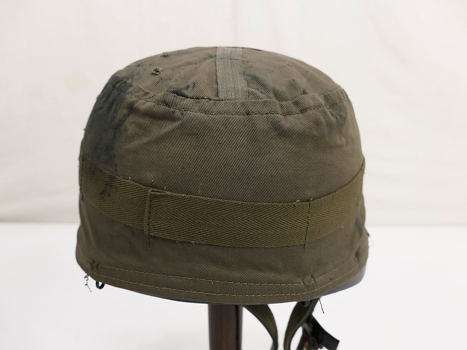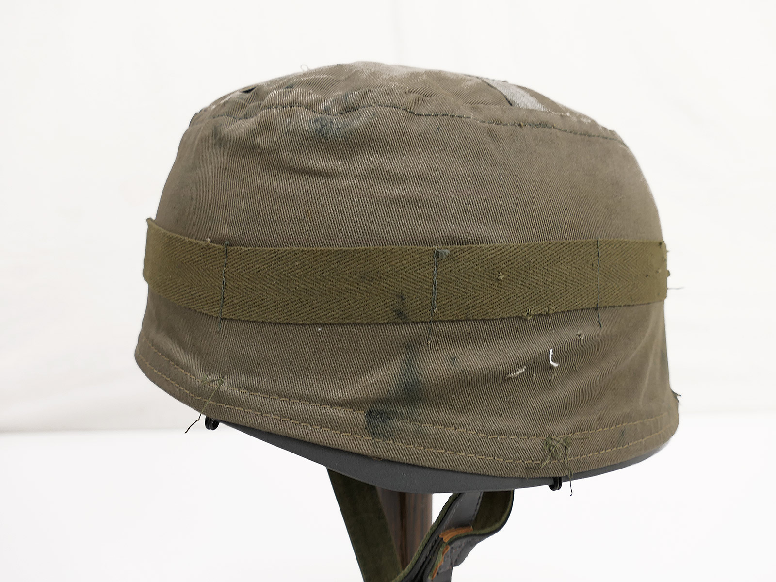Paratrooper helmet camouflage cover made of old vintage material, light olive,