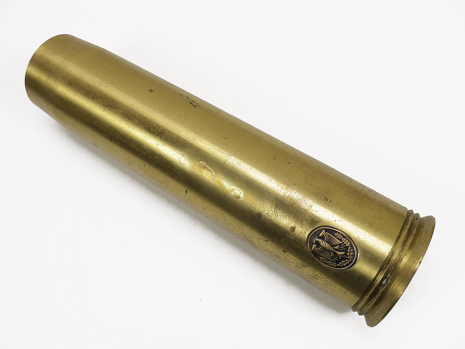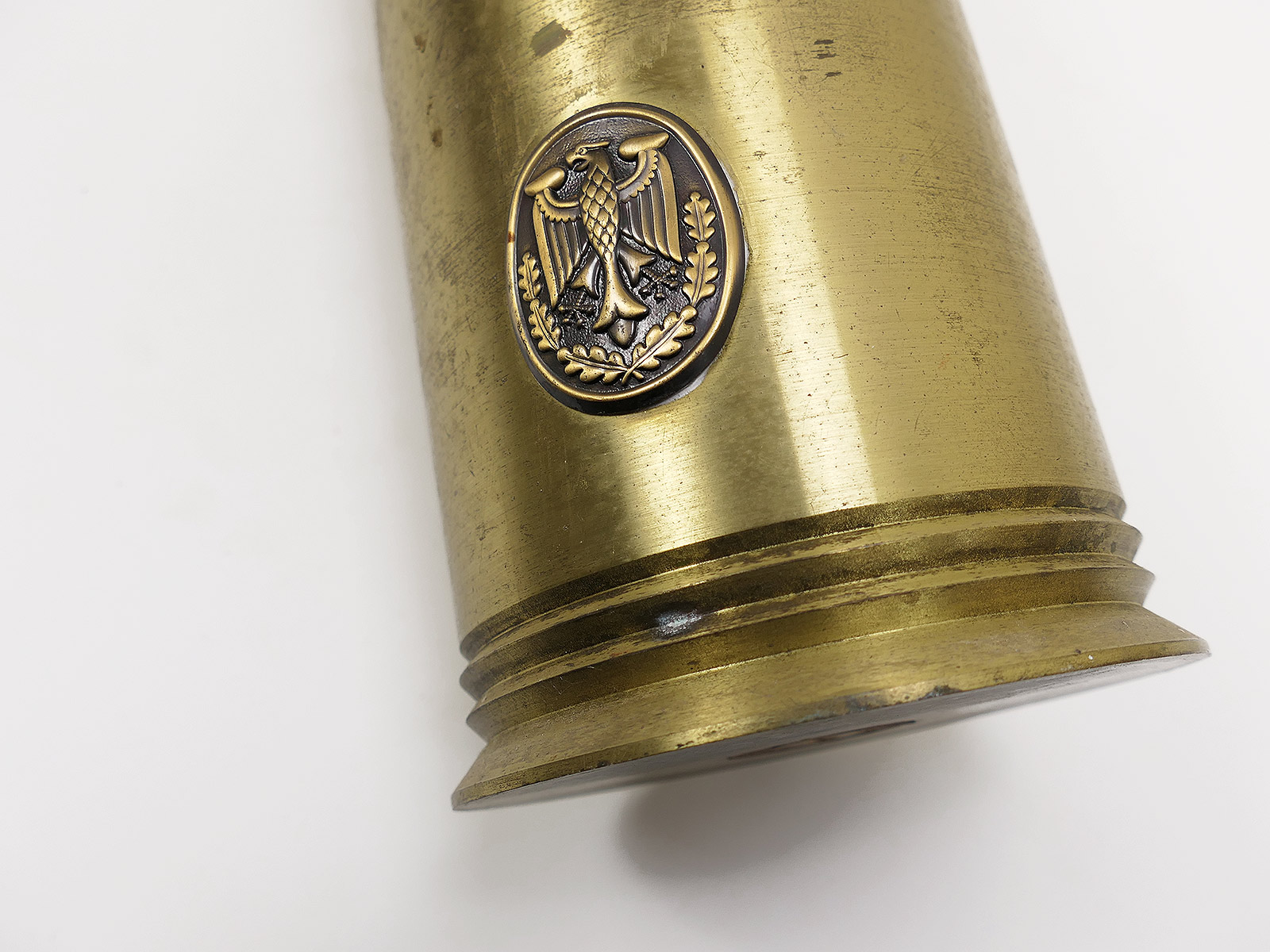 Original ammunition case 105mm brass case cartridge armoured reservist gift with Bundeswehr performance badge