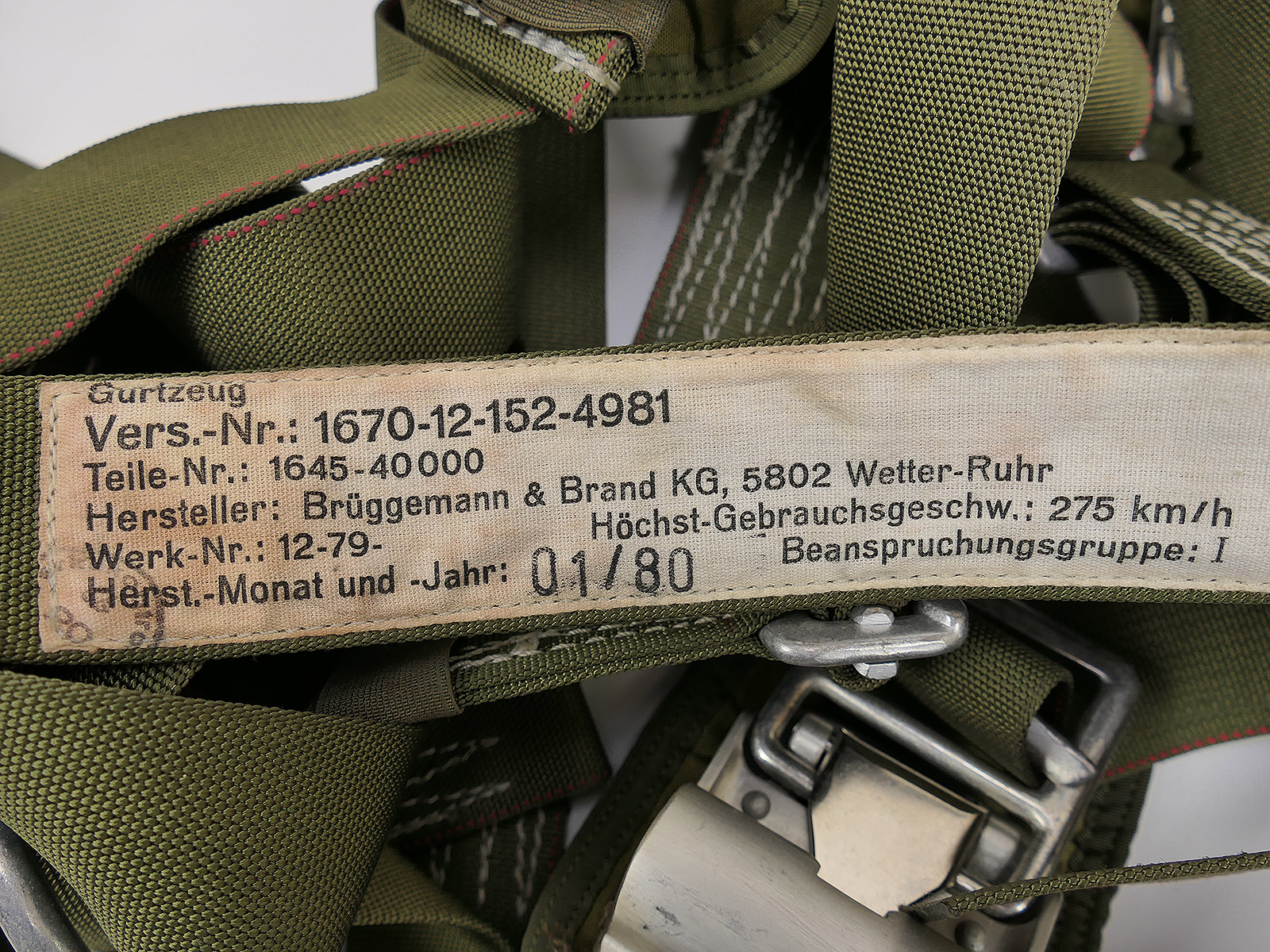 Original Bundeswehr Fallschirm / Fallschirmkappe Gurtzeug 1980er Jahre SAMMLUNG