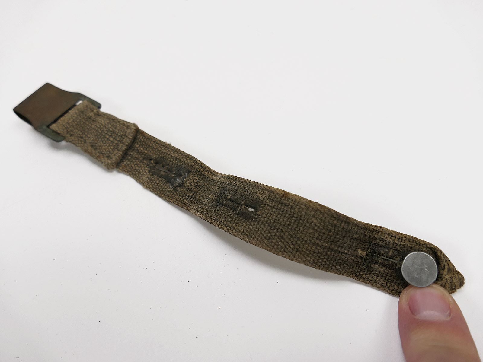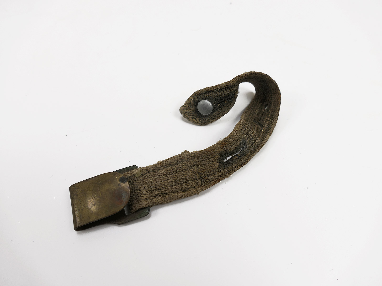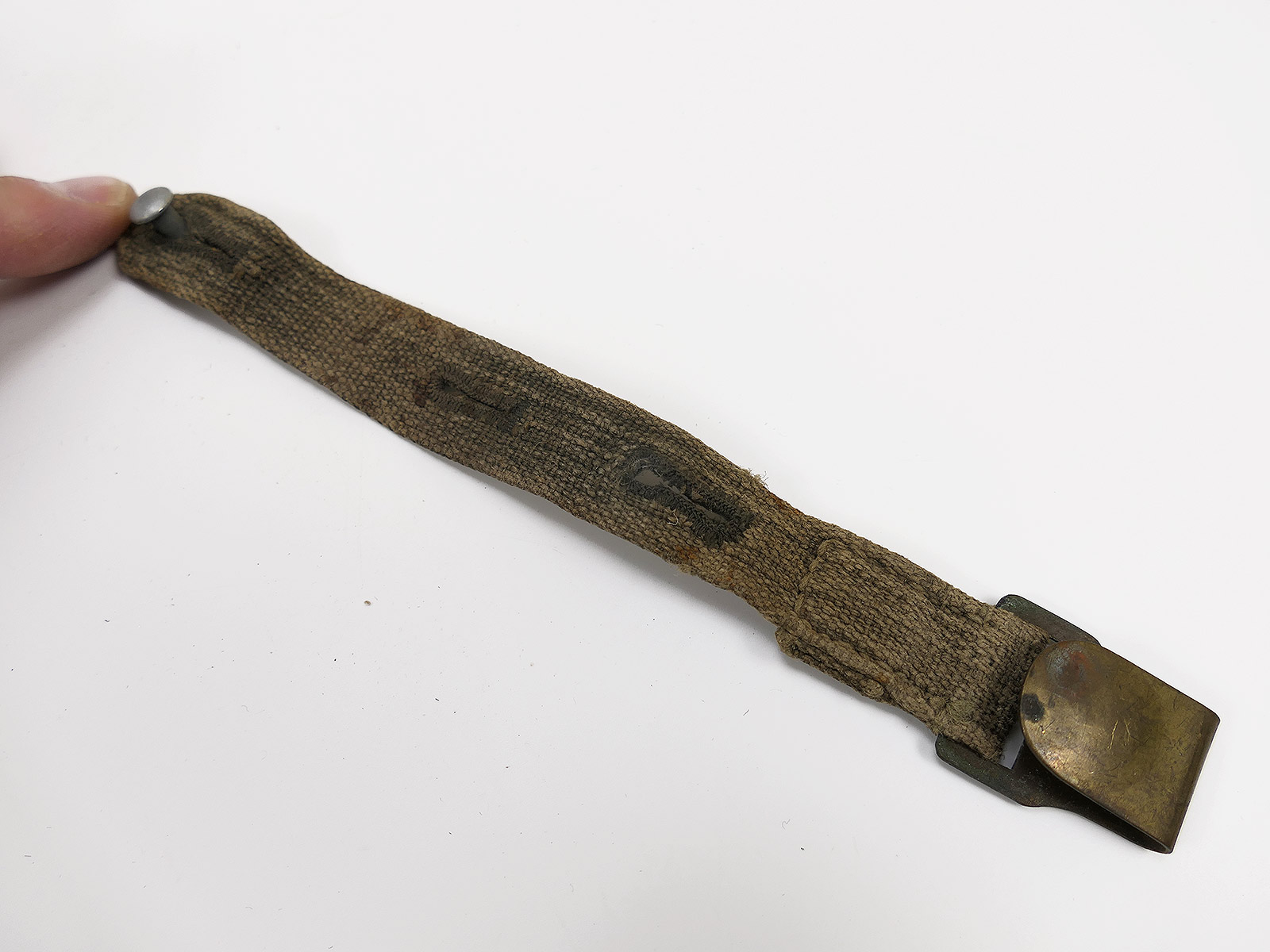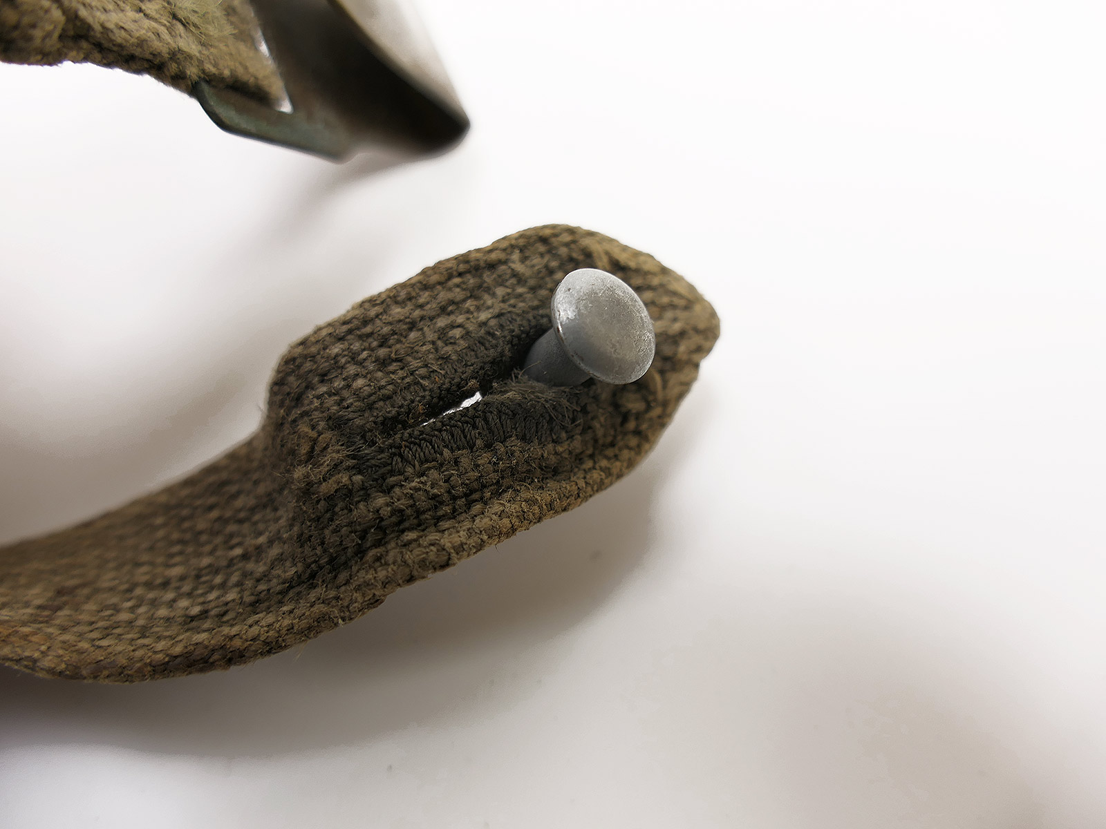 Original short hook / end piece for Wehrmacht gas mask can with added rivet.