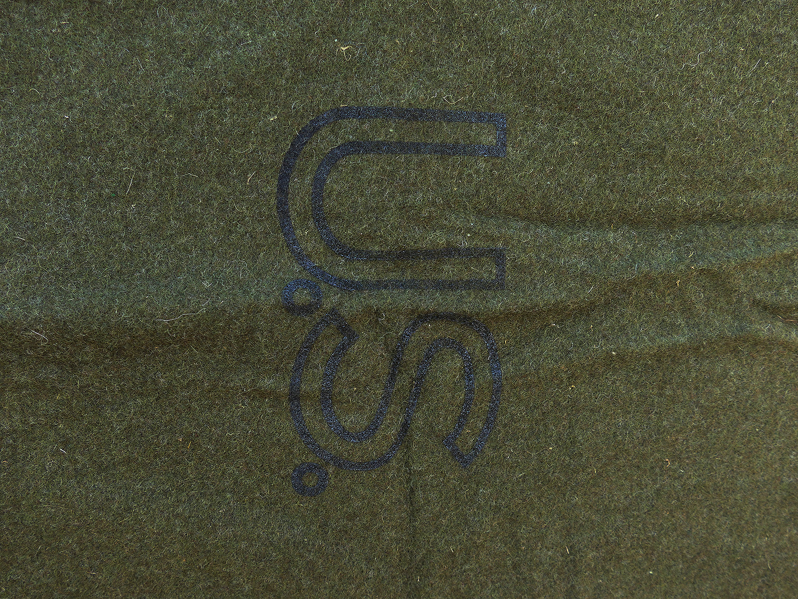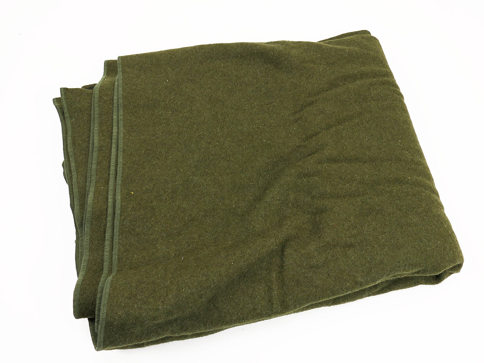 Original US Army Virgin Wool Blanket, OD Green, camp blanket with US print, COLLECTION BATTLE WORN