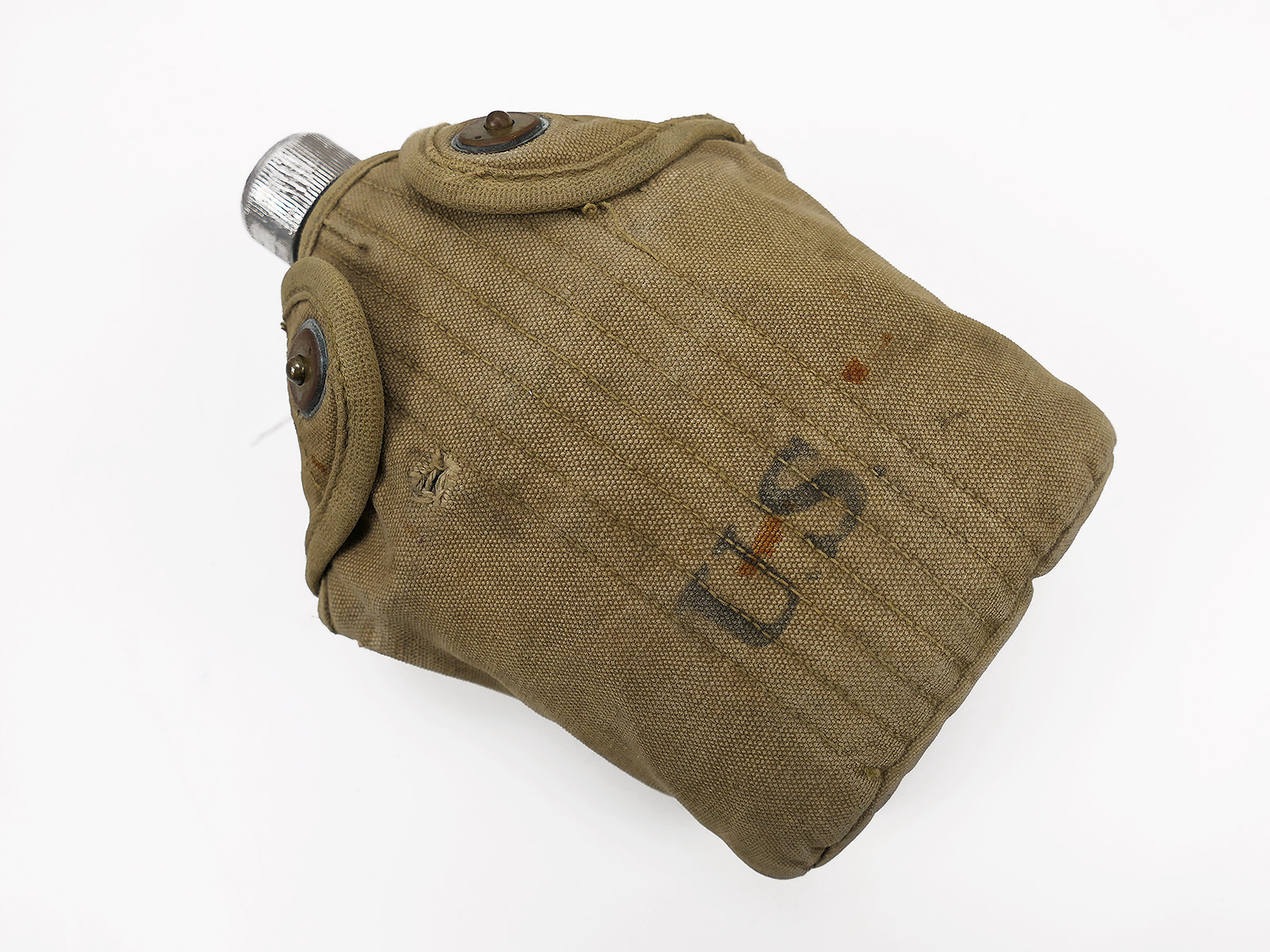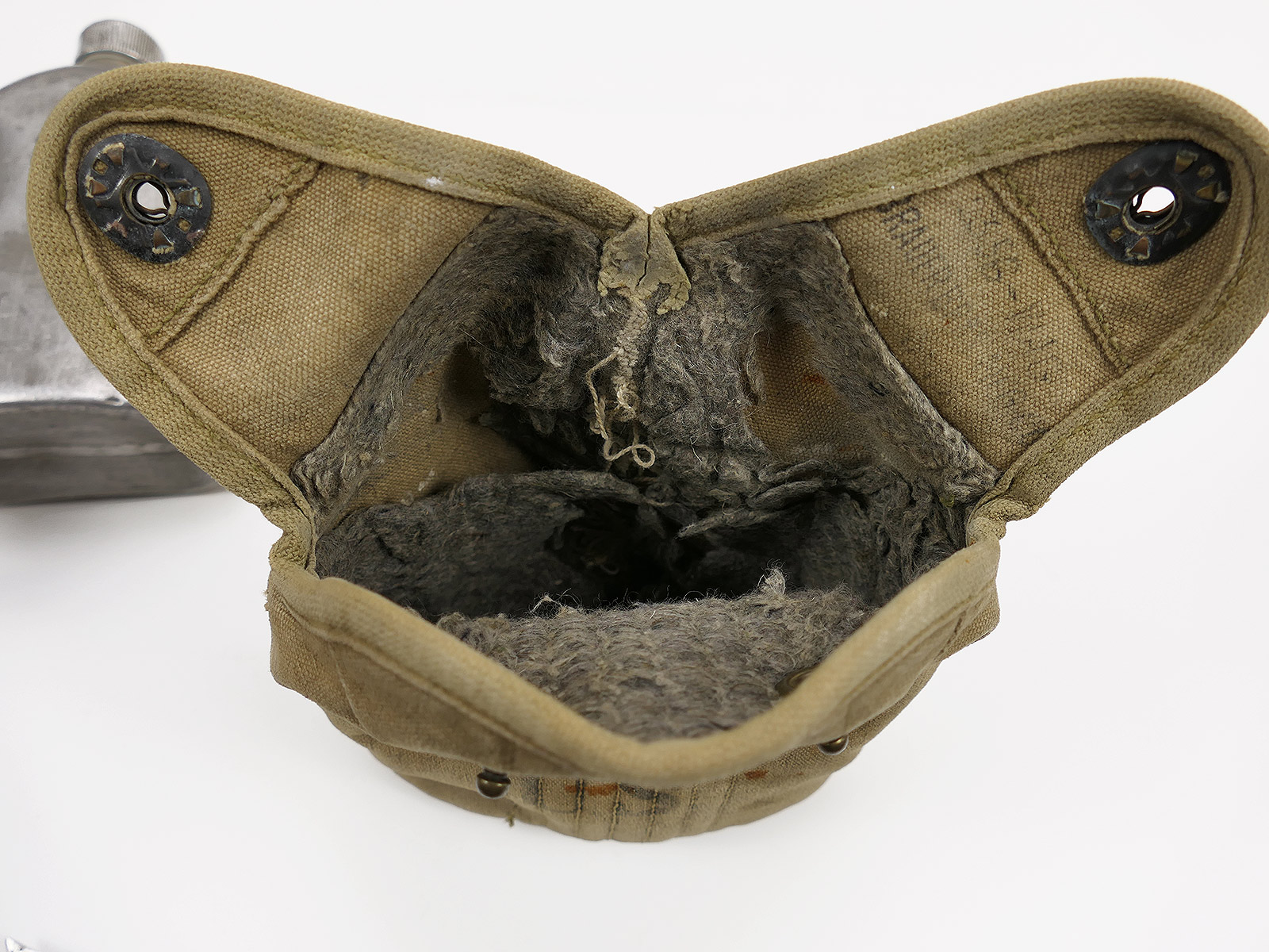 Original US Army WW1/ WW2 canteen with mug and cover 1918 Collection BATTLE WORN NORMANDIE