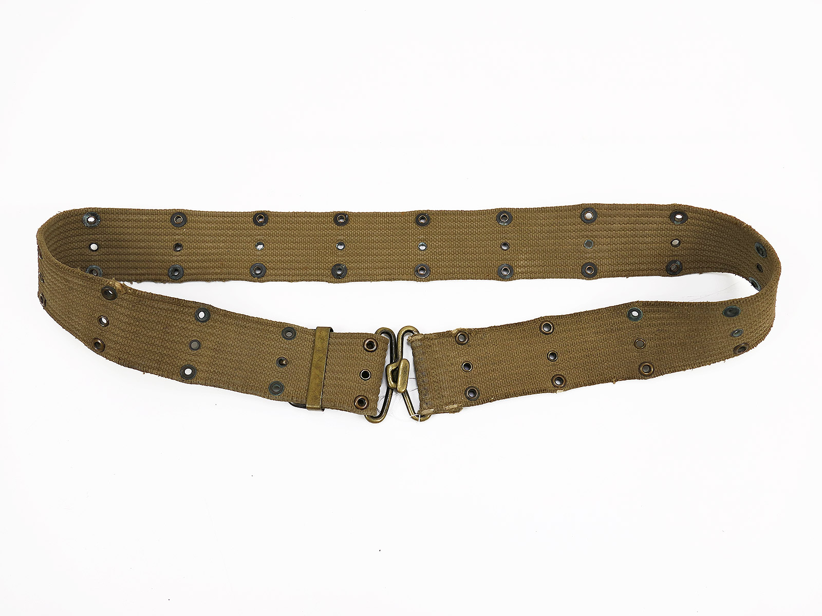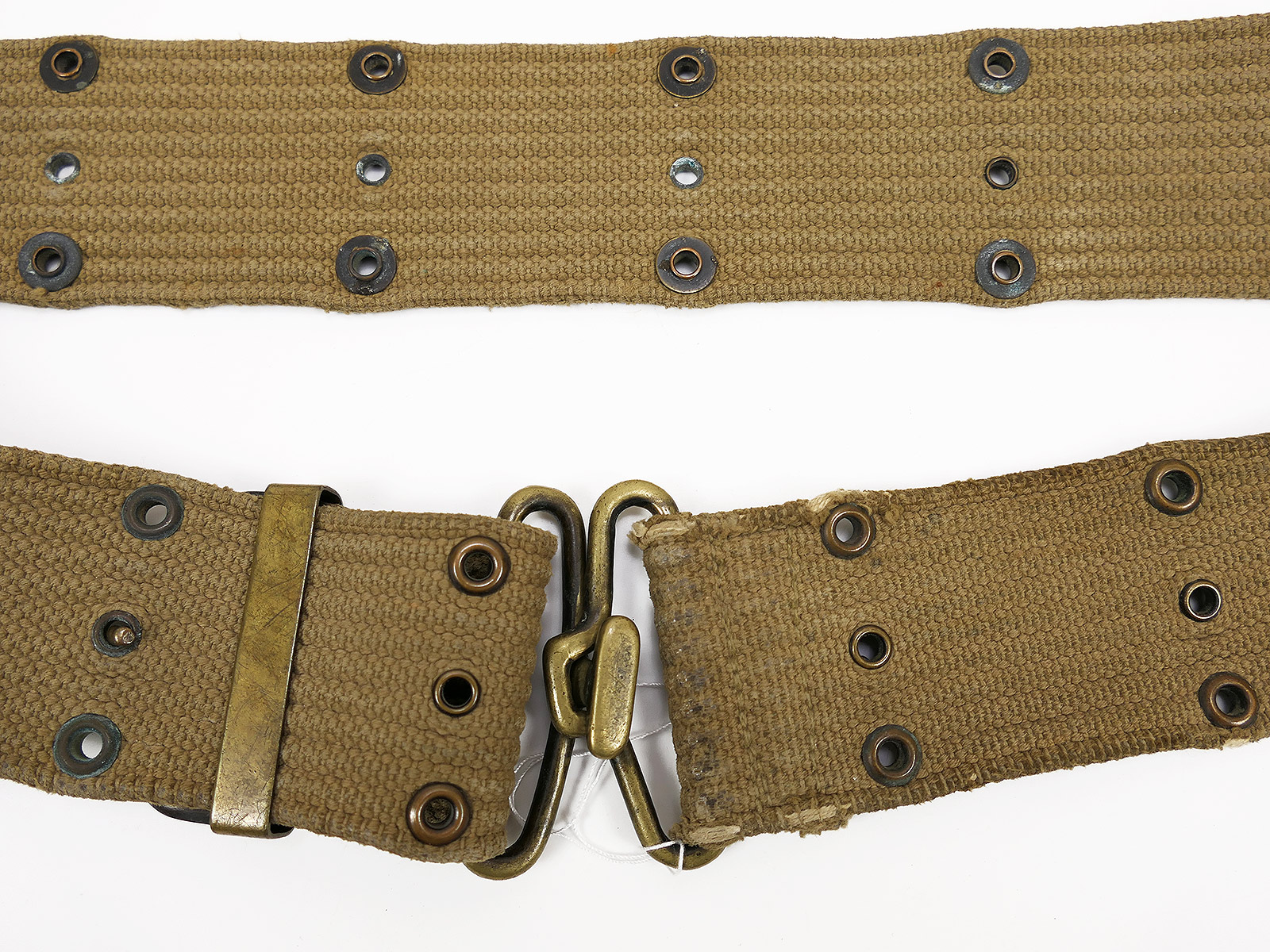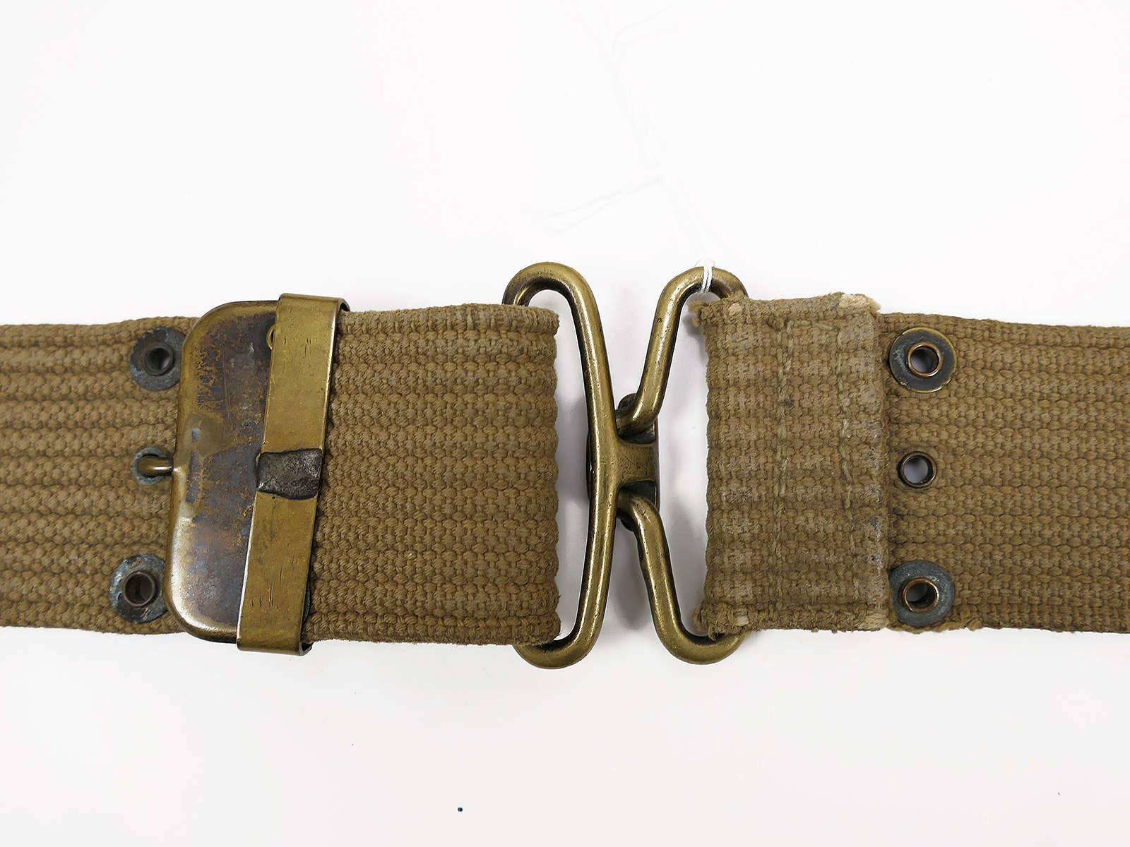 Original US ARMY WW1/WW2 M-1910 Pistol Belt khaki perforated coupling brass / Brass / BATTLE WORN