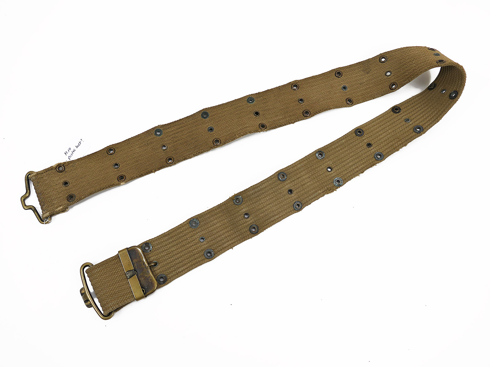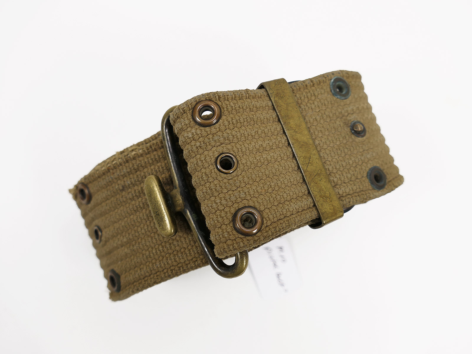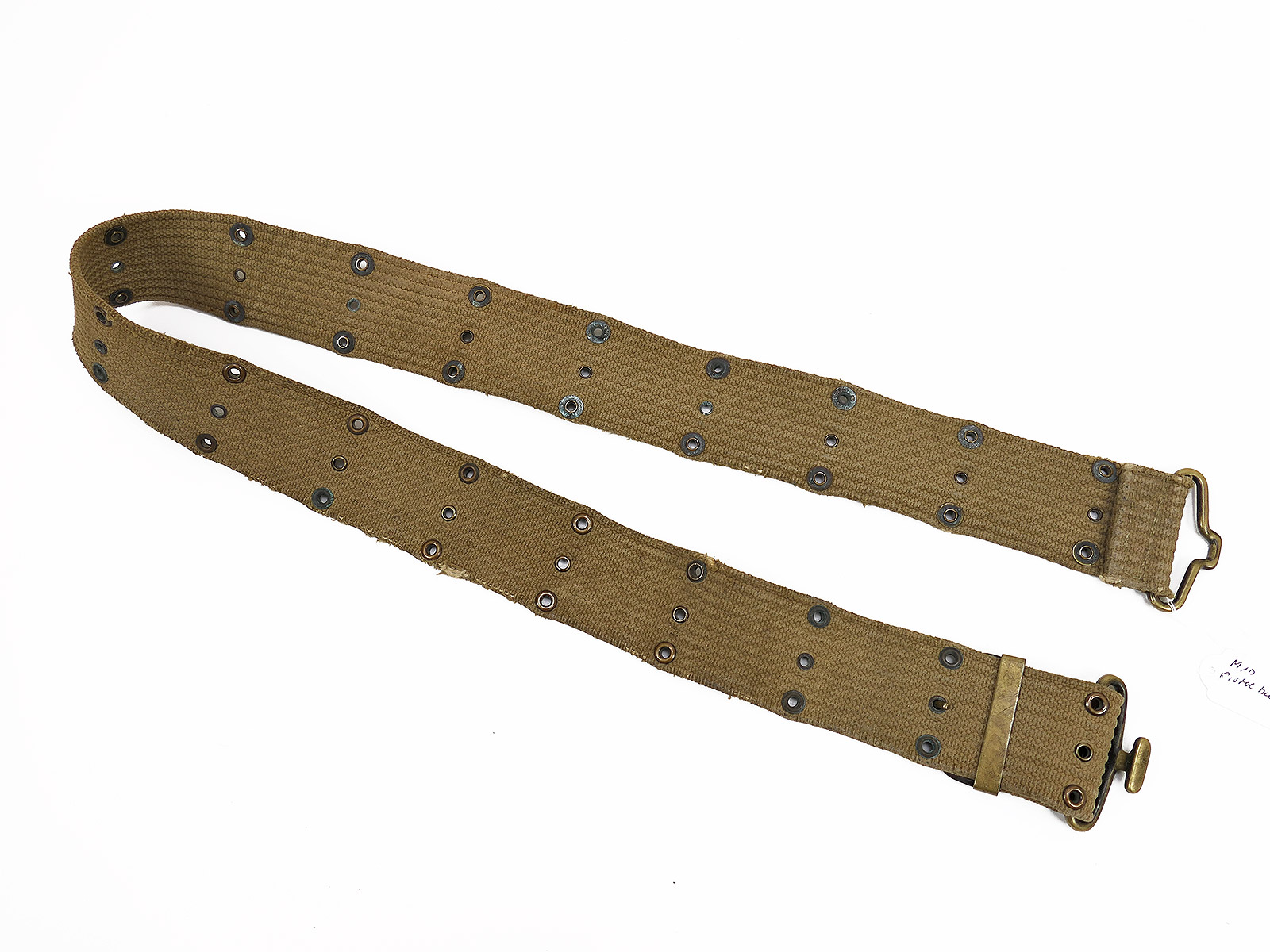 Original US ARMY WW1/WW2 M-1910 Pistol Belt khaki perforated coupling brass / Brass / BATTLE WORN