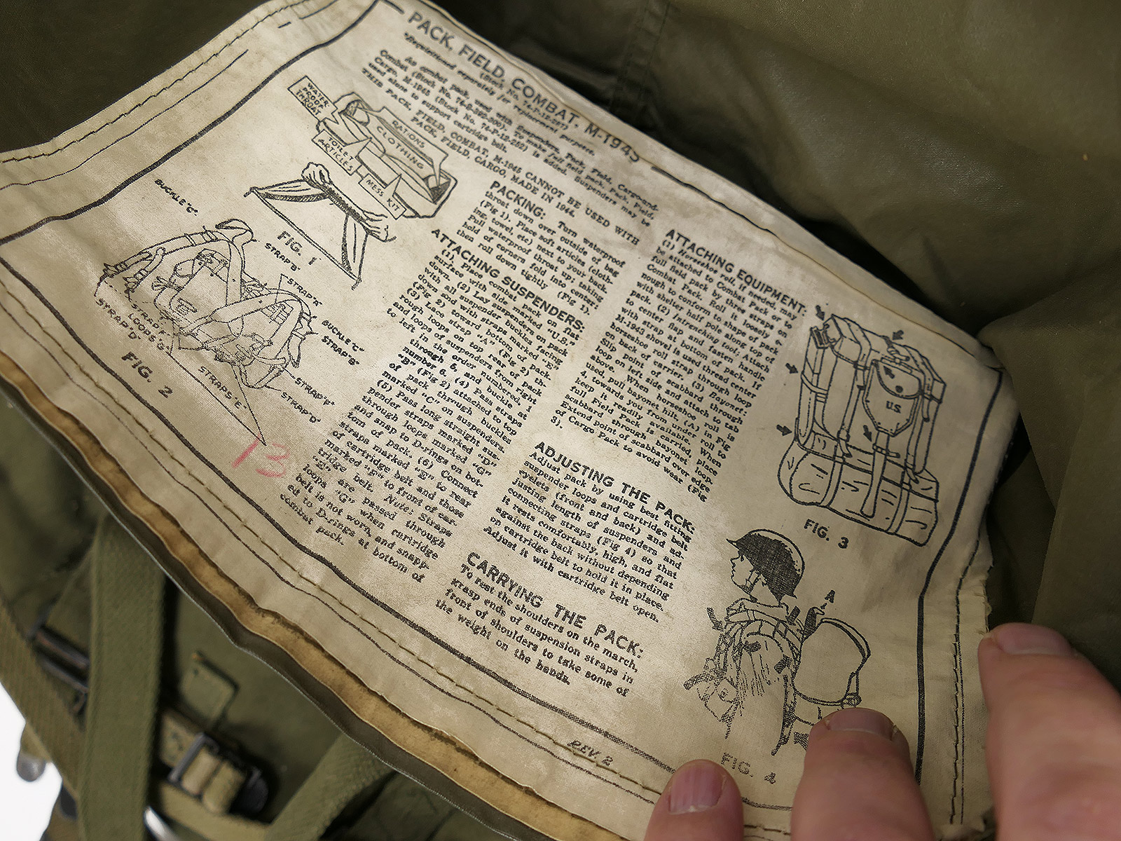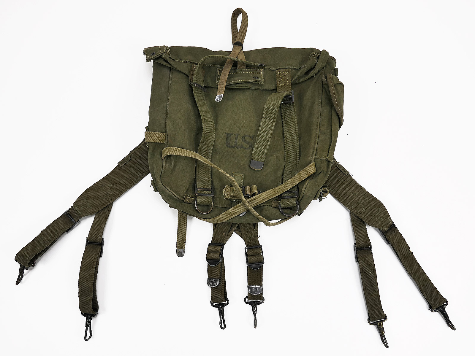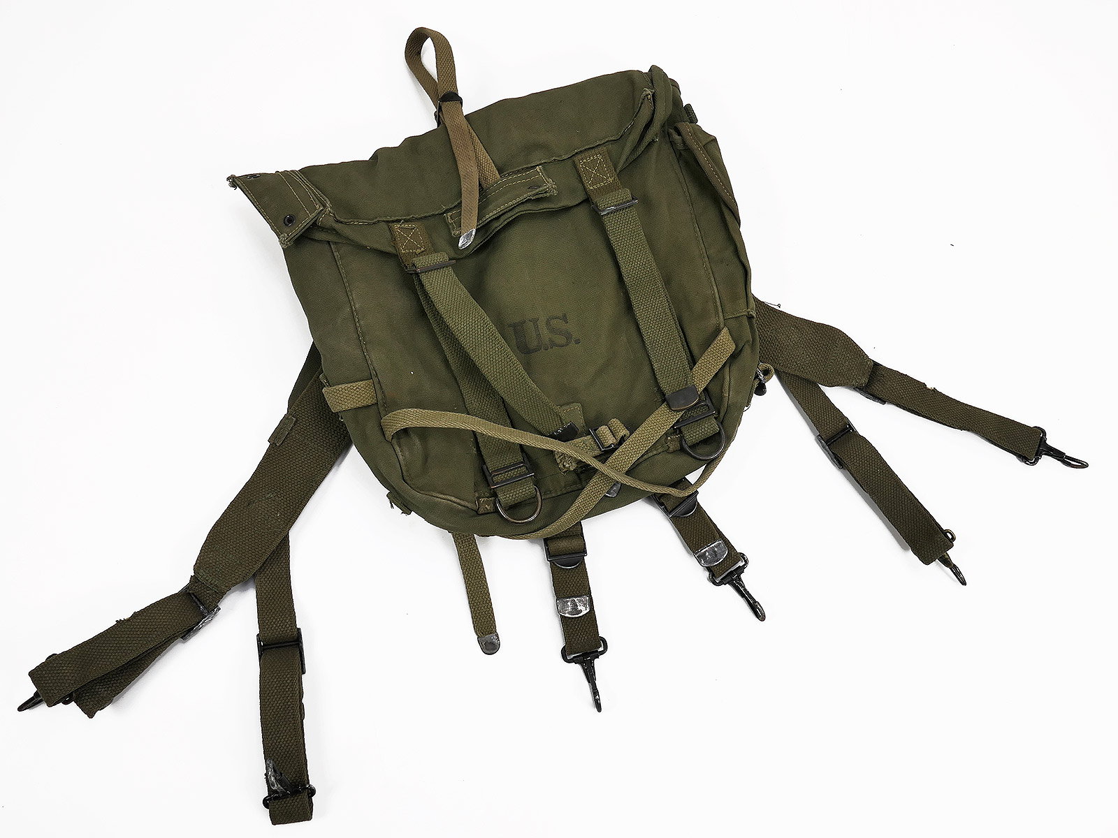 Original US Army WW2 M-1945 Combat Pack Field + Suspenders 1945 / Collection BATTLE WORN