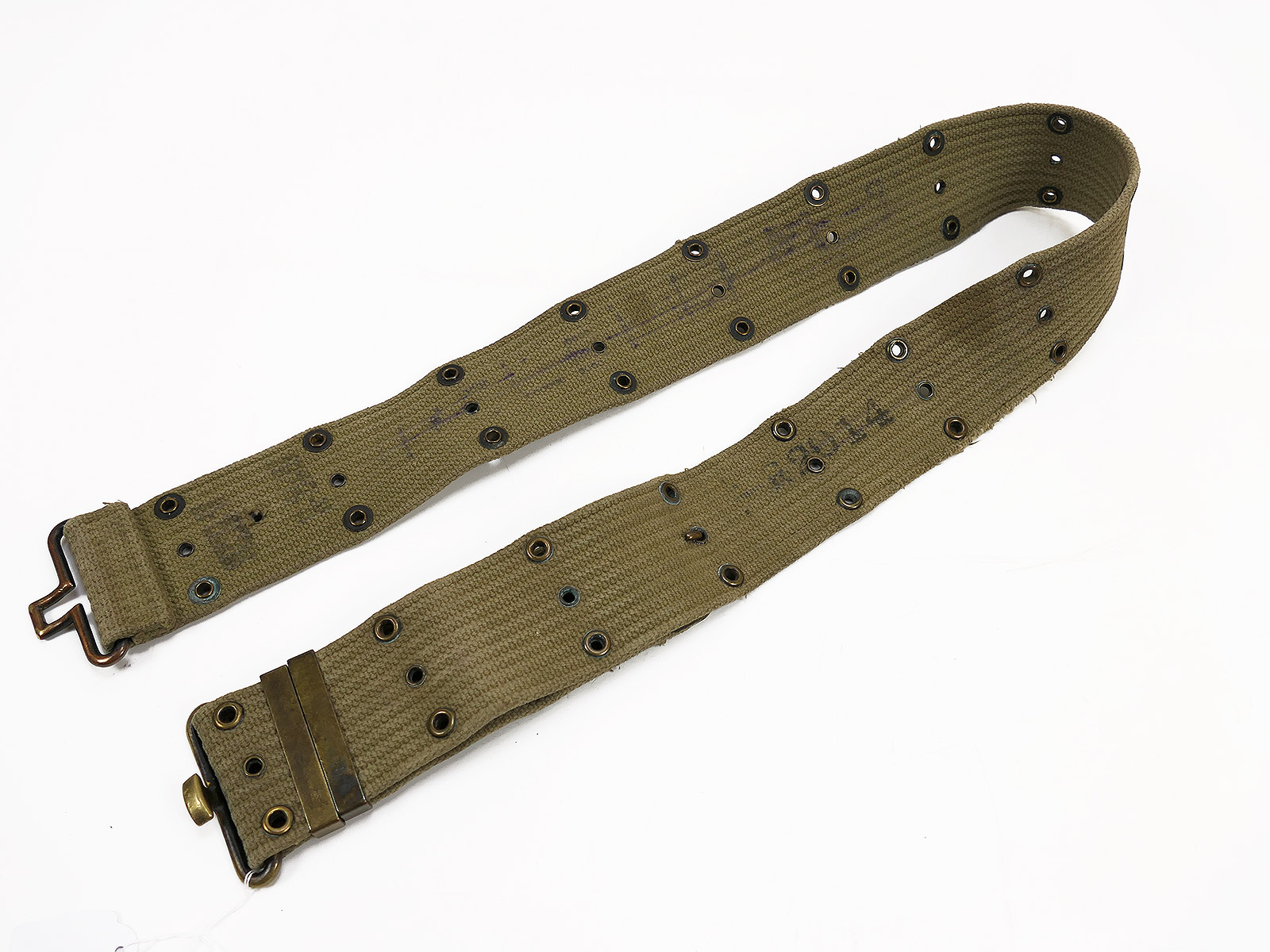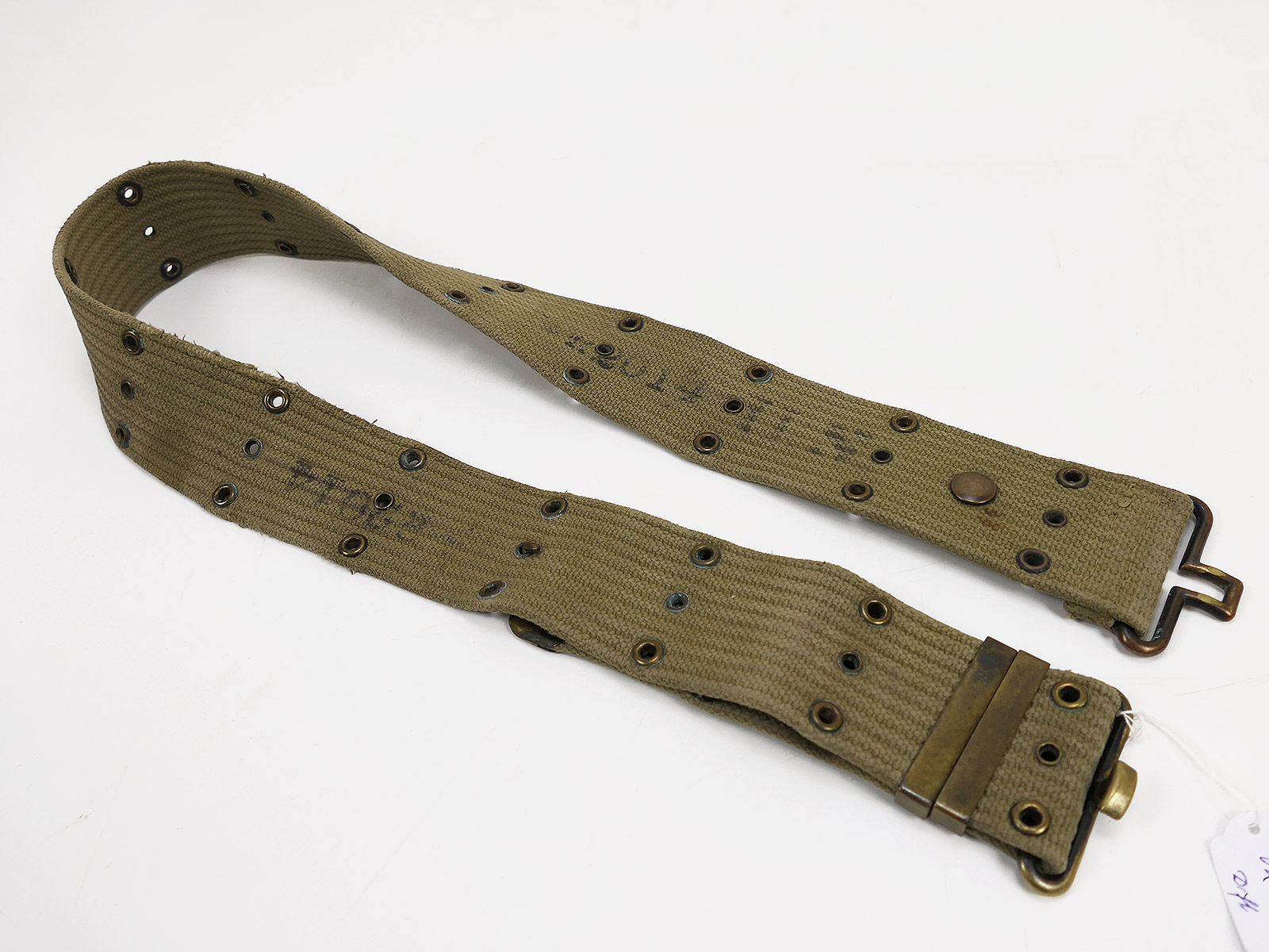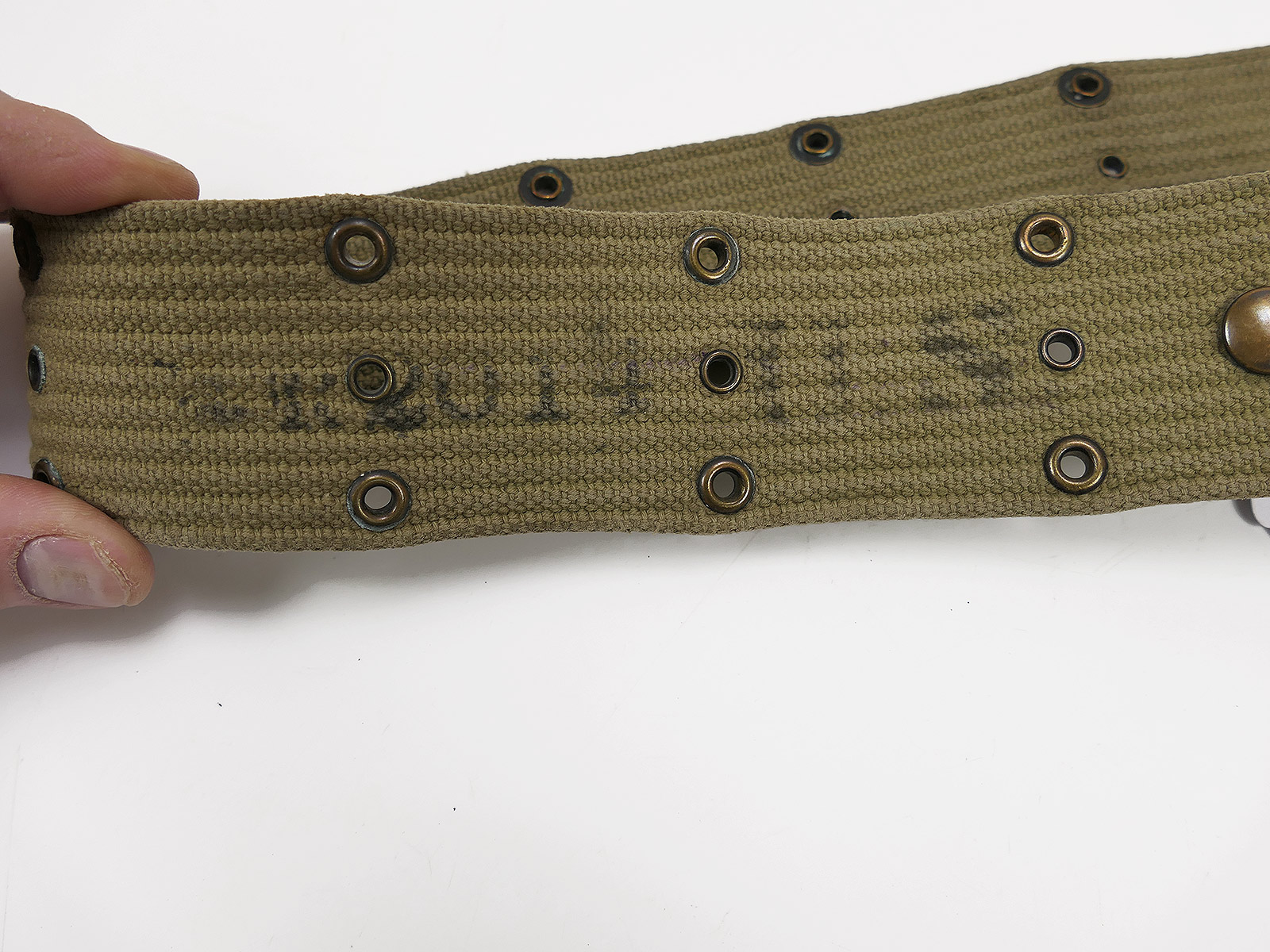 Original US ARMY WW2 Pistol Belt Hole Coupler Brass / Personal Number / BATTLE WORN