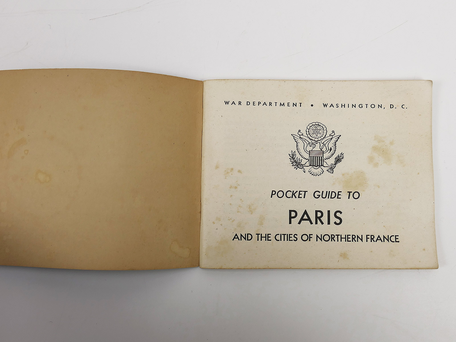 Original US Army WW2 Pocket Guide " PARIS & Cities Northern France " 1944 Pocket Guide BATTLE WORN