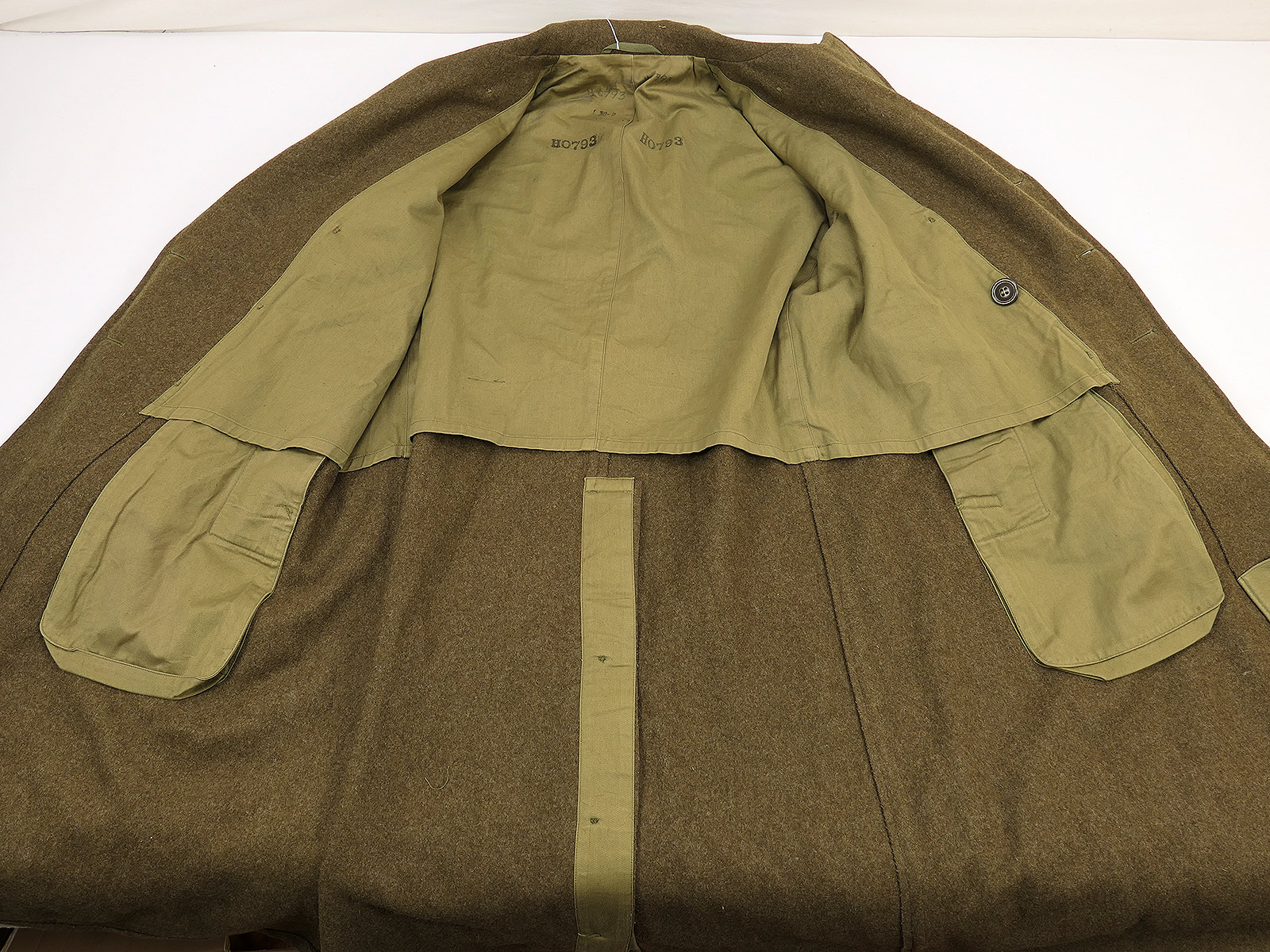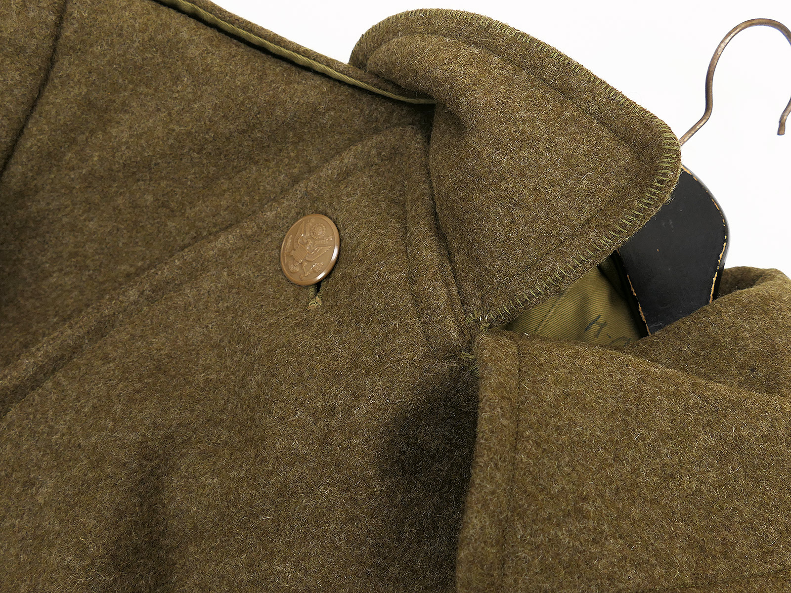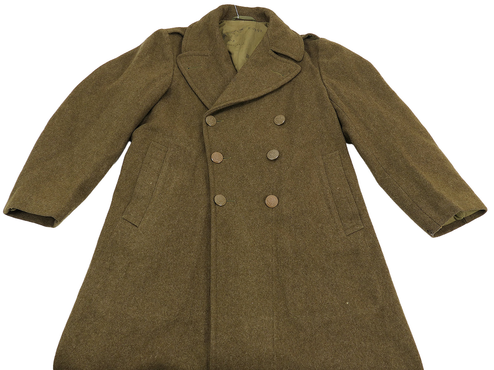 Original US WW2 Overcoat Wool OD Melton coat May 1945 size 38R winter coat TOP Collection BATTLE WORN