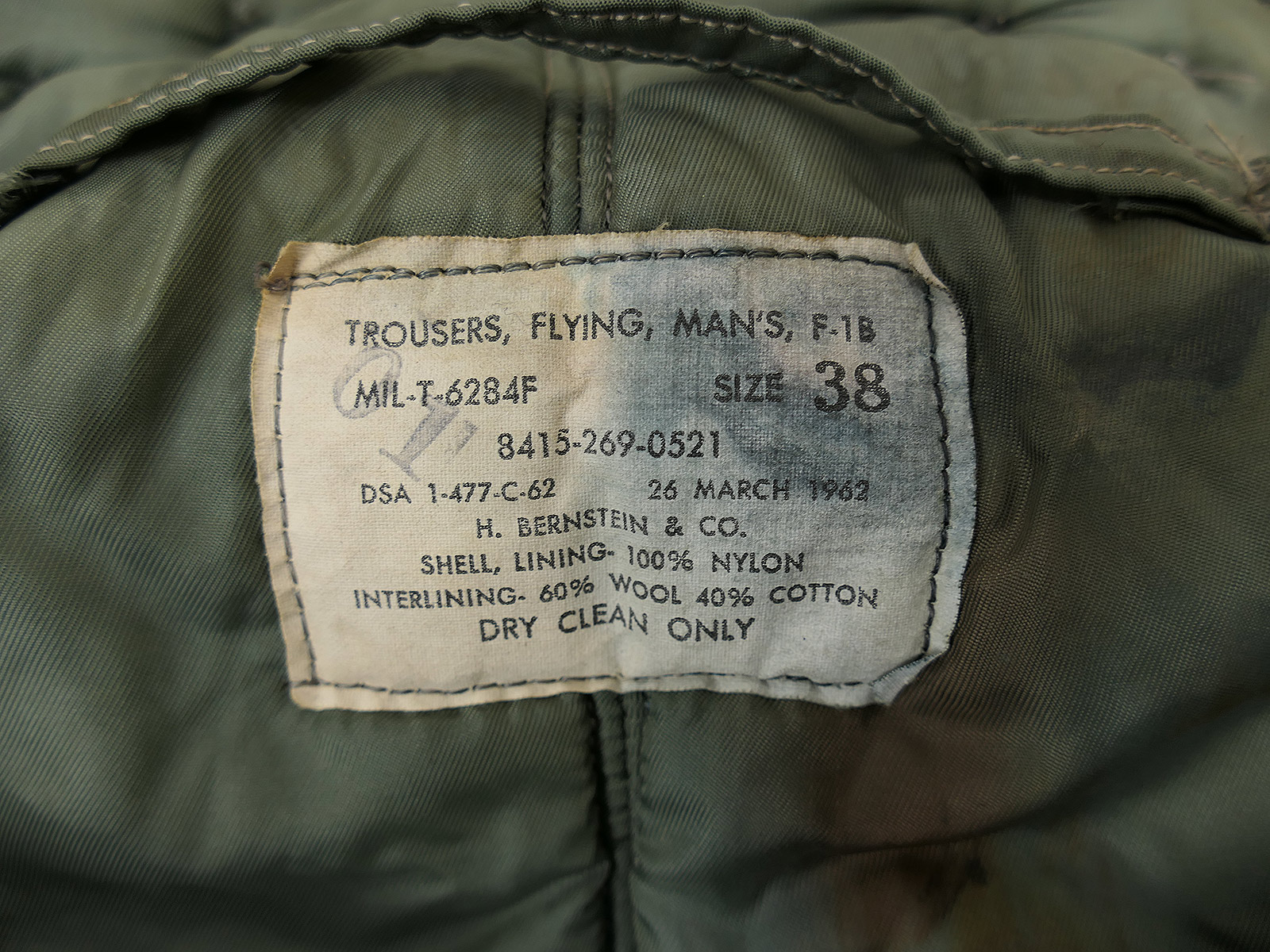 Original USAAF F-1 B Flying Trousers Korea Vietnam pilot trousers size 38 1962