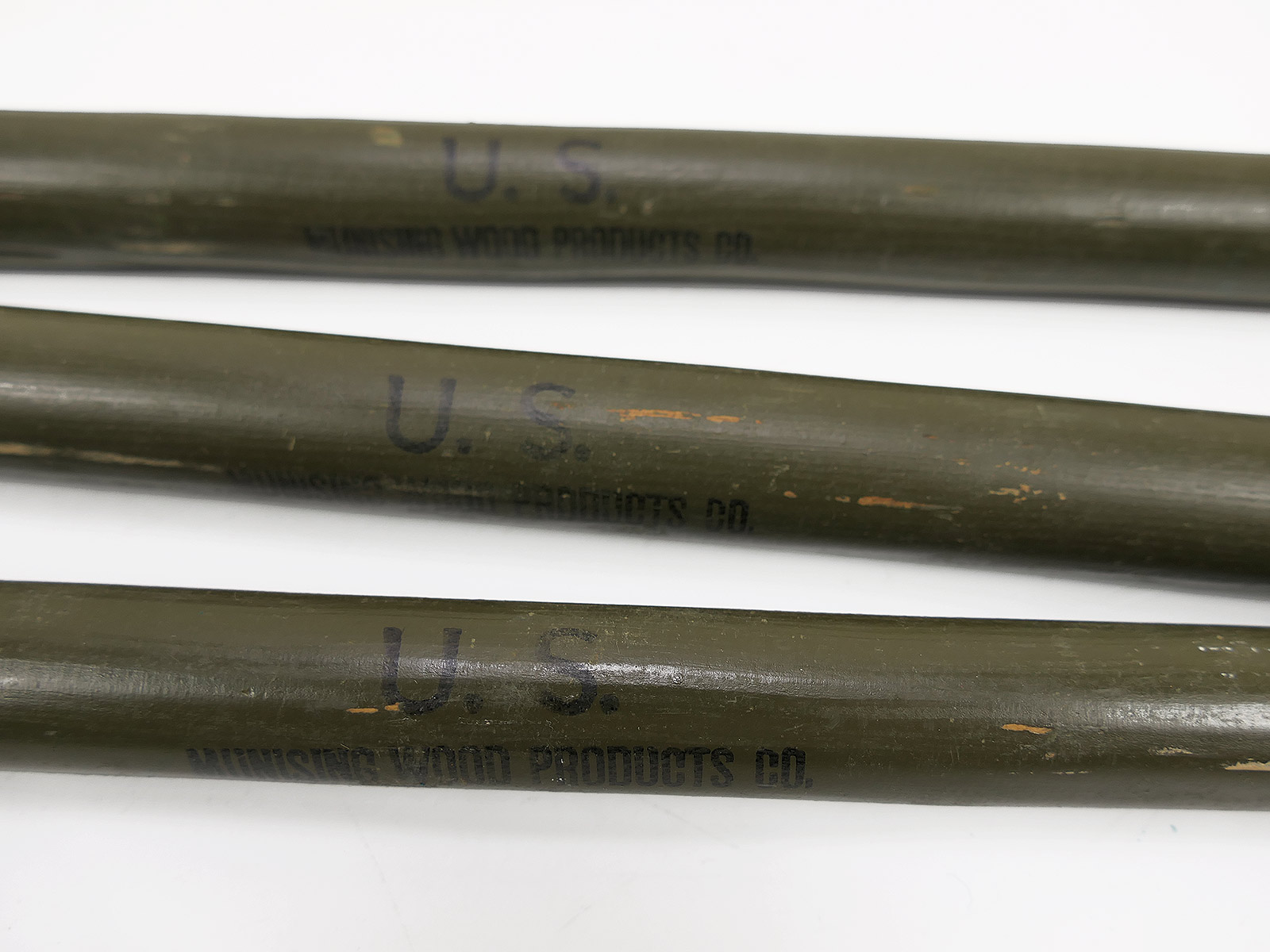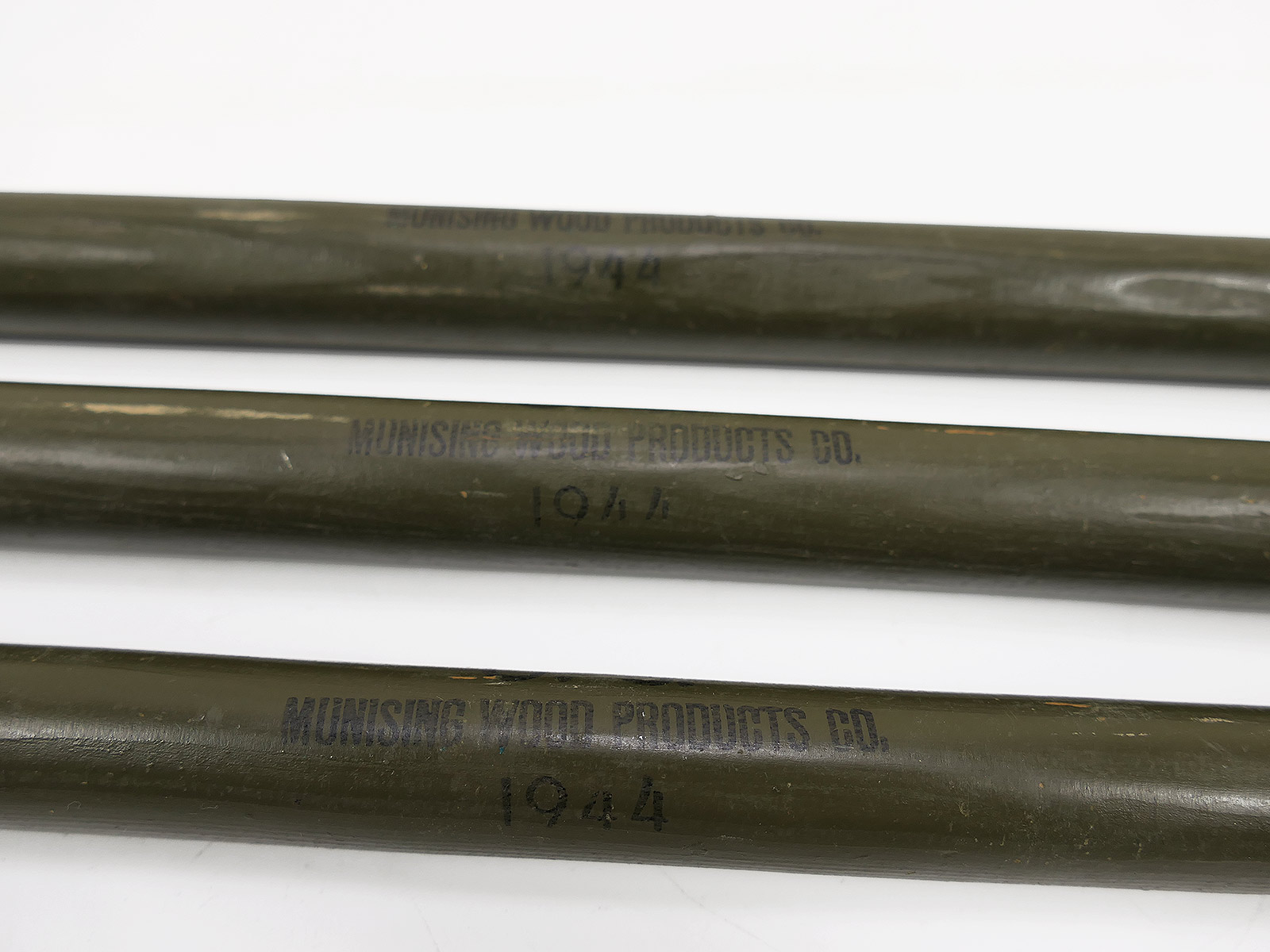 3x original US WW2 tent poles, identical manufacturer stamping and dated 1944.