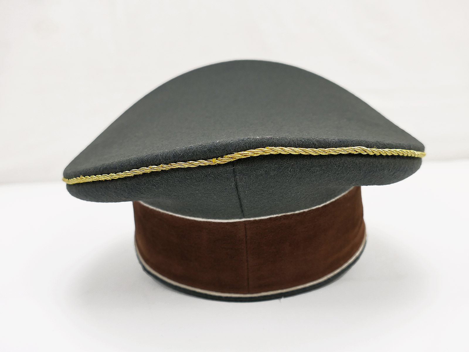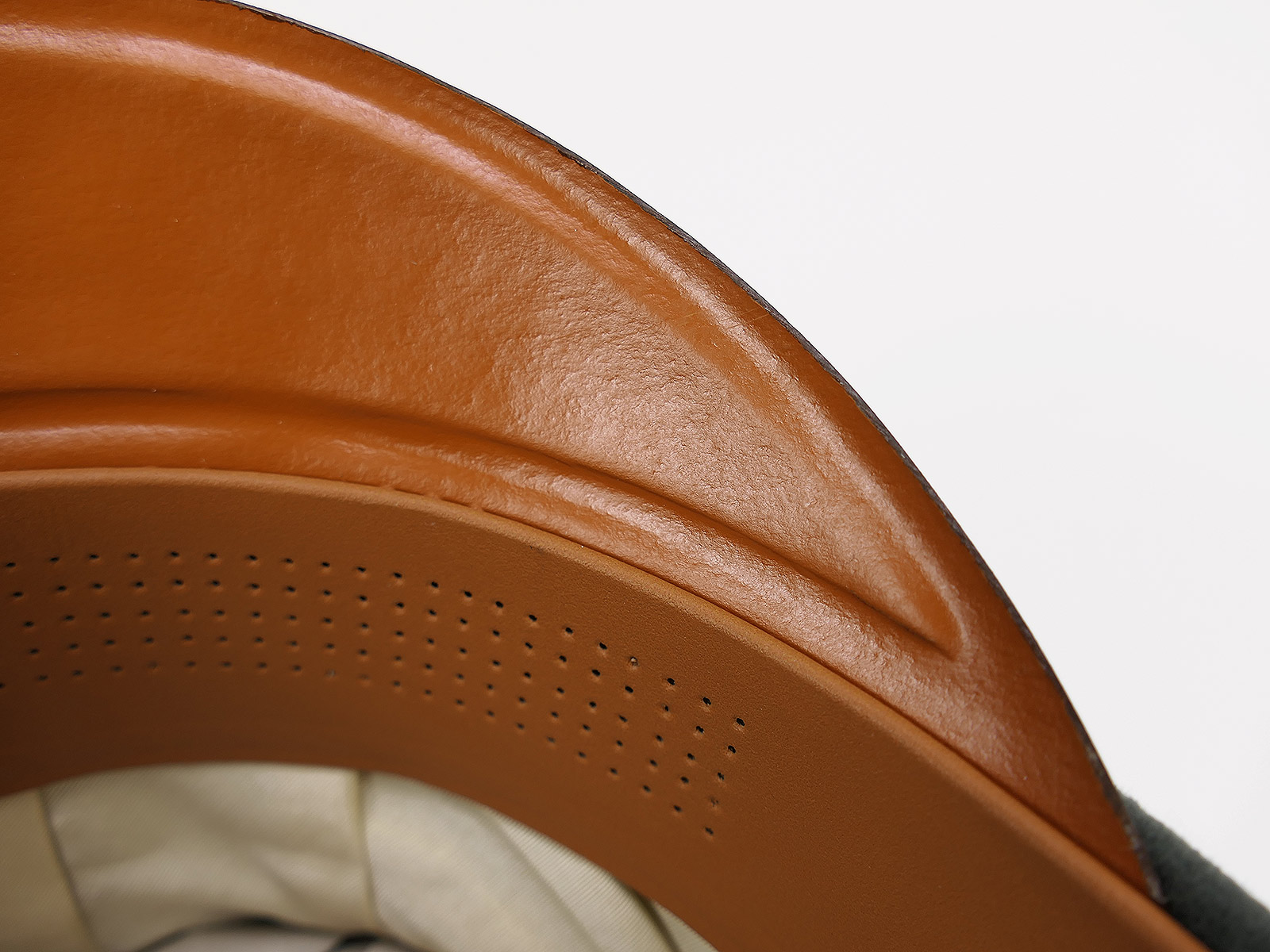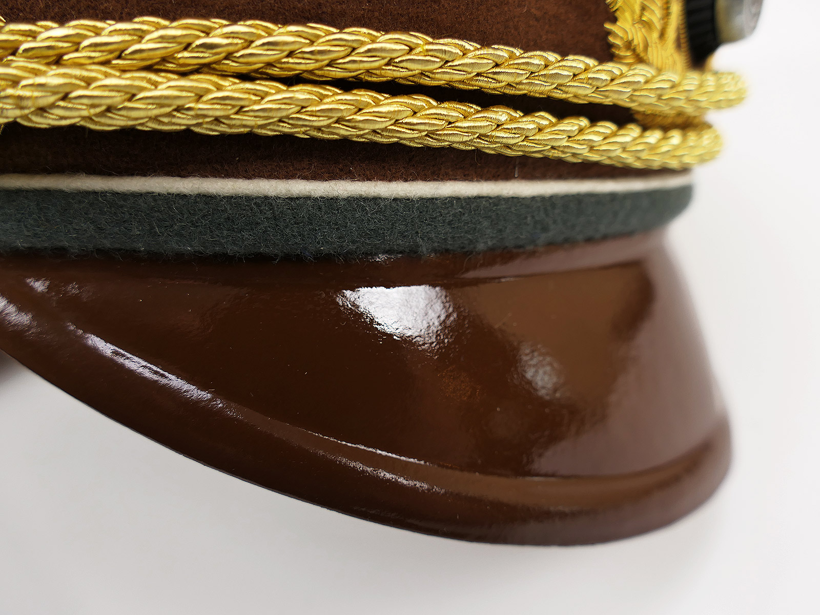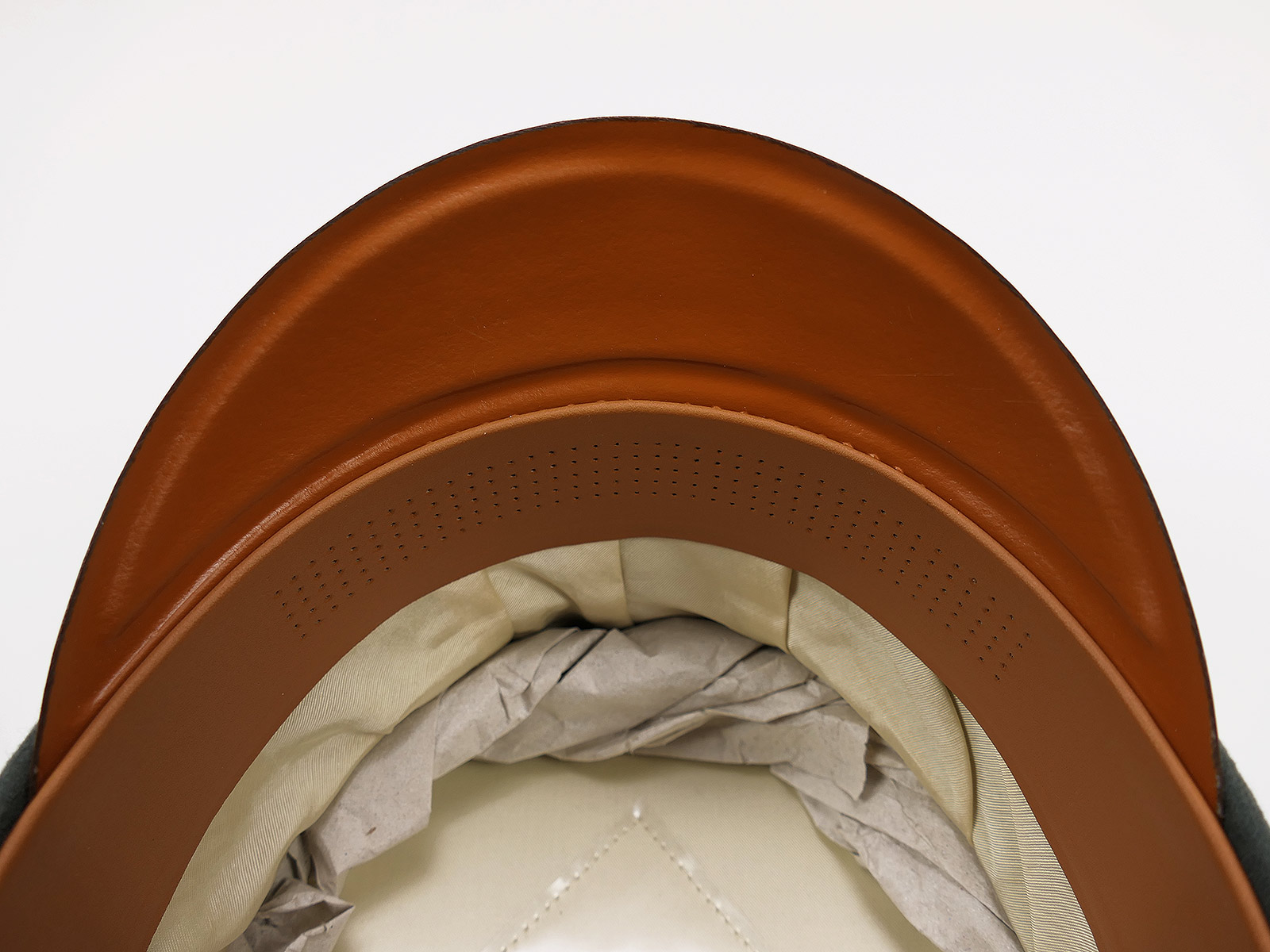Then a neatly sewn cap peak made of REAL CELLULOID (not soft plastic).