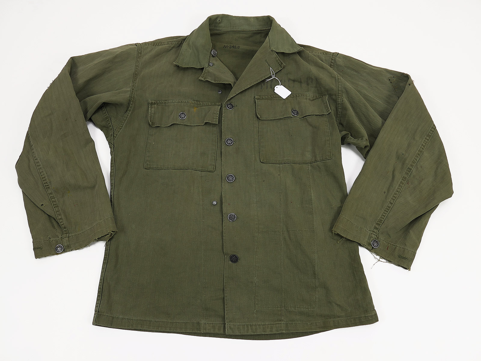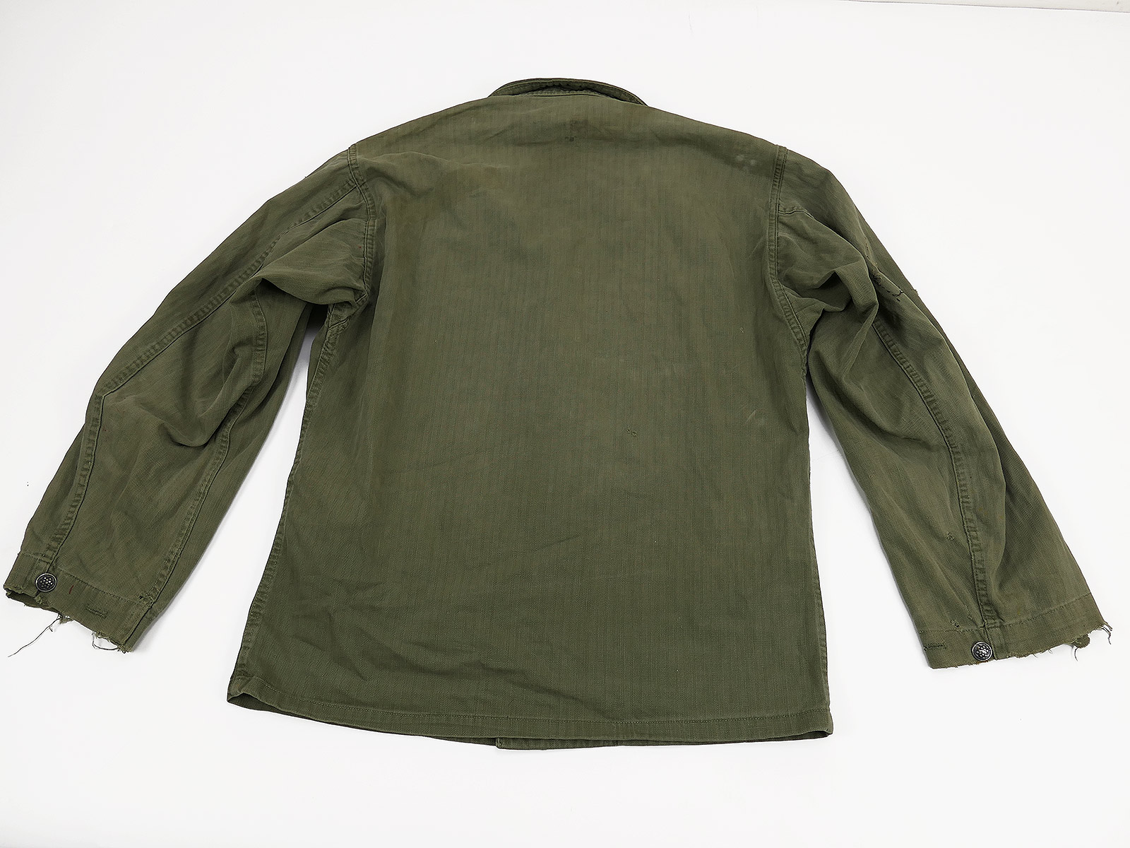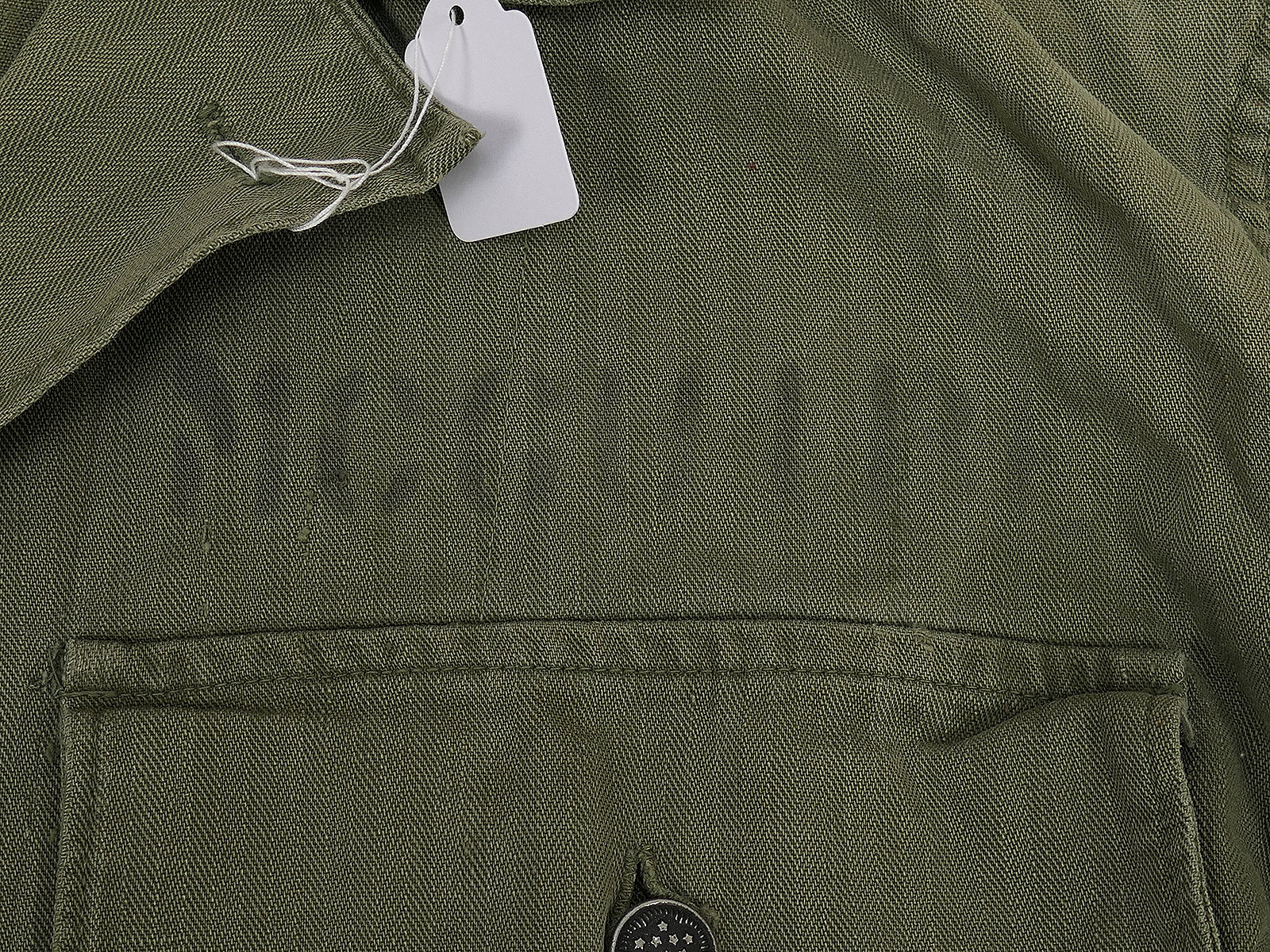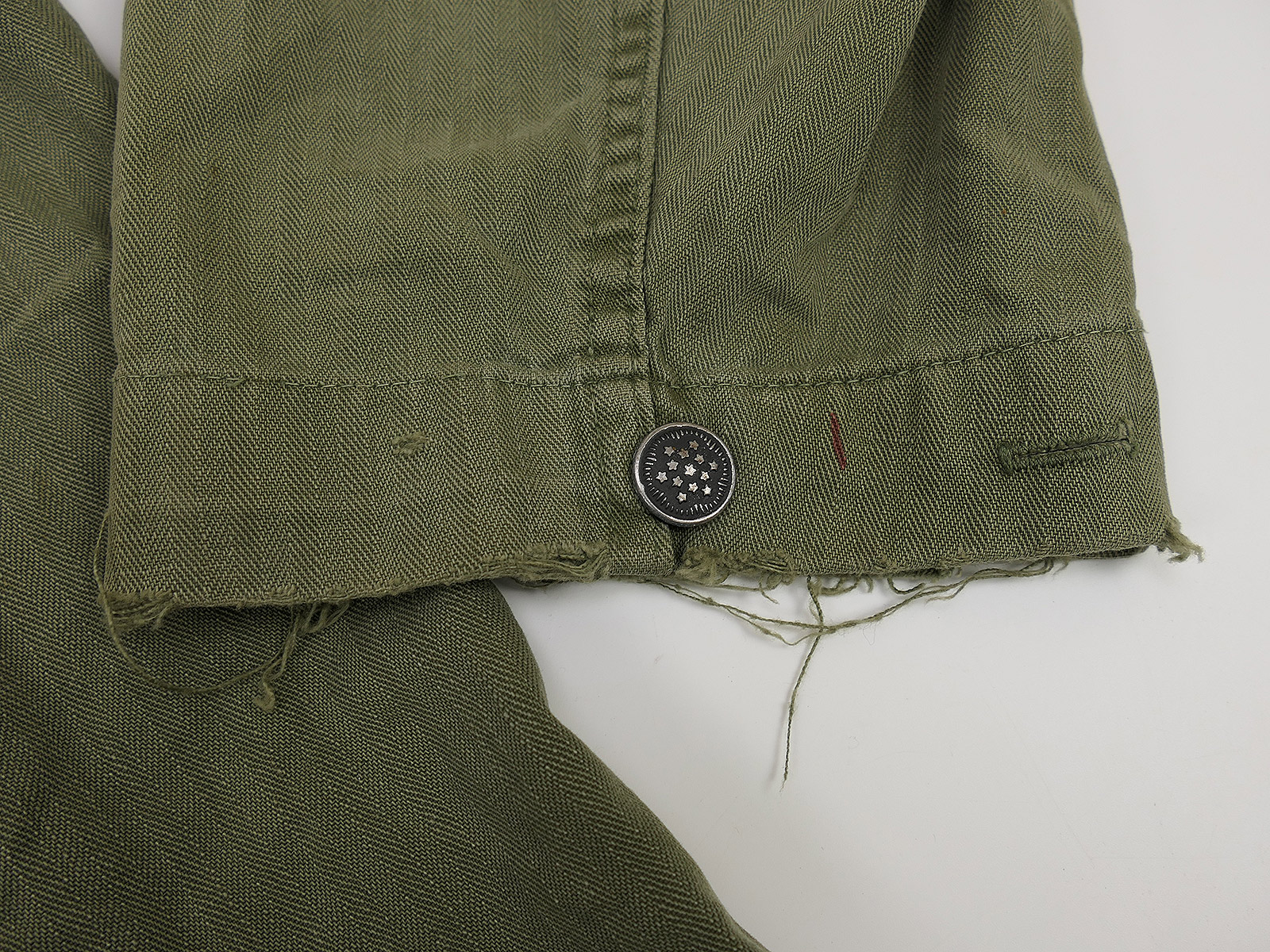 Single piece Original US ARMY WW2 HBT Herringbone Twill Jacket Small (US 34R) Collection BATTLE WORN