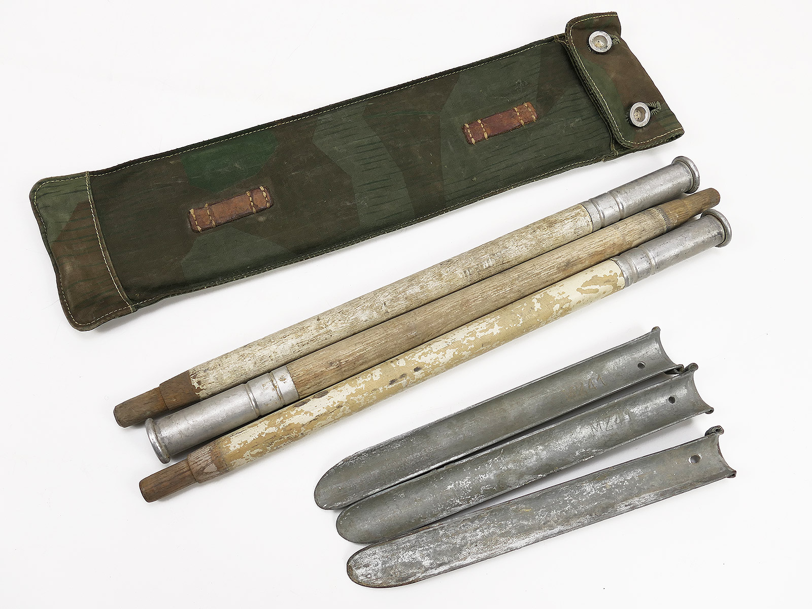 Single piece type Wehrmacht splinter camouflage tent pole bag 1941 with 3 tent poles and 3 pegs