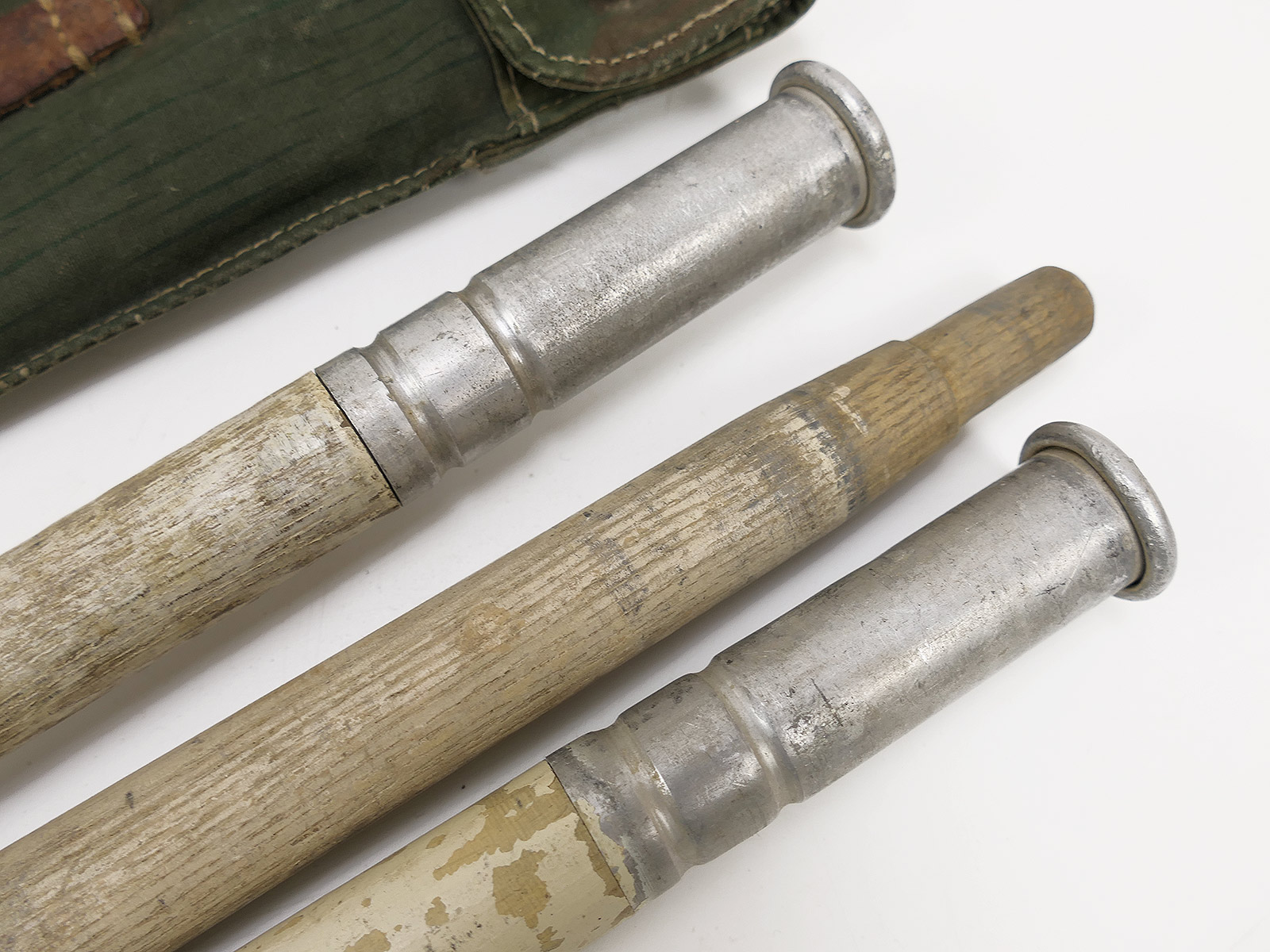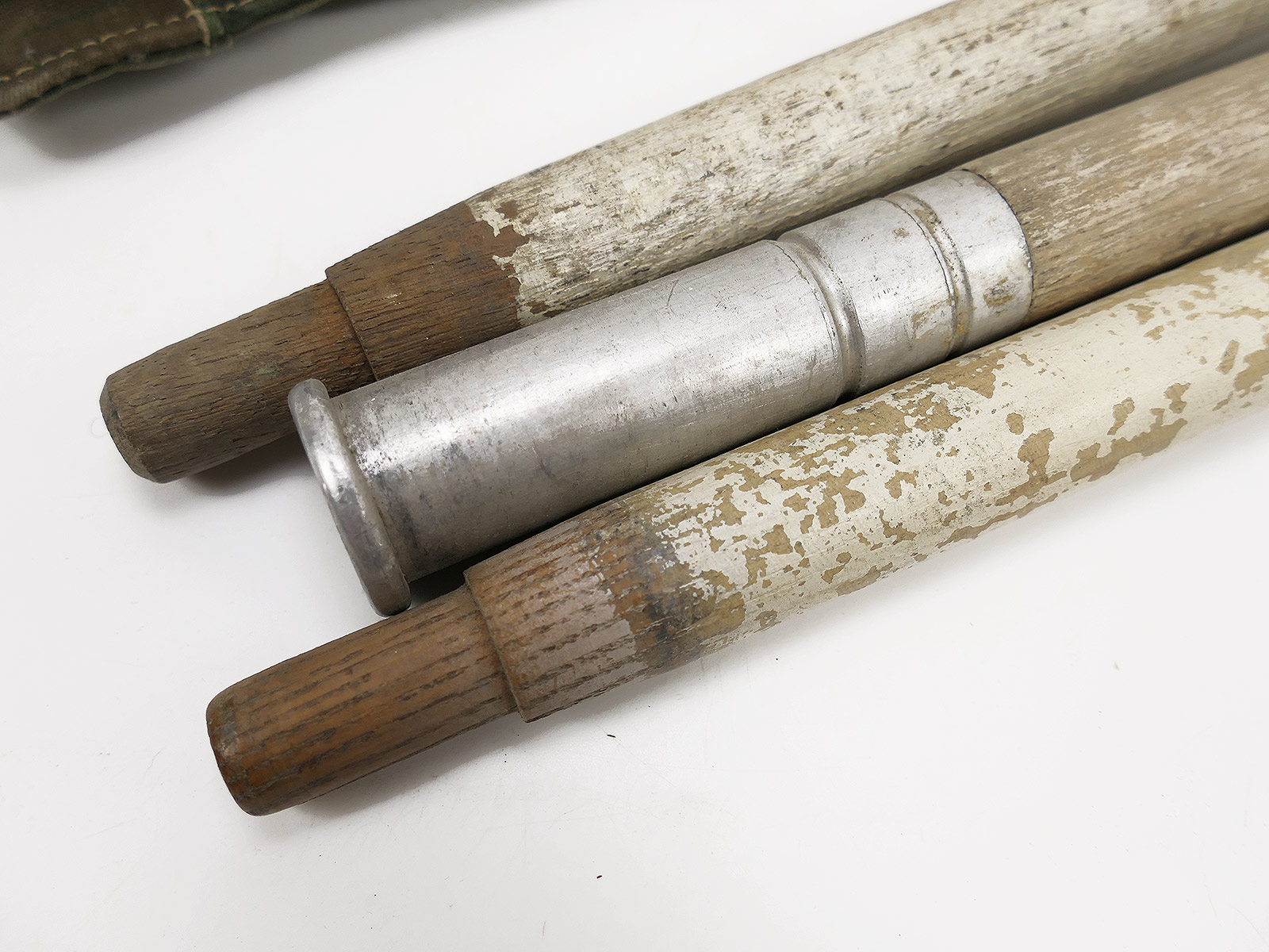 Swiss WK2 army goods, also stamped/dated. Similar to the WH sets, consisting of 1x bag, 3x poles and 3x pegs, as shown.
