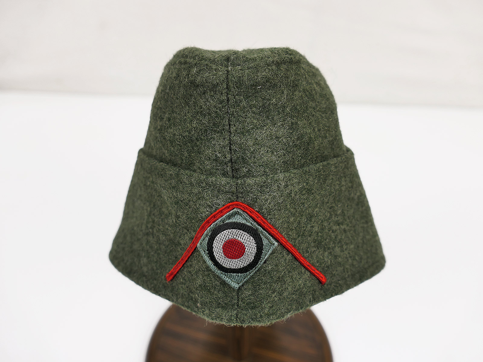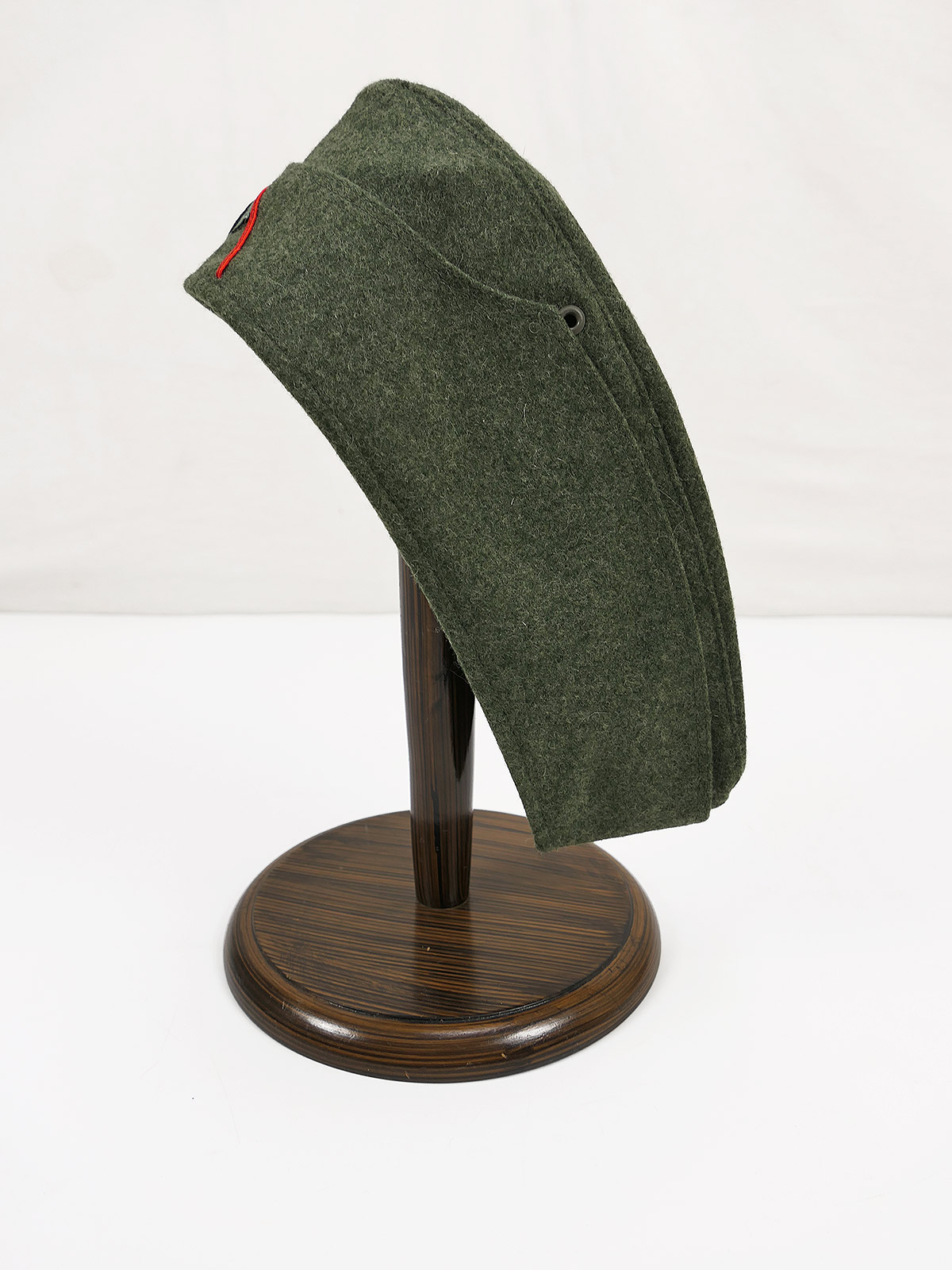 Top collector's item, made in Germany, version for enlisted men and non-commissioned officers, ventilation holes, cotton lining, soutache angle (weapon colour red for artillery) and light green cockade, manufacturer's stamp.