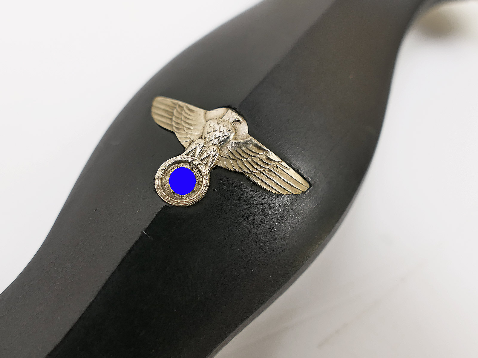 entirely of metal, with a wooden handle. Scabbard fittings, blade… all magnetic.