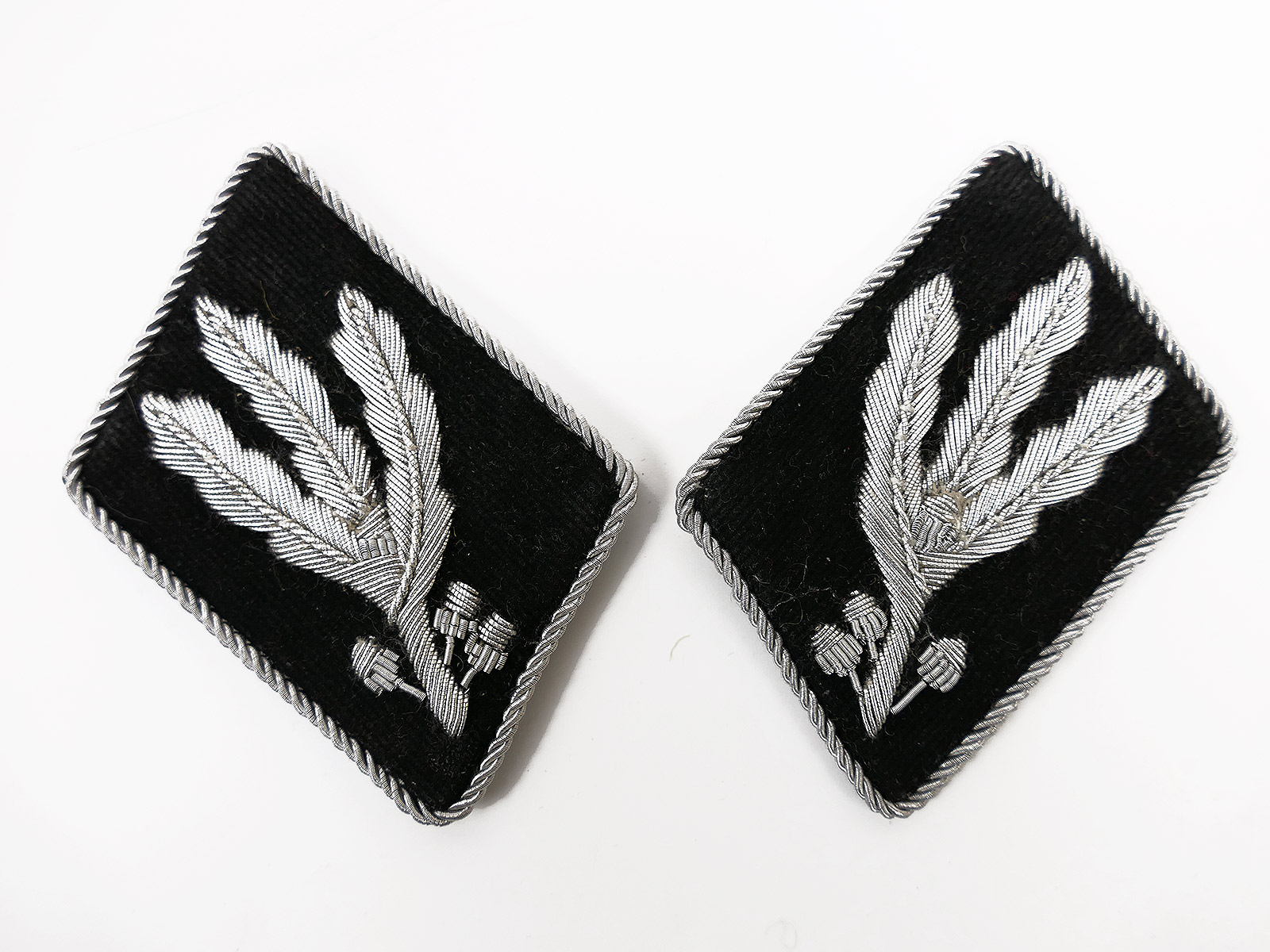 Pair of embroidered rank insignia / collar patches SS and Waffen SS for leaders and officers,