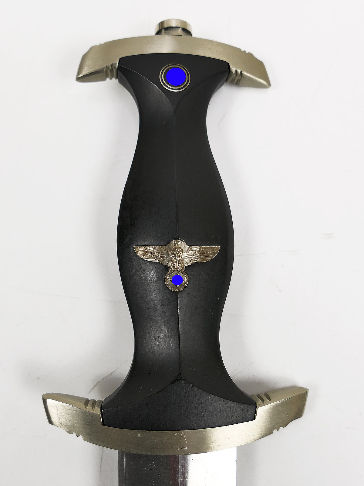 entirely of metal, with a wooden handle. Scabbard fittings, blade… all magnetic.