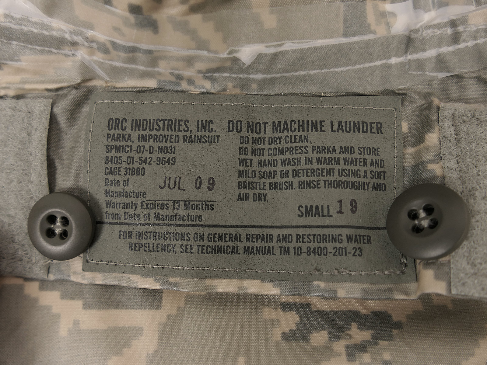 US Air Force Orc. Industries Parka Improved Rainsuit Jacket Rain Jacket Waterproof Jacket ACU Size Small