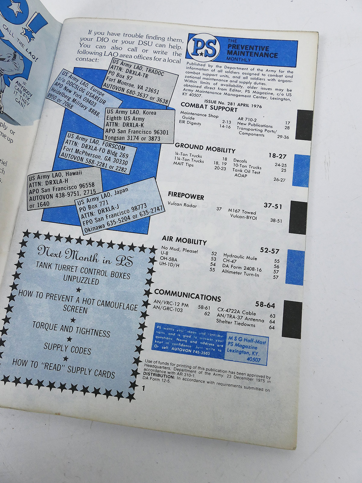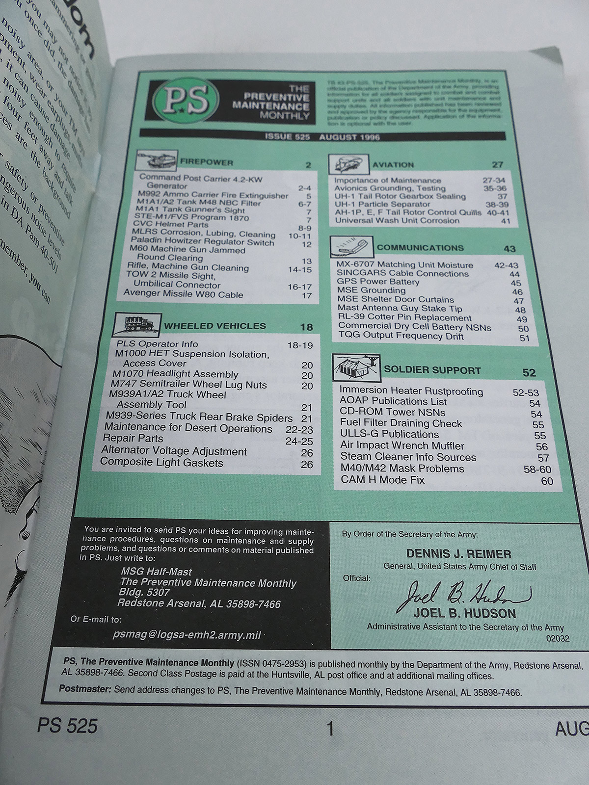 PS: The Preventive Maintenance Monthly is a series of US Army technical bulletins published since June 1951 as a monthly magazine with comic-style graphics,