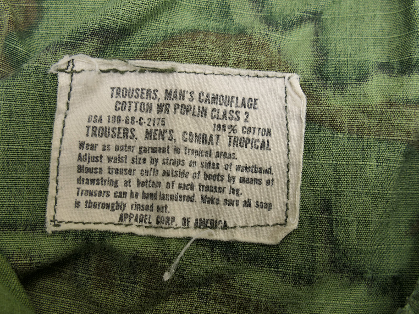 Original US Army ERDL camouflage field trousers, dated 1968.