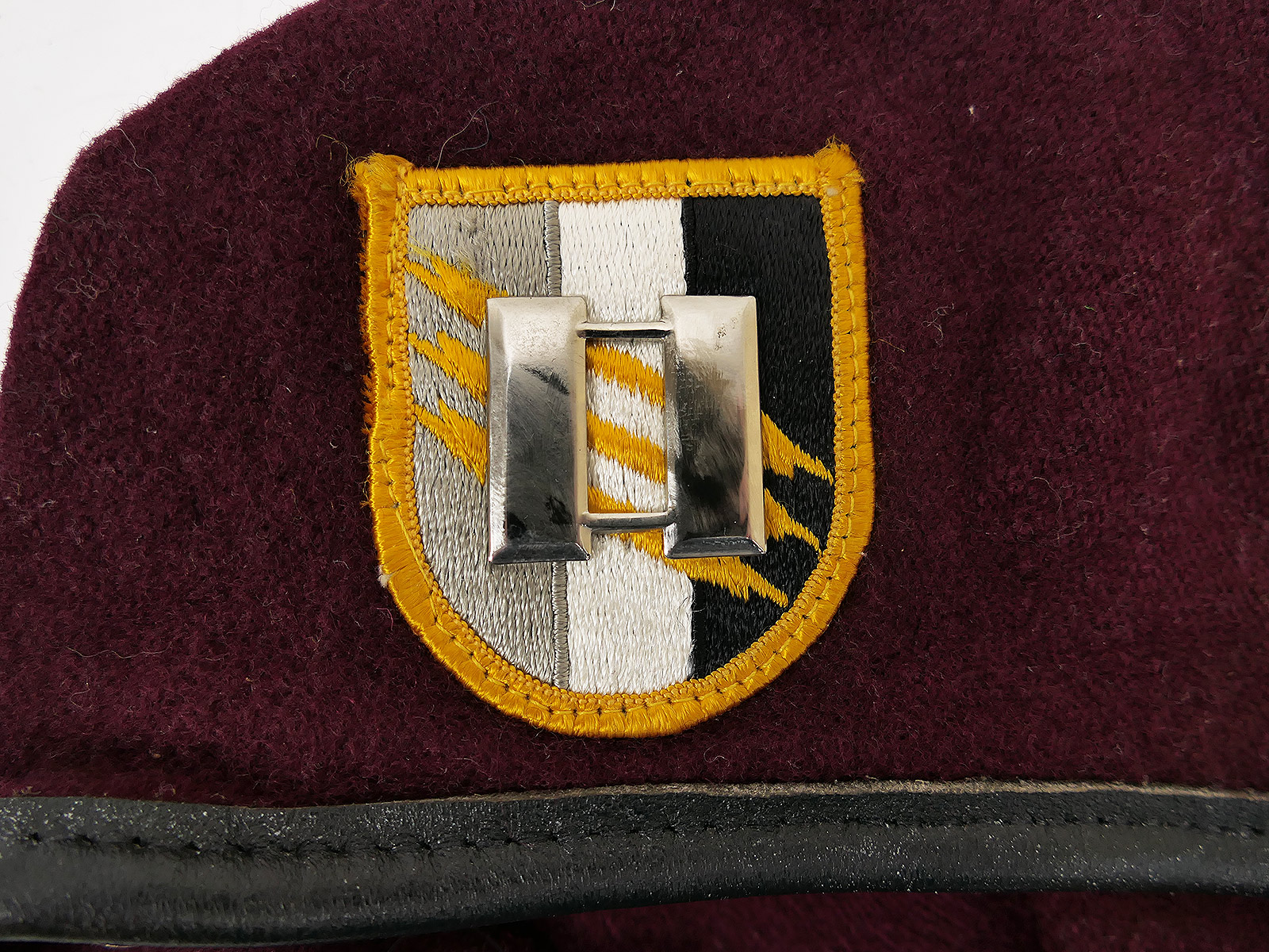 US Army Bordeaux Beret 1st Special Forces Command Airborne Beret with metal badge