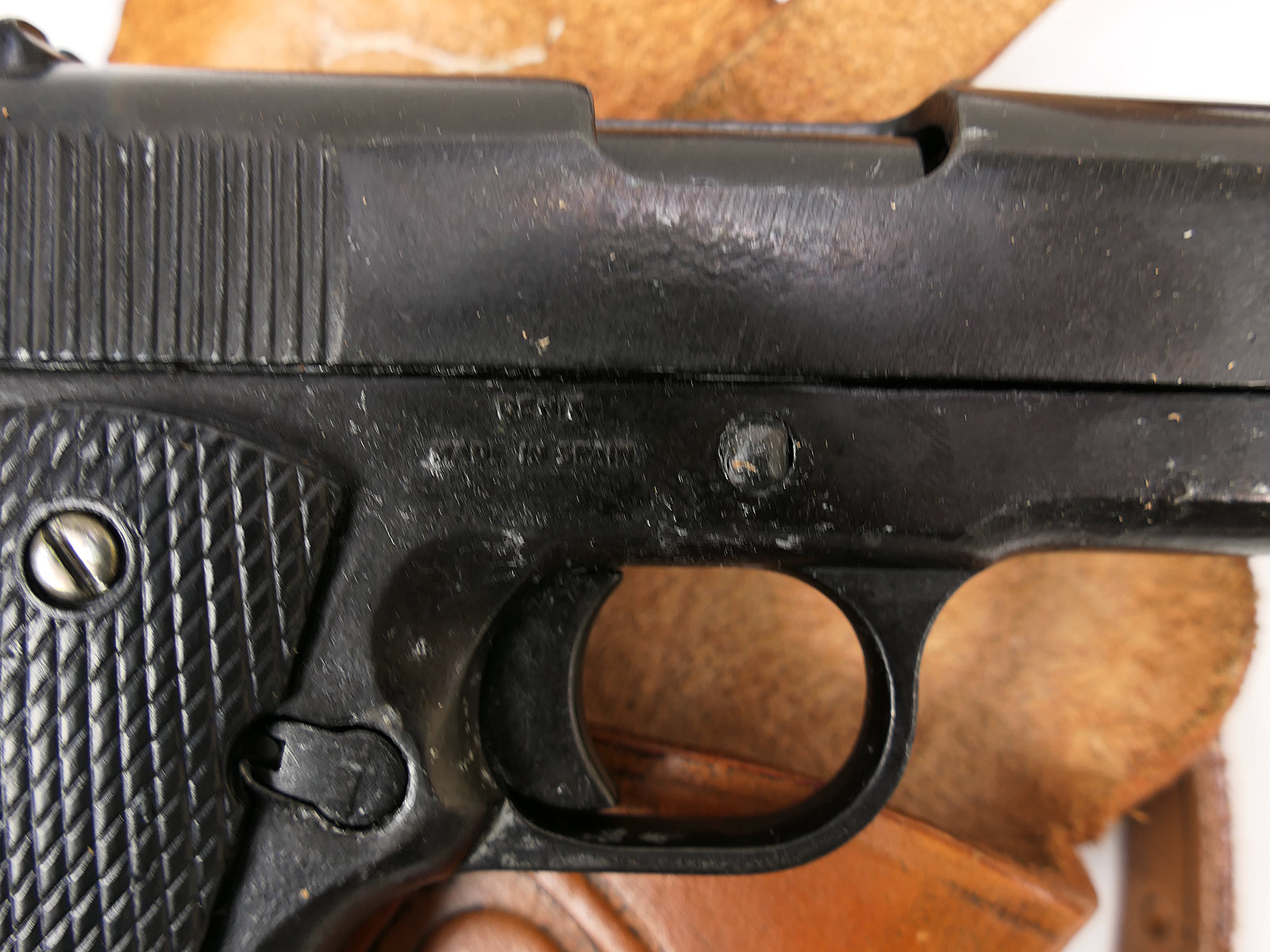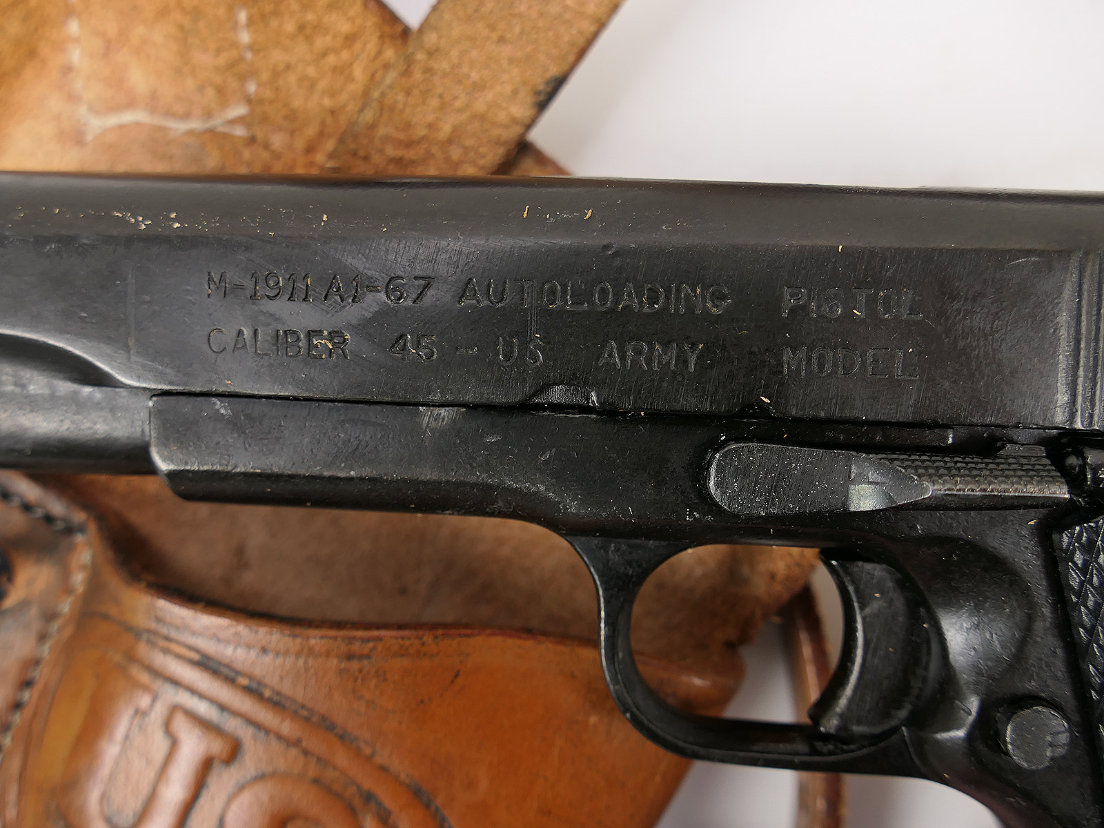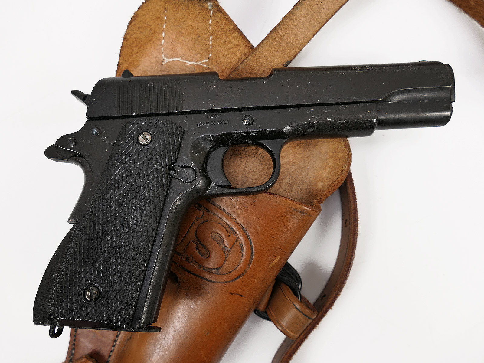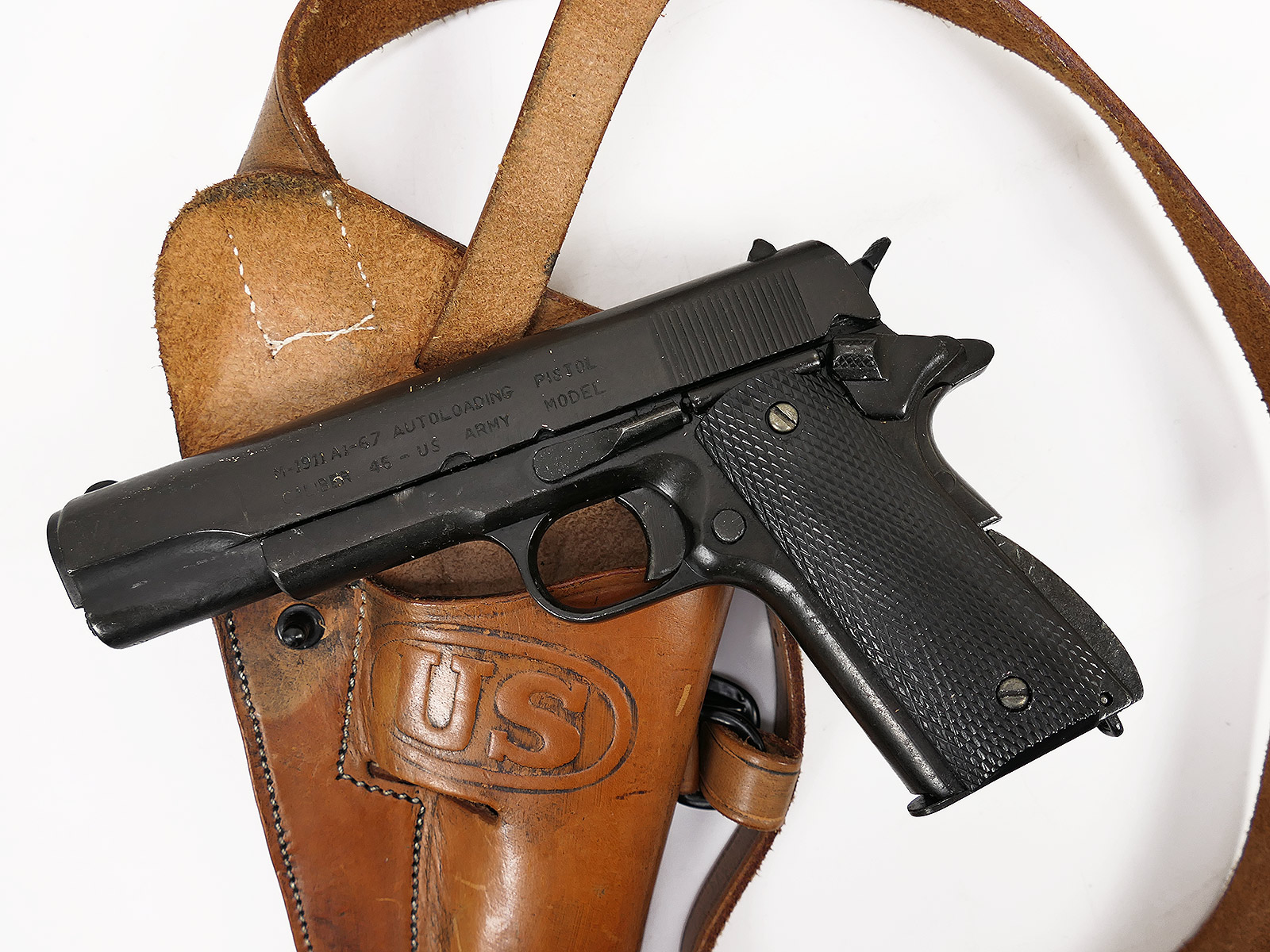 Properties "US Army Colt M1911 Denix decorative replica pistol with leather shoulder holster COLLECTION"