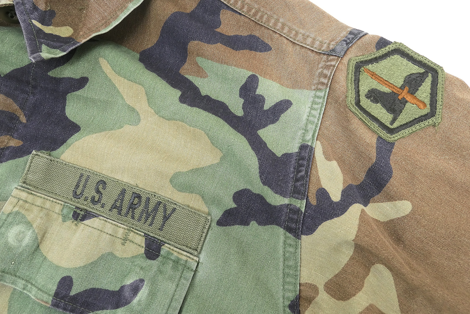 US Army Field Shirt Coat Camouflage Woodland 66th Military Intelligence Brigade - Medium
