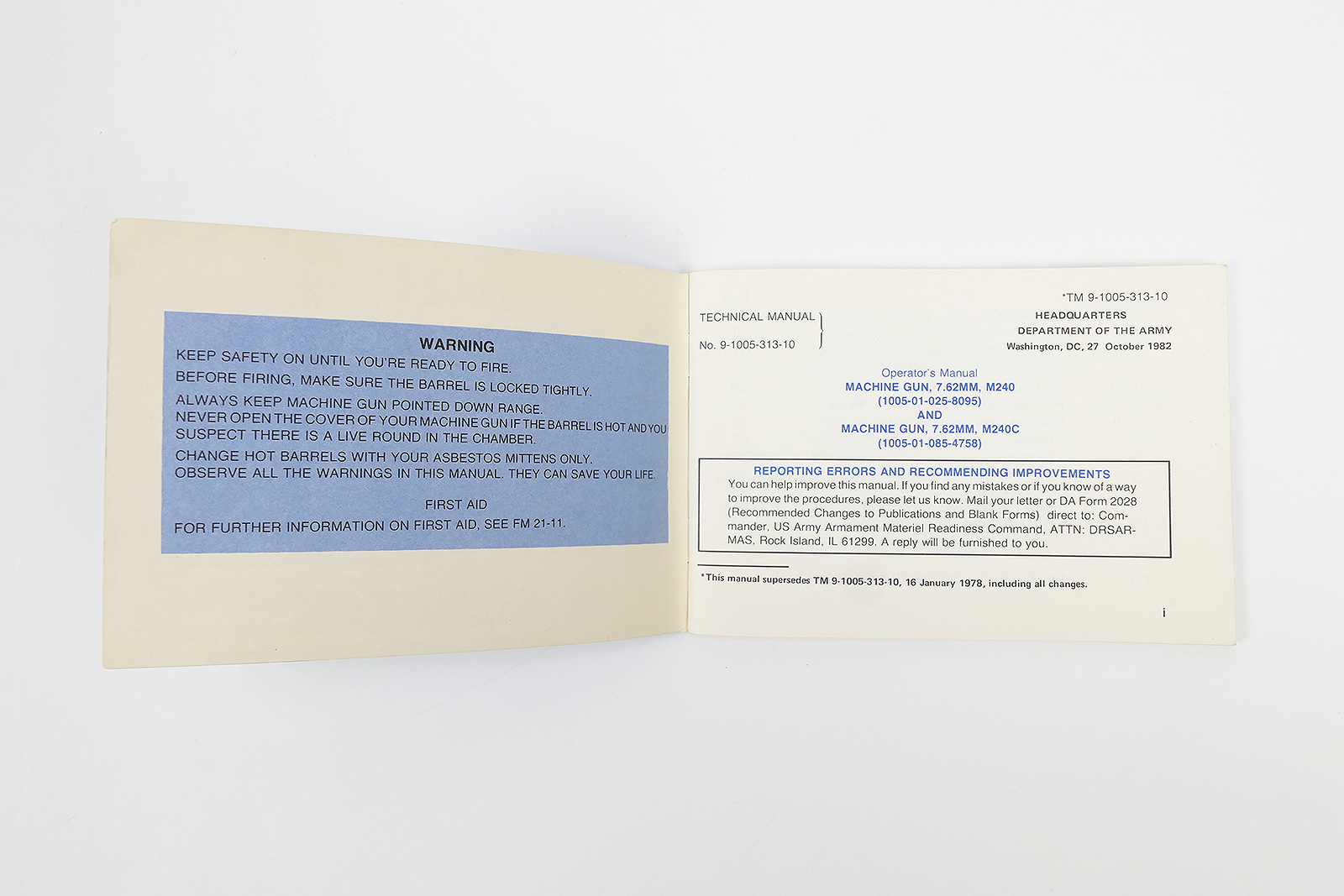1x US Army Manual TM 9-1005-313-10