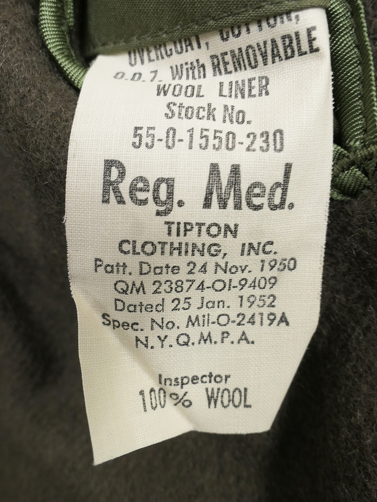 US ARMY Overcoat Cotton O.D.7 Mit Liner - Medium Regular 1950