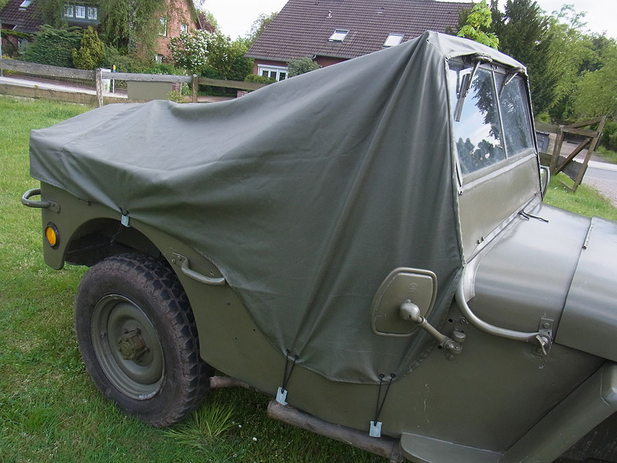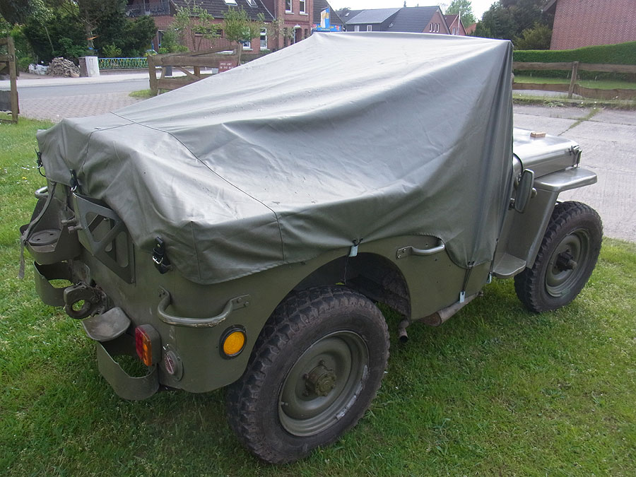 New production, cover / tarpaulin made of water-repellent material for Willys Jeep, MB, Hotchkiss, Ford GPW etc., protects the interior and the equipment.
