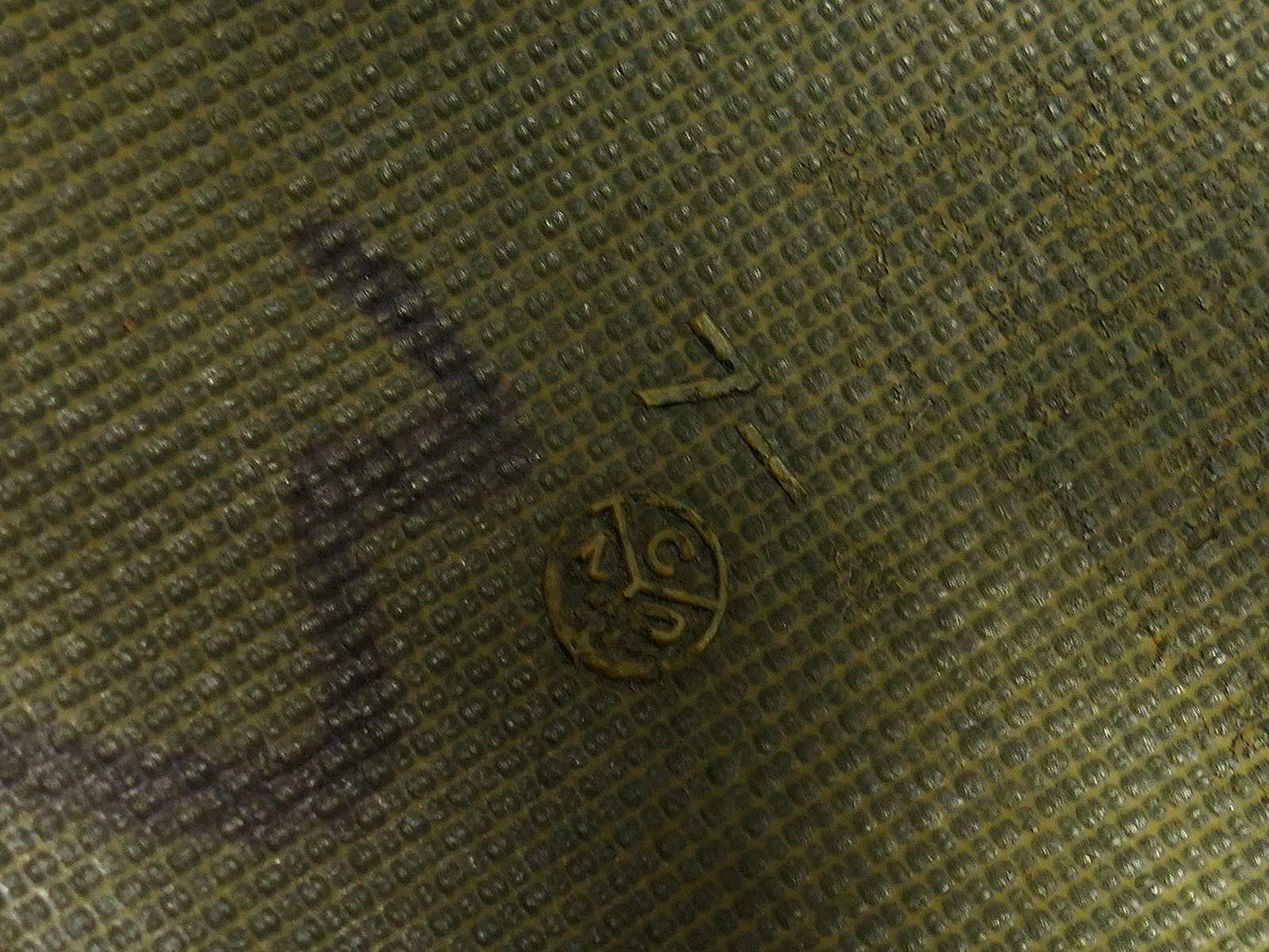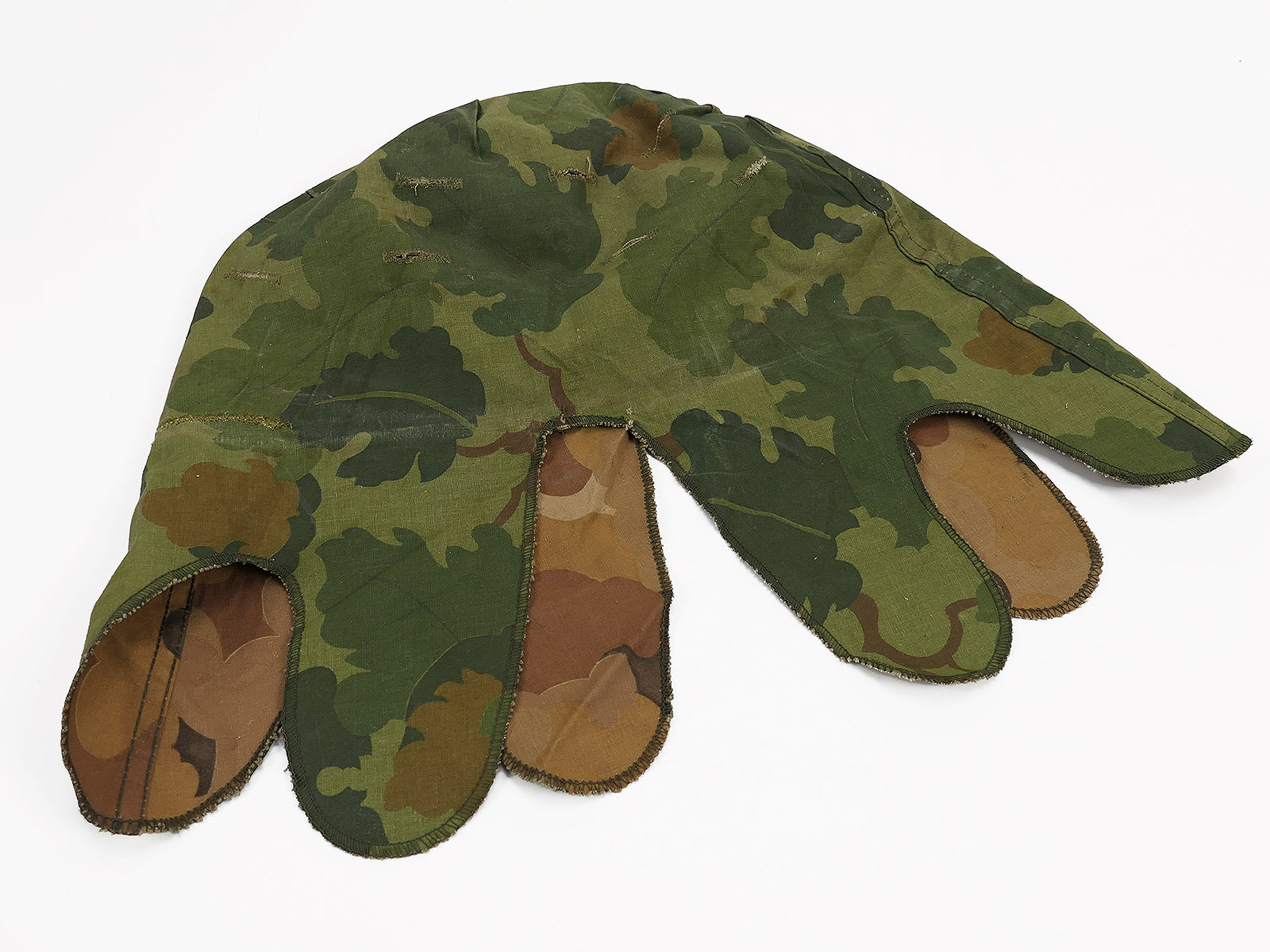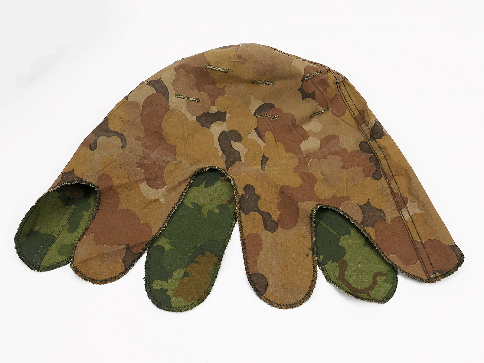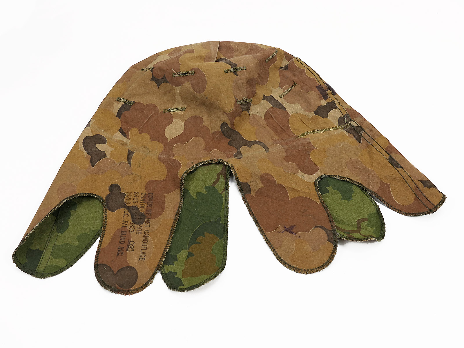 with very nice original fibre liner and original Mitchell camouflage helmet cover, dated 1974.