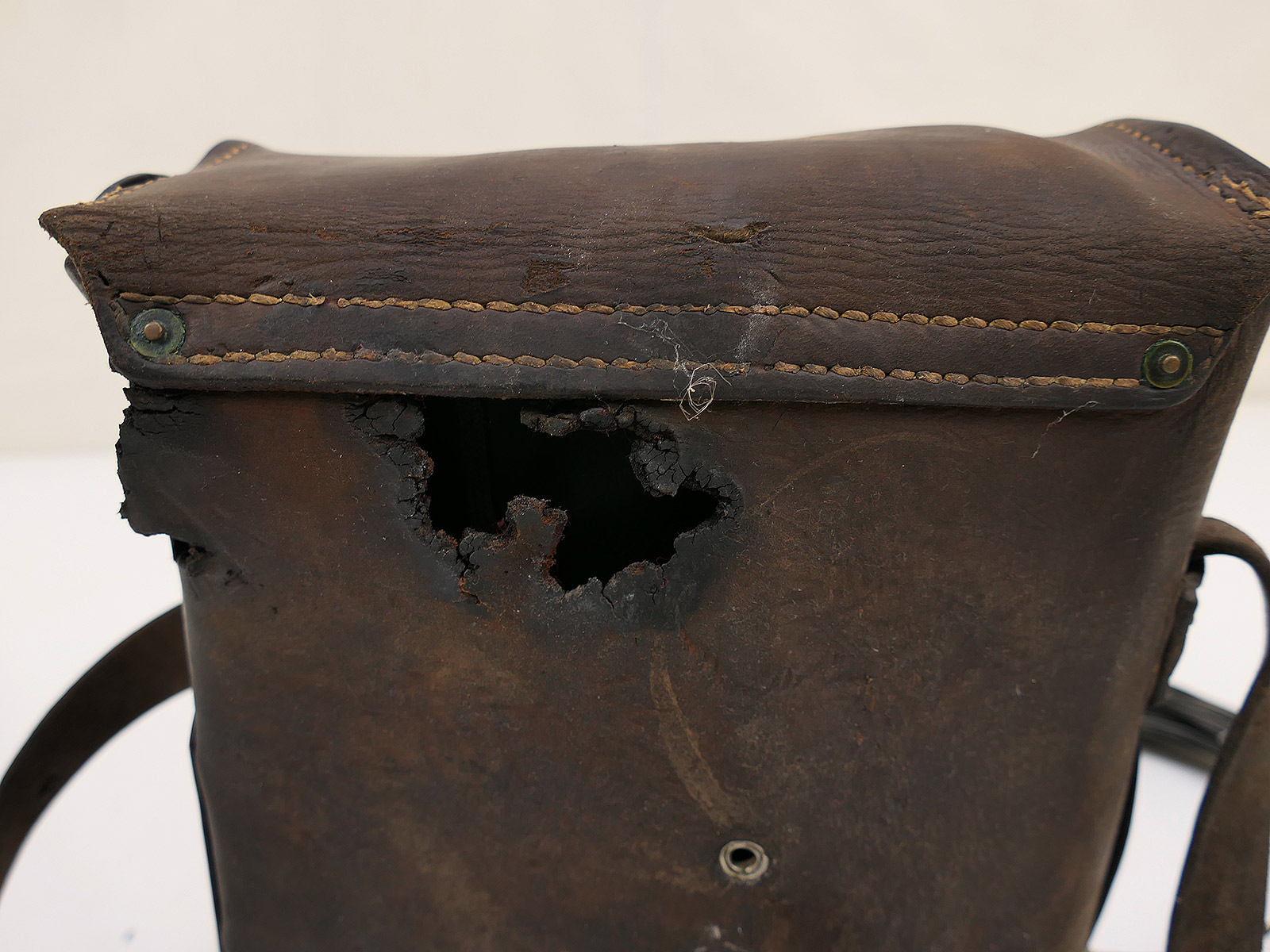 . Used condition, damage to the leather case, no batteries included.