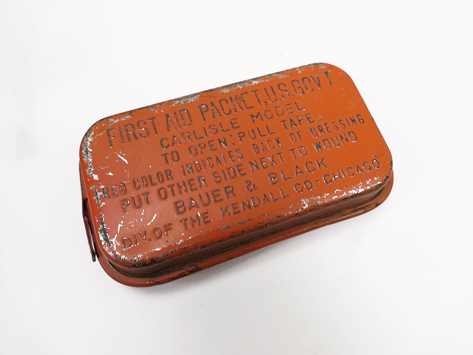 Properties "US Army WW2 First Aid Kit – Pouch + Original Carlisle First Aid Dressing Pack in a Metal Tin, RED"