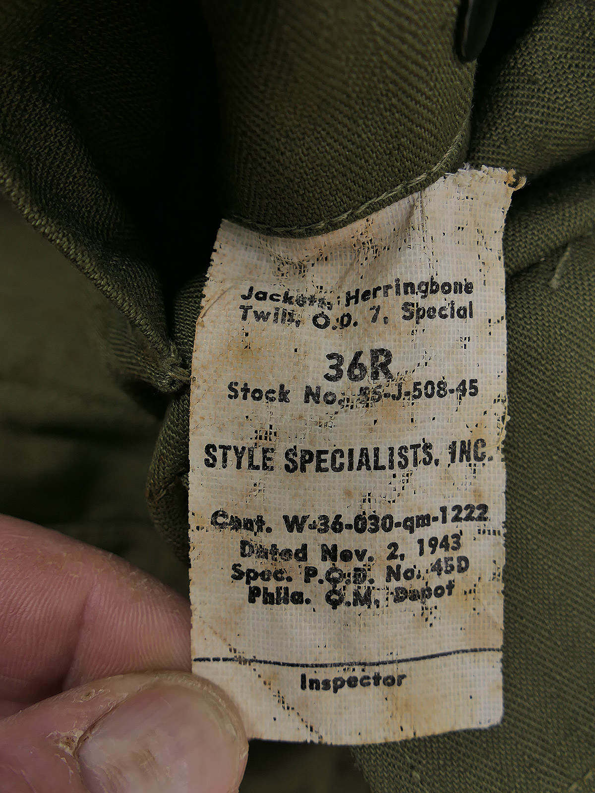 US ARMY WW2 Herringbone Twill Jacket 1945 OG7 - Small / Medium