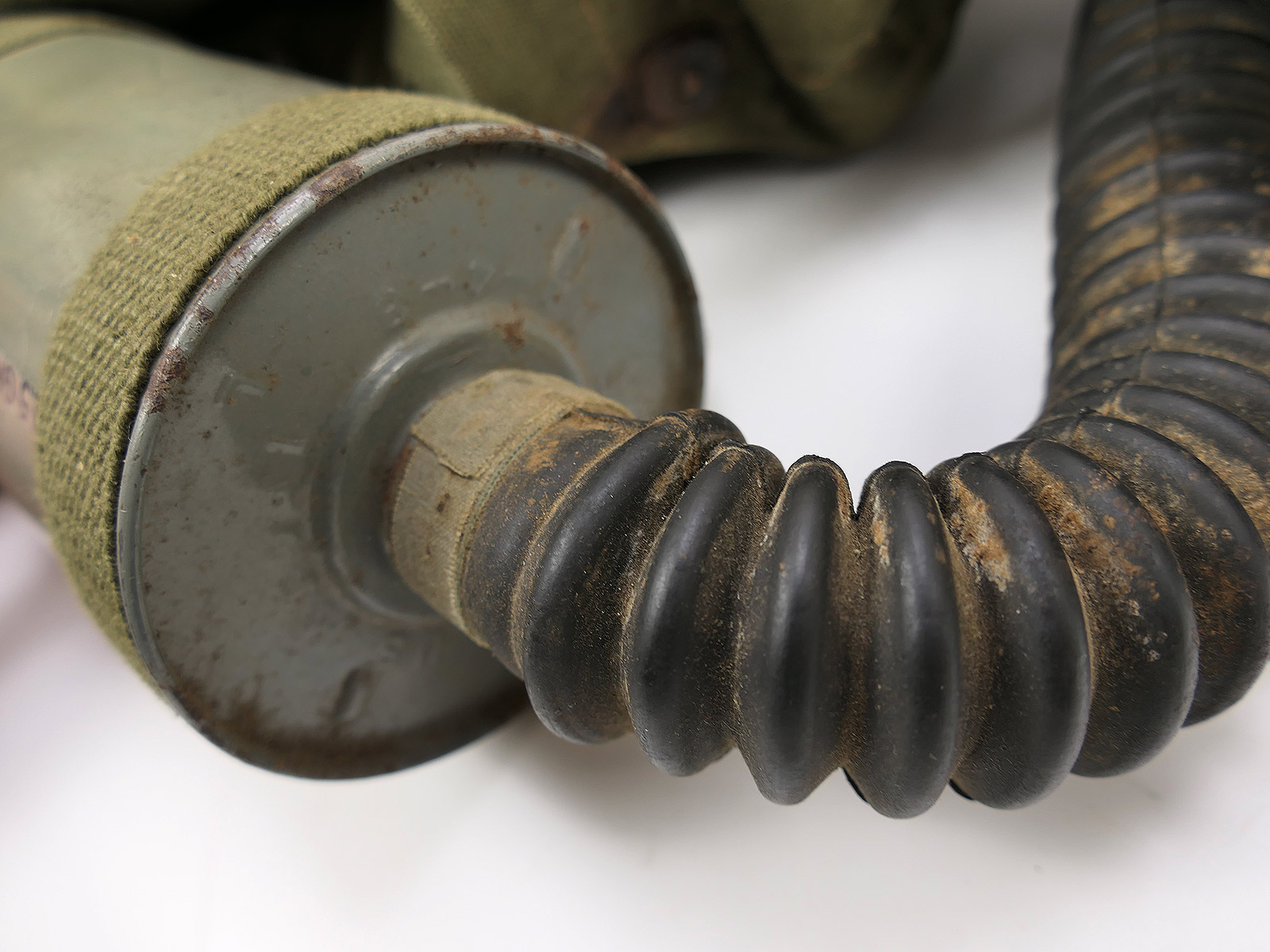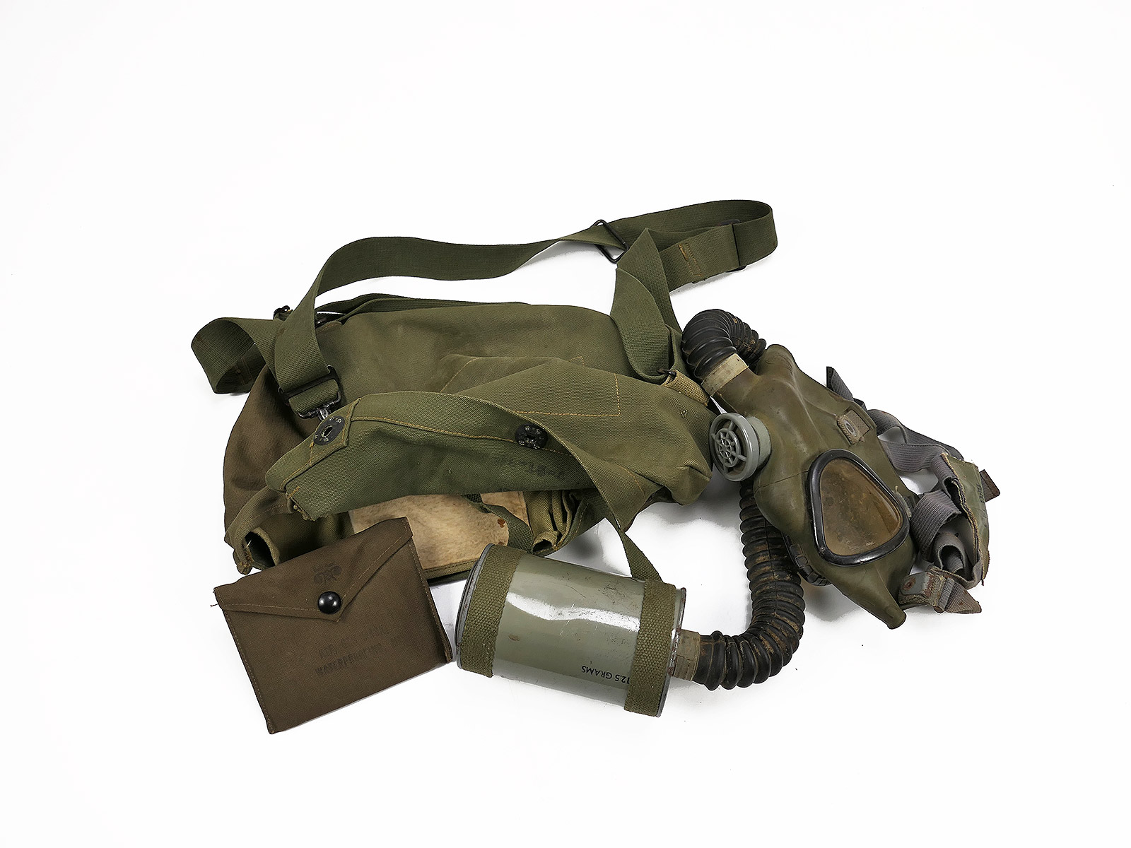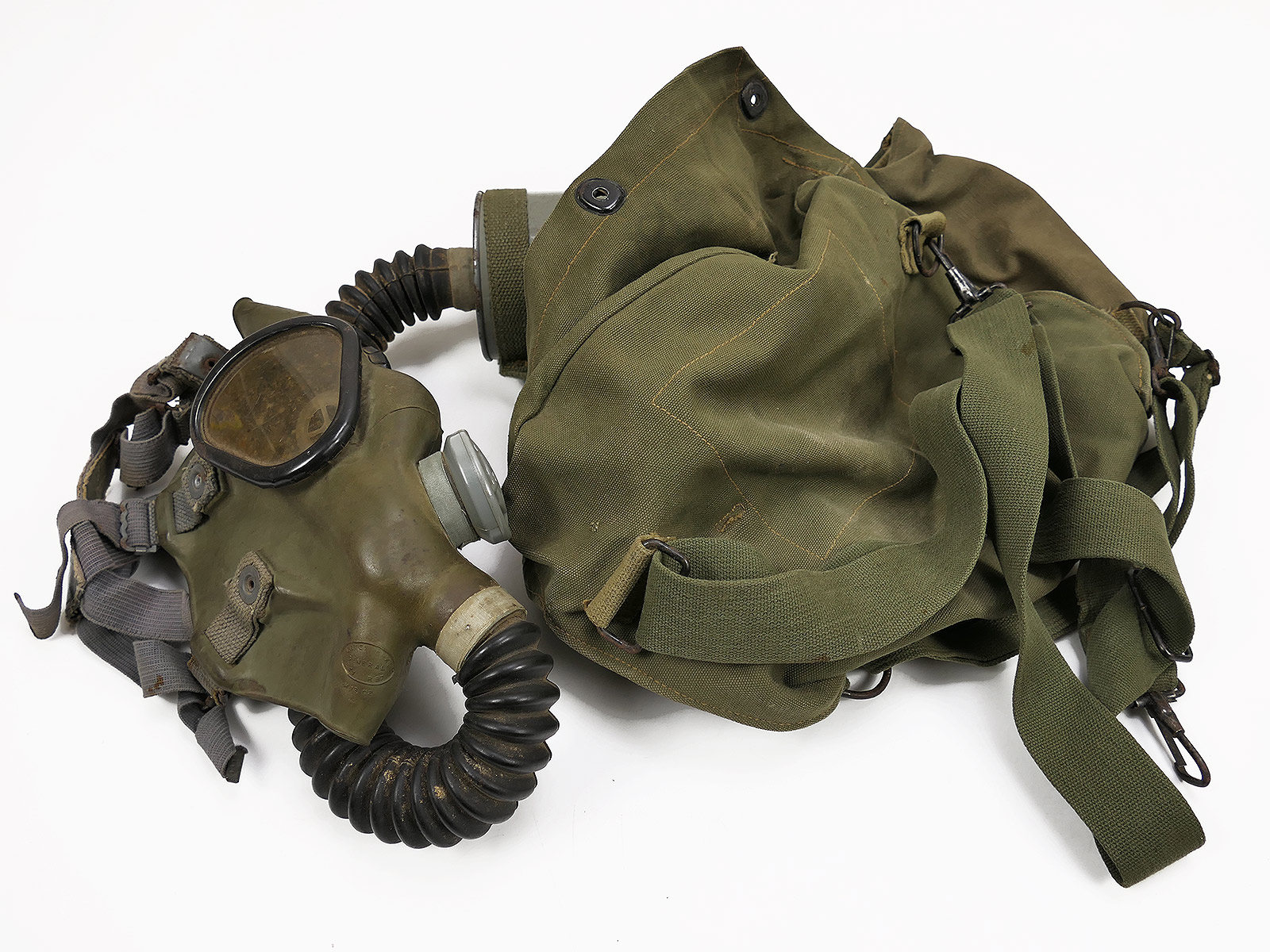 US Army WW2 Lightweight Service Gas Mask w/ Bag Gas Mask with Gas Mask Bag COLLECTION BATTLE WORN