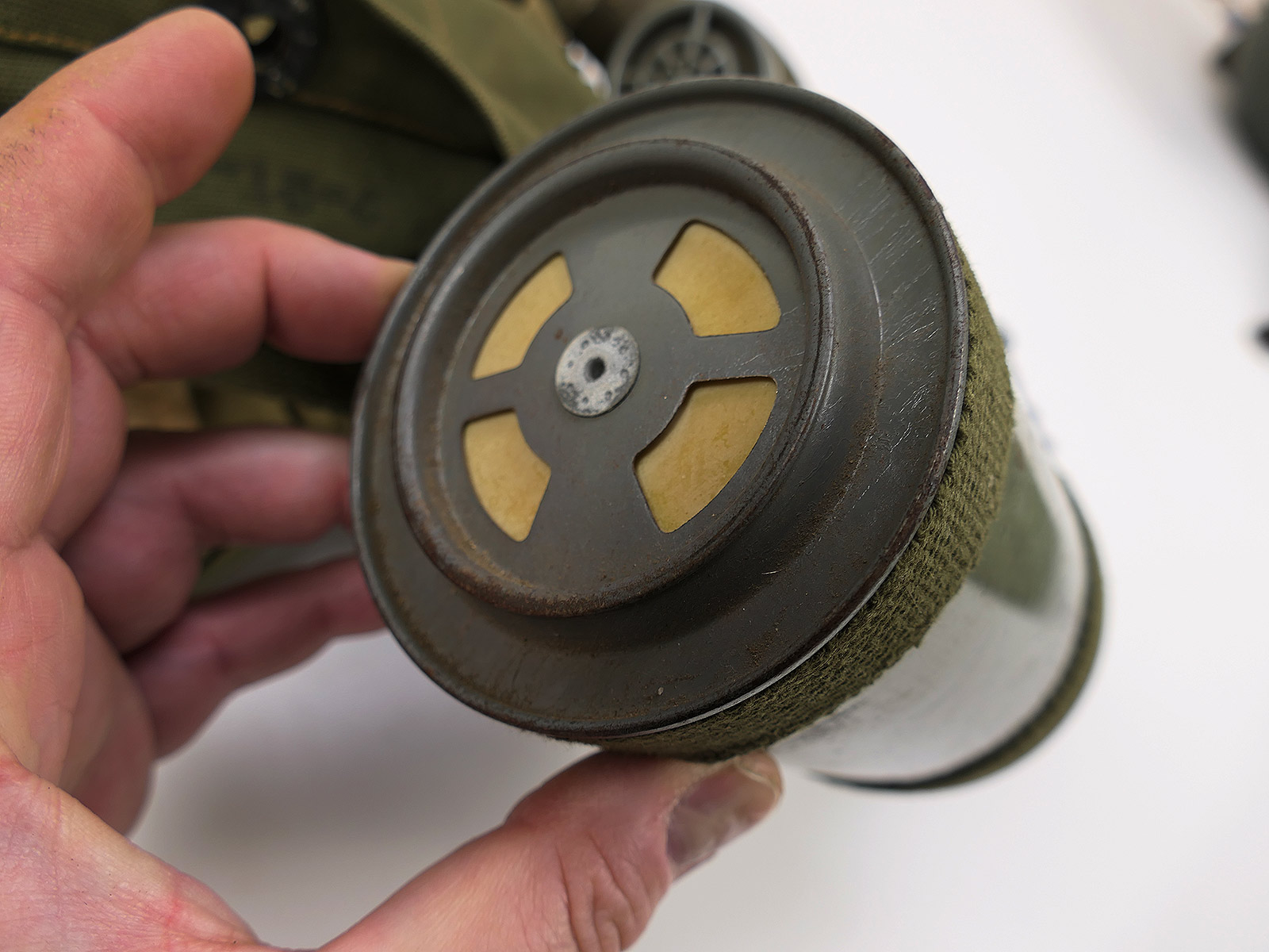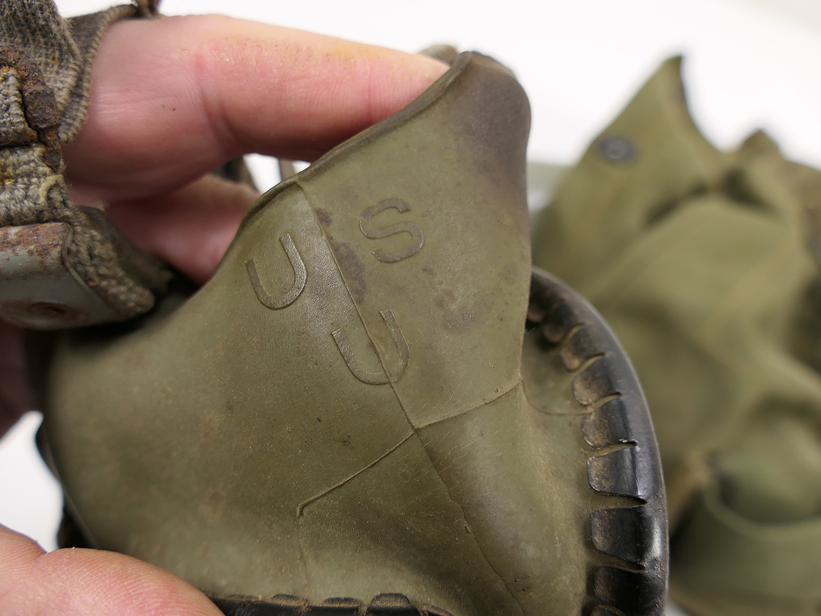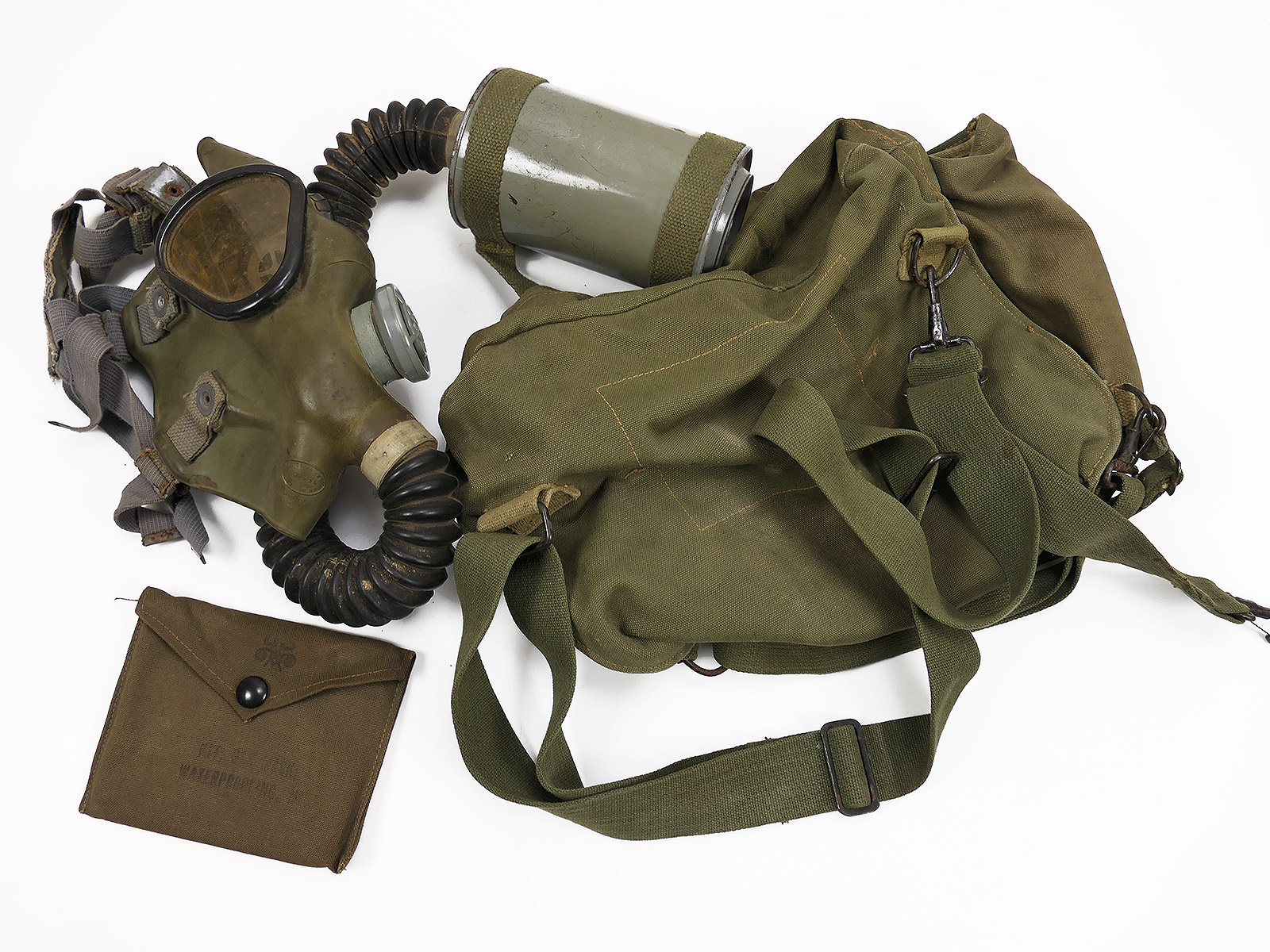 US Army WW2 Lightweight Service Gas Mask w/ Bag Gas Mask with Gas Mask Bag COLLECTION BATTLE WORN