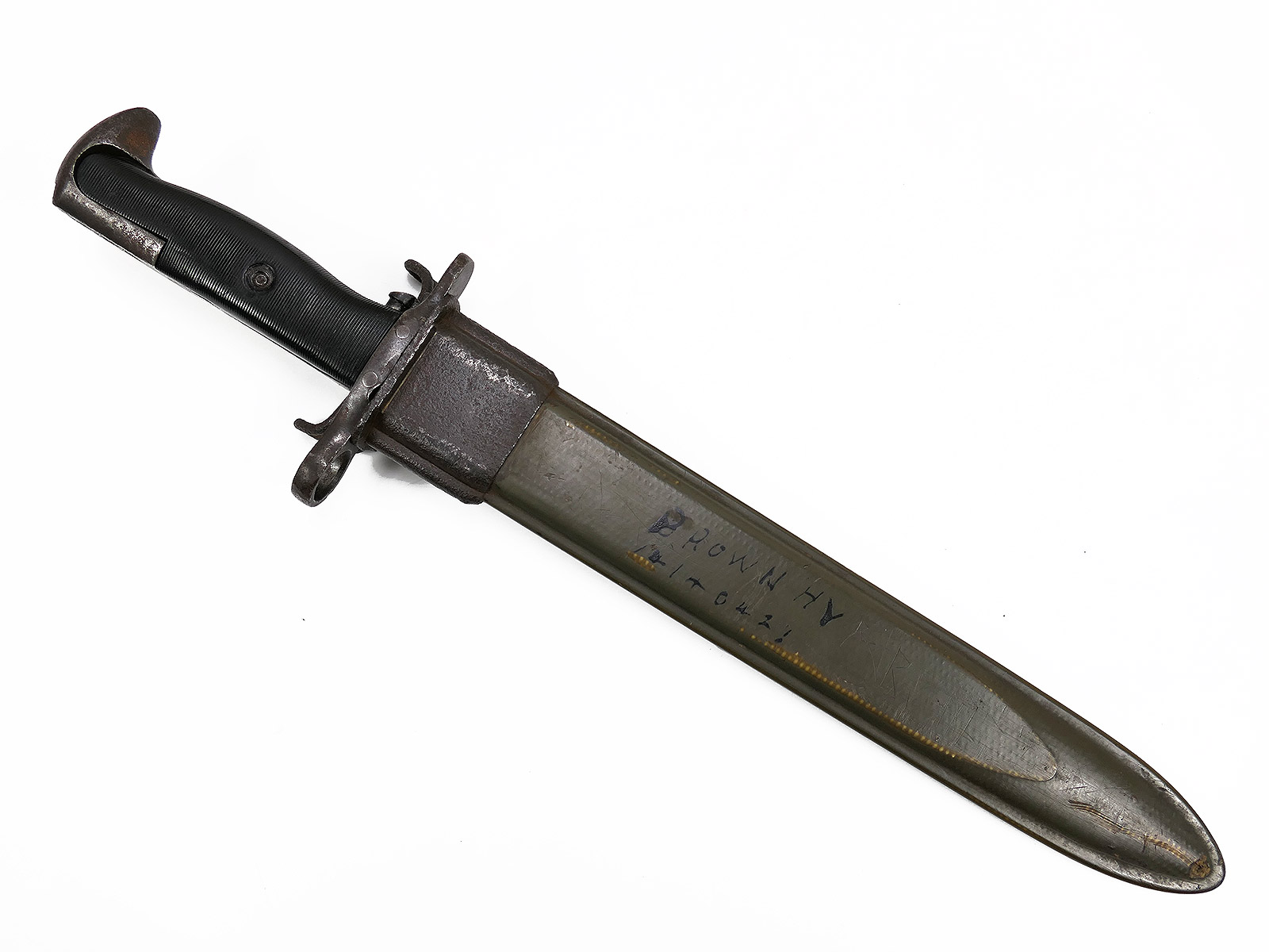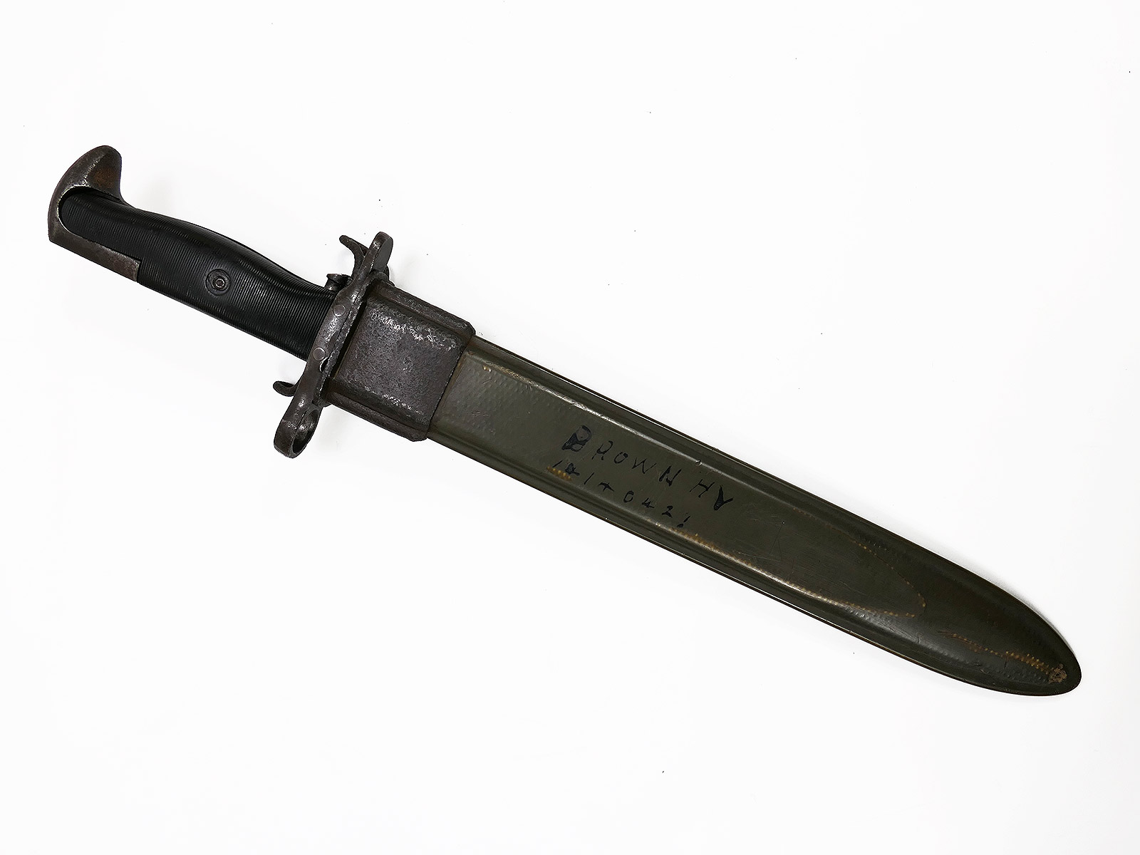 US Army WW2 M1 bayonet in scabbard for M1 Garand side rifle / Collection BATTLE WORN NORMANDIE