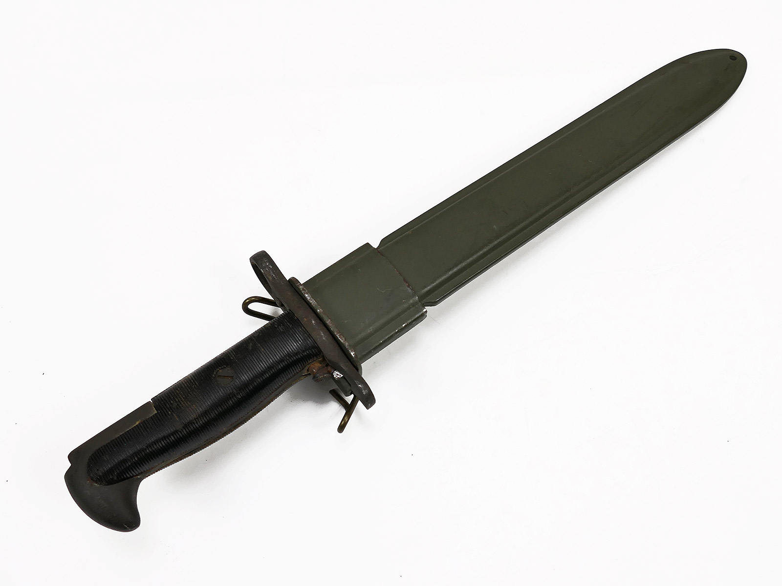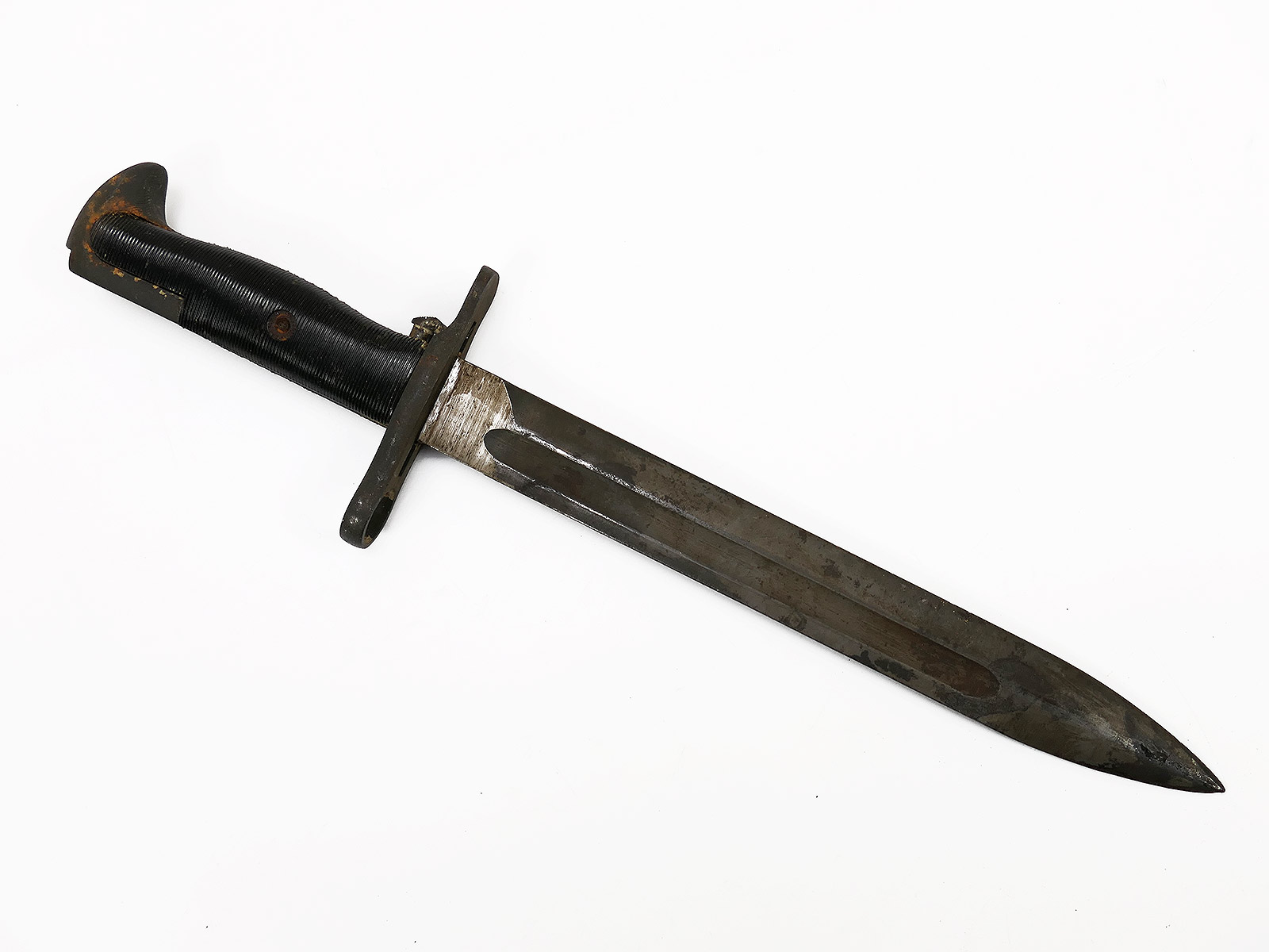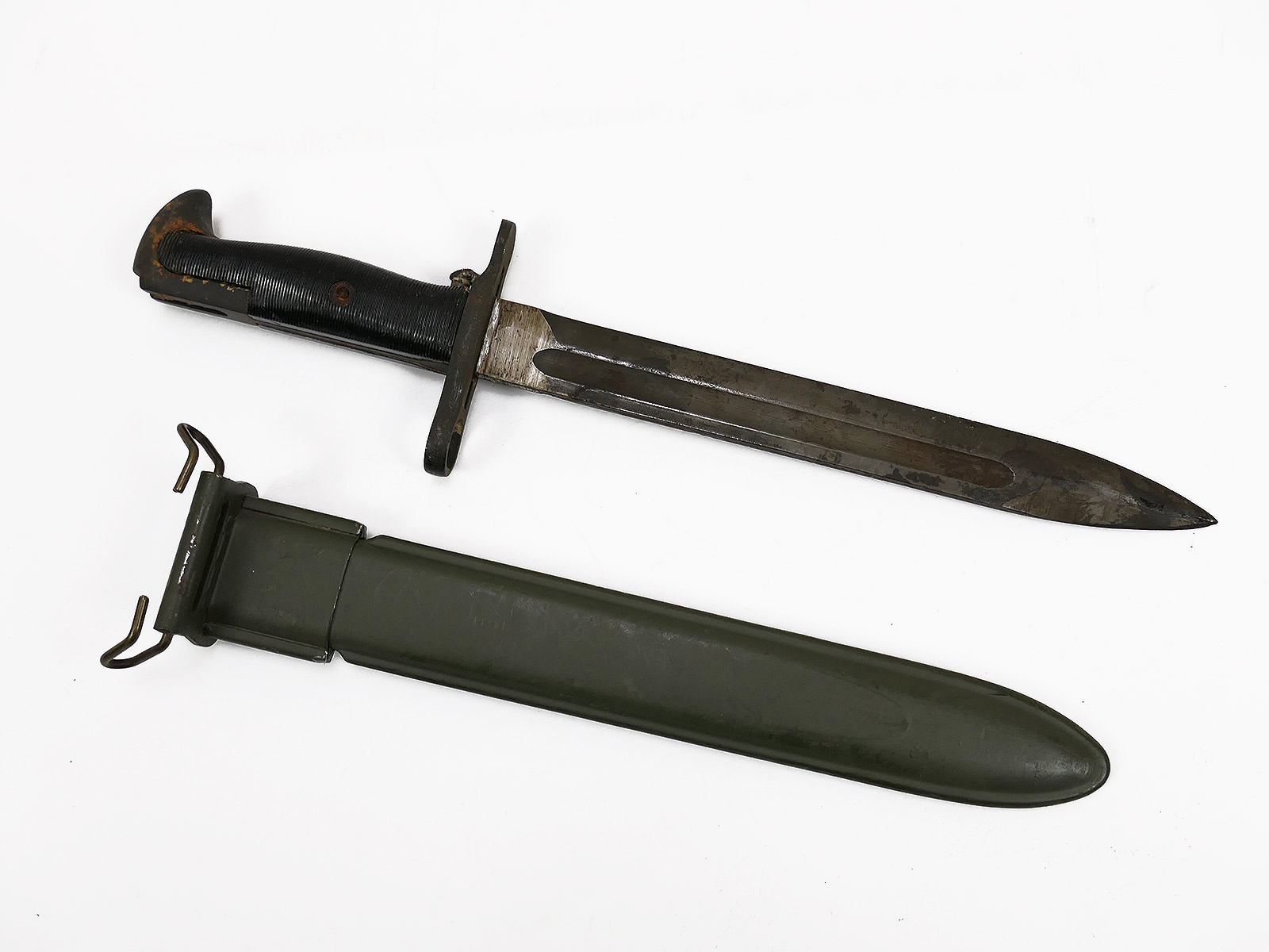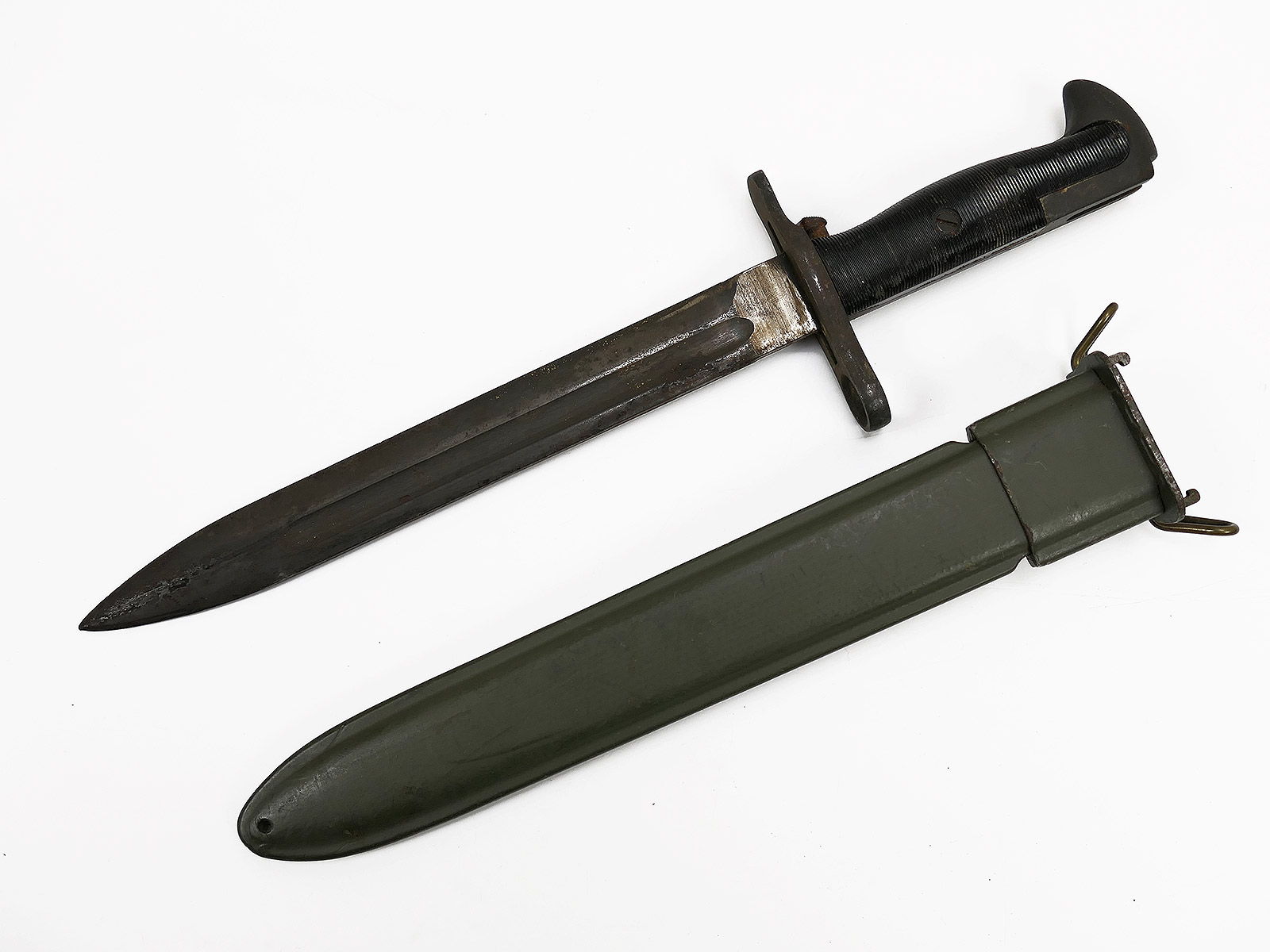 US Army WW2 M1 bayonet in scabbard for M1 Garand side rifle / Collection BATTLE WORN