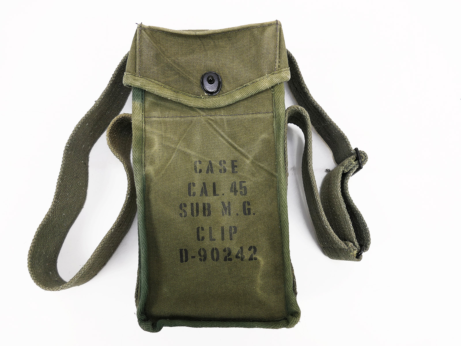 US Army WW2 magazine pouch for .45 submachine gun with carrying strap / Collection: BATTLE WORN
