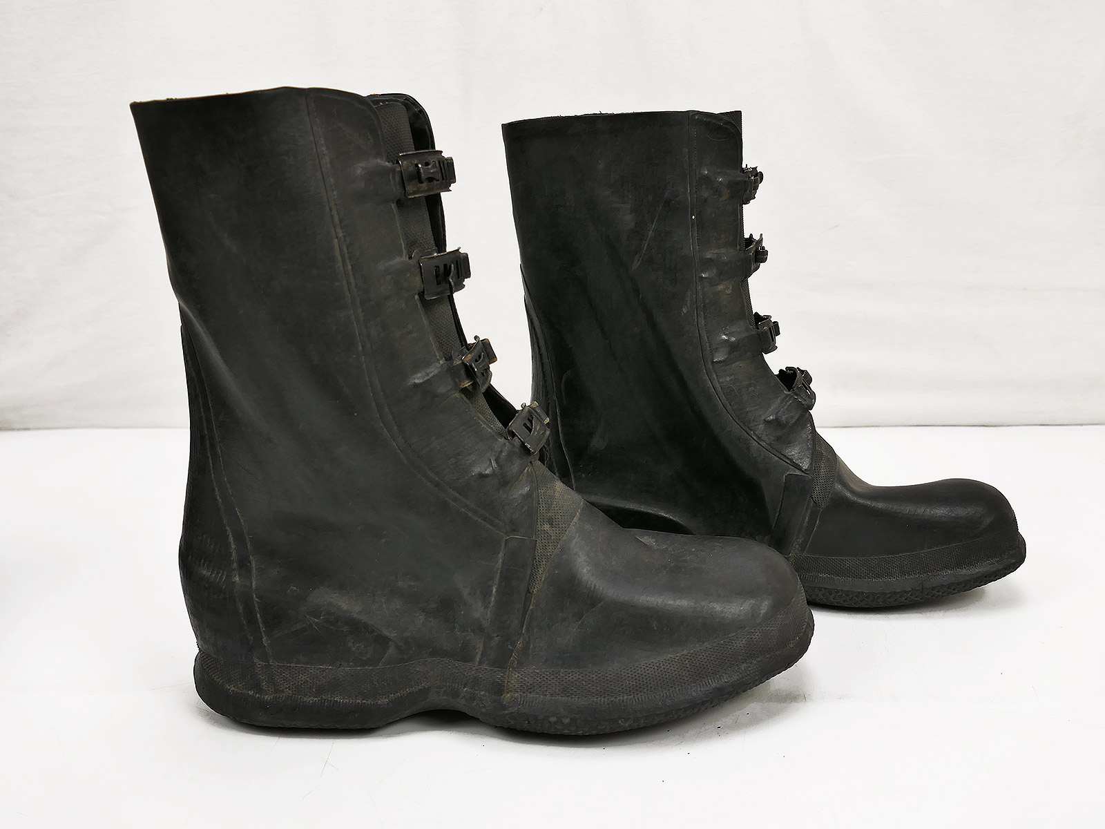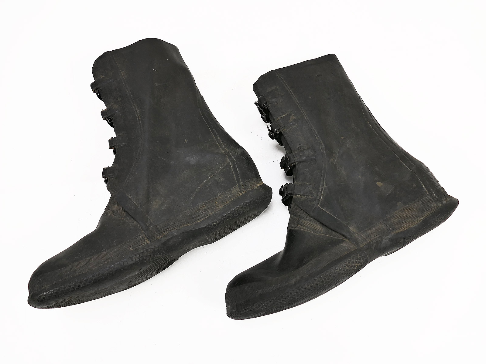 Properties "US ARMY WW2 Overshoes Arctic Rubber Over Boots Shoe Pac Size 8 circa 1942 Collection BATTLE WORN"