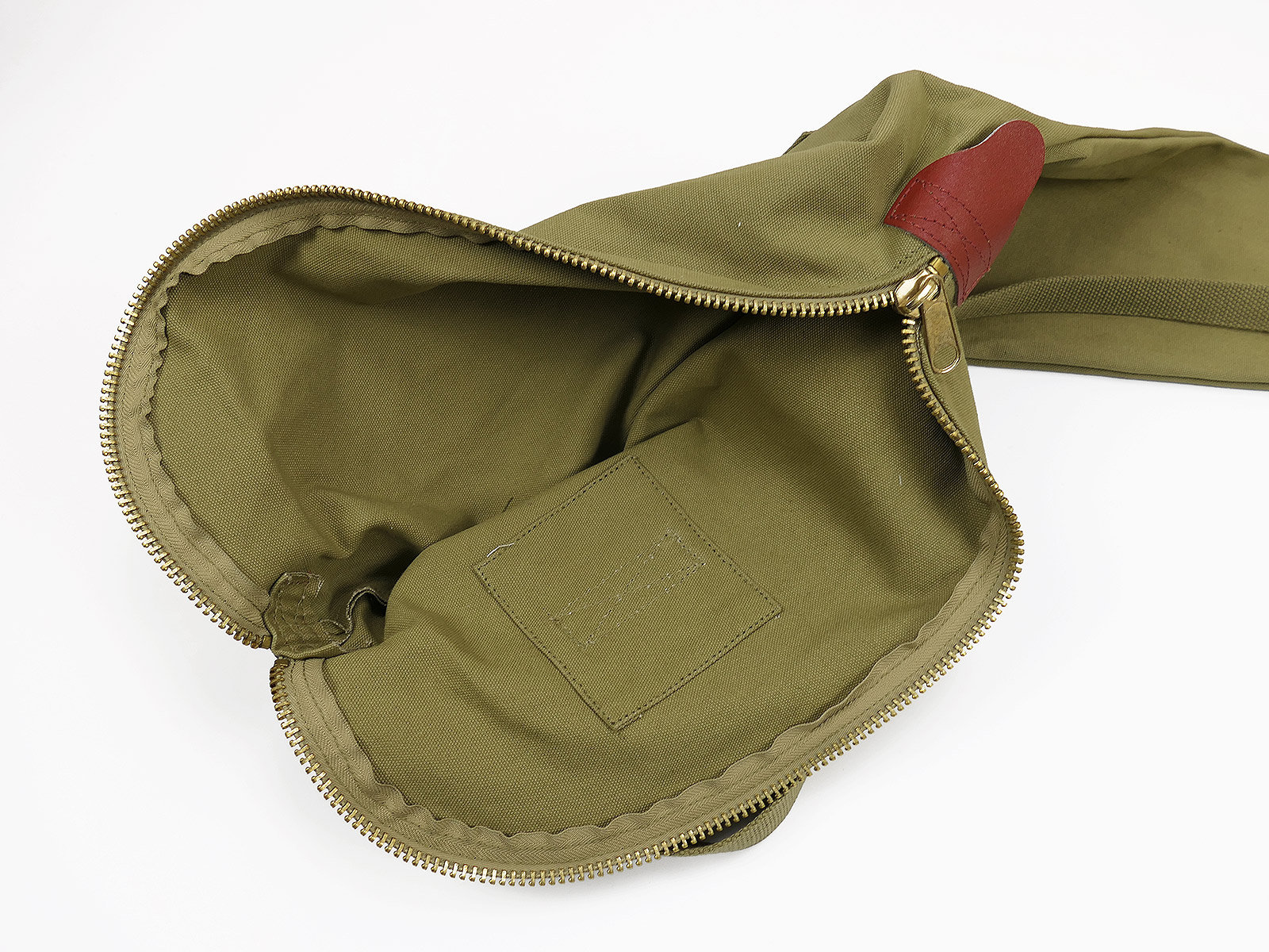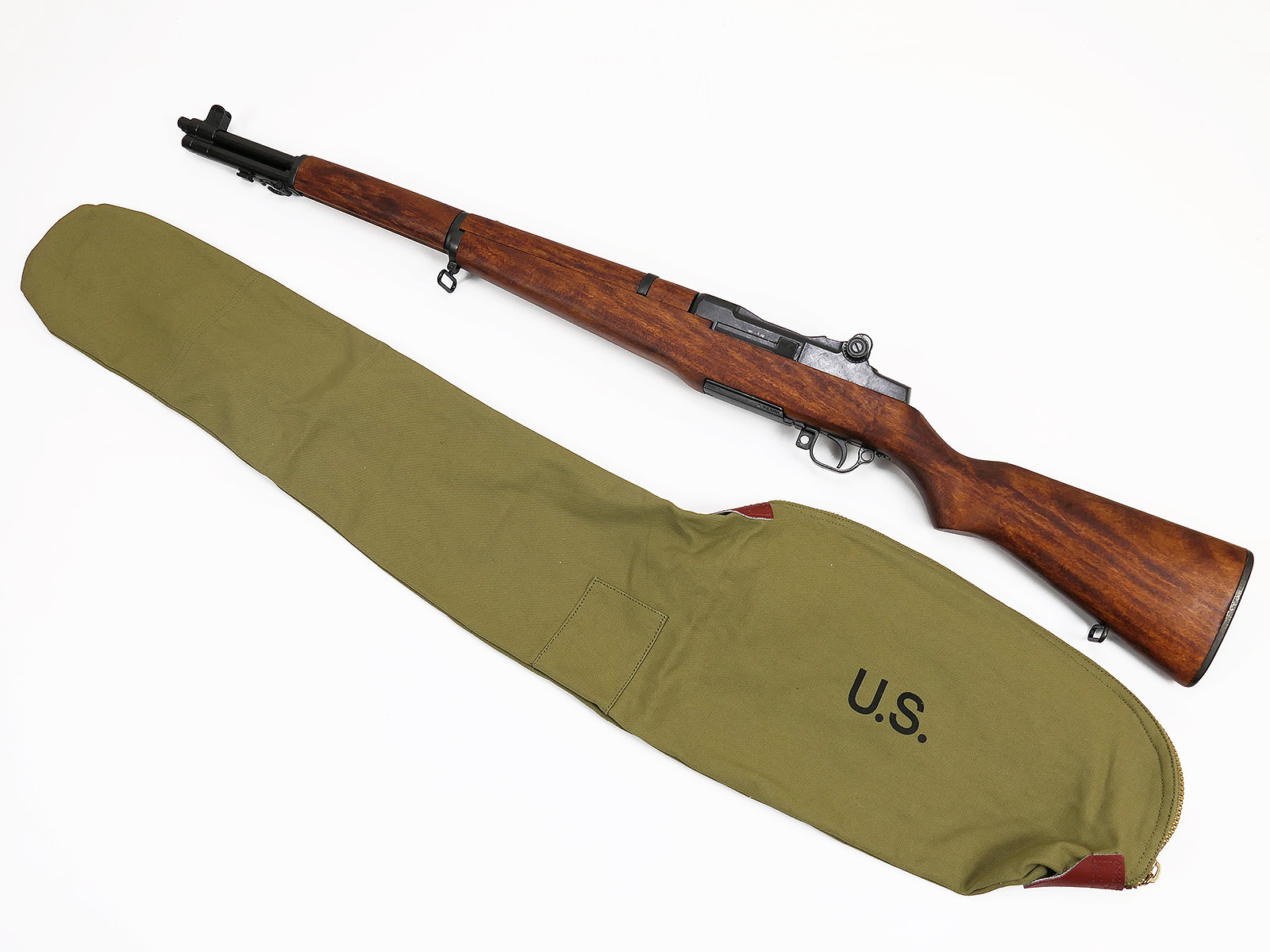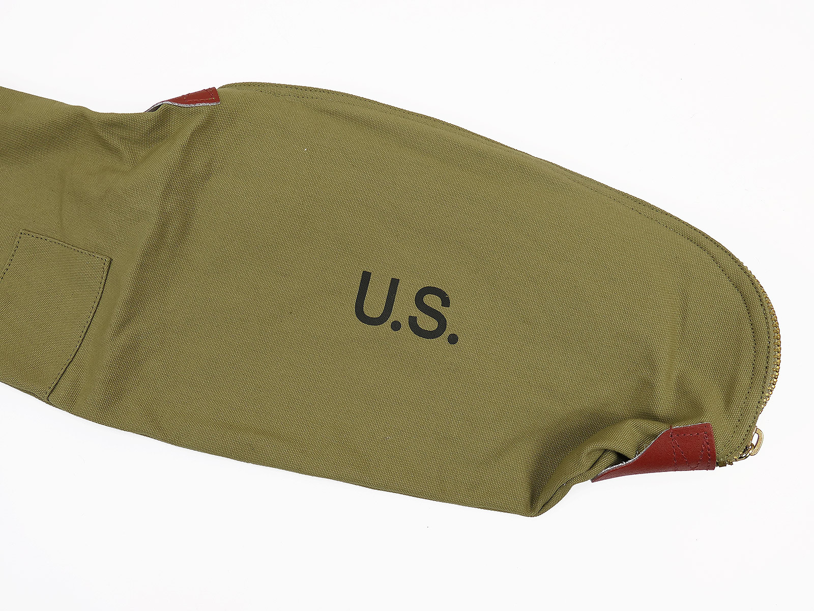 Practical protective bag for the US M1 Garand, with sturdy brass zip and leather reinforcements at the zipper ends.