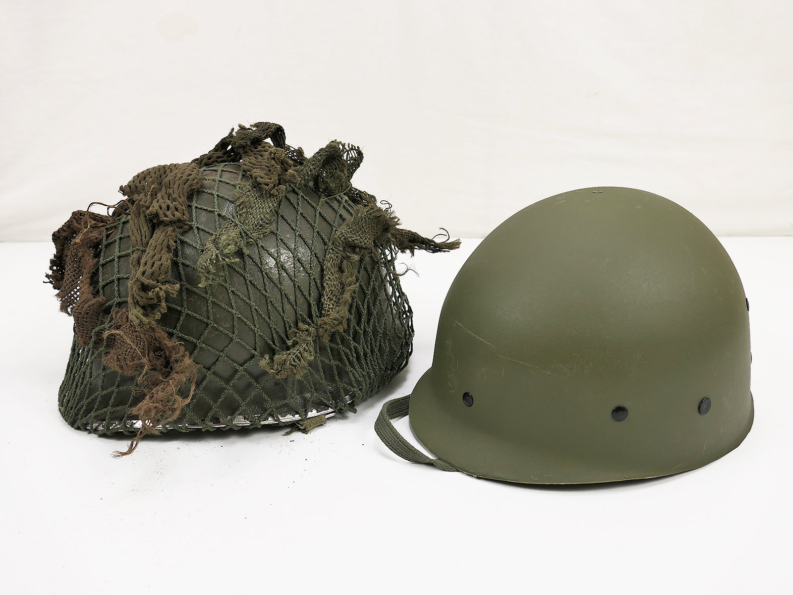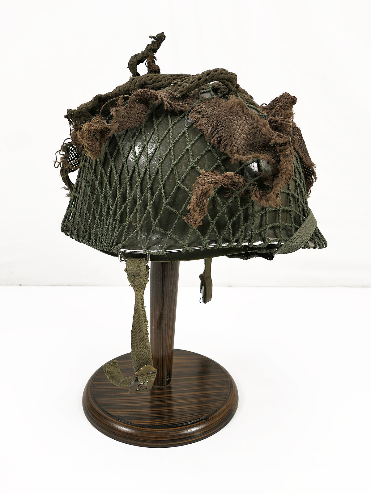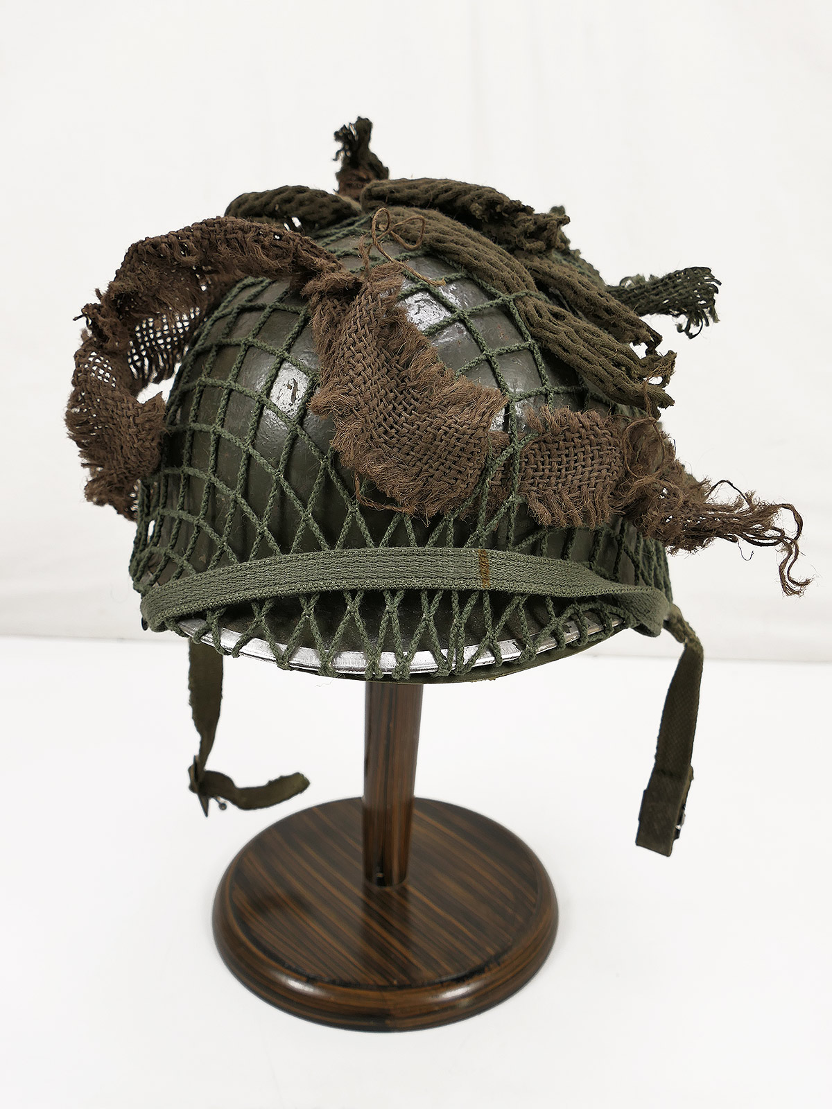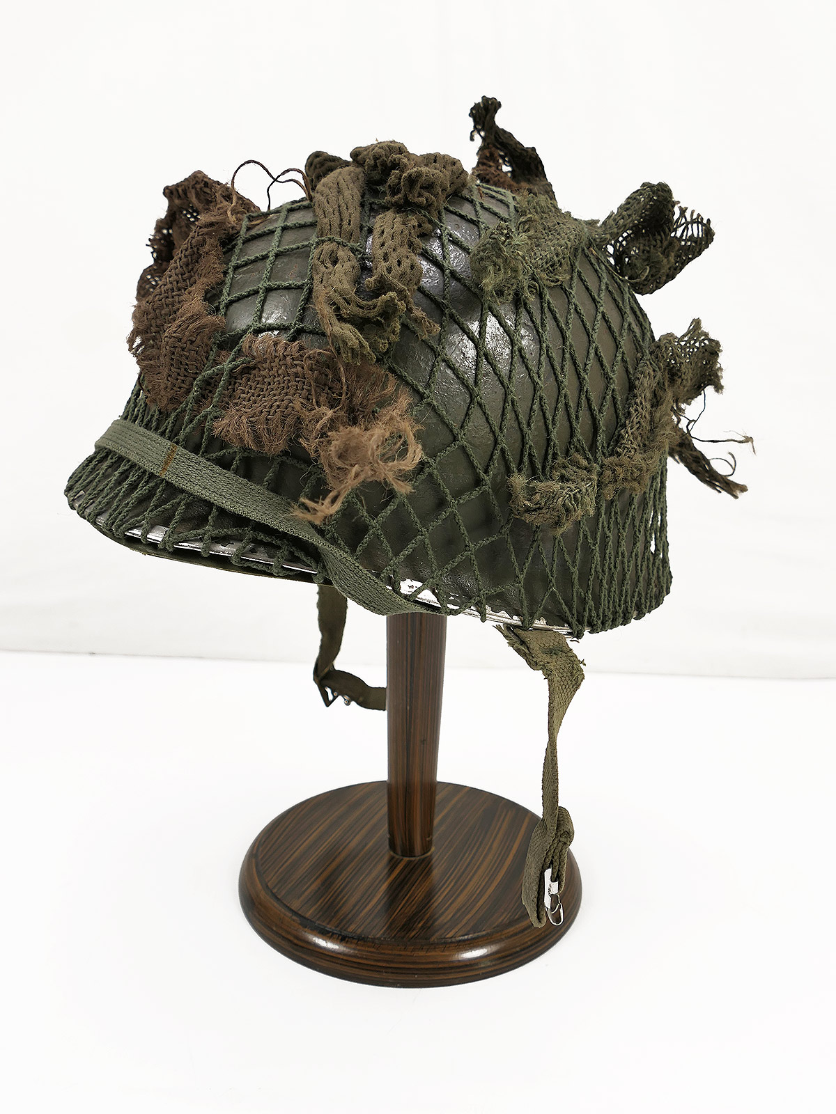 US Army WW2-style steel helmet + helmet net + camouflage fabric – Battle-worn collection