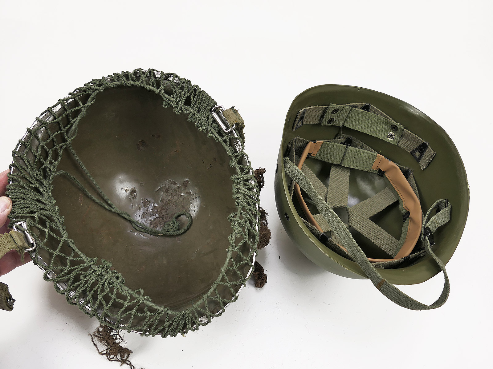 with modern shell and post-war plastic liner / helmet net / camouflage material