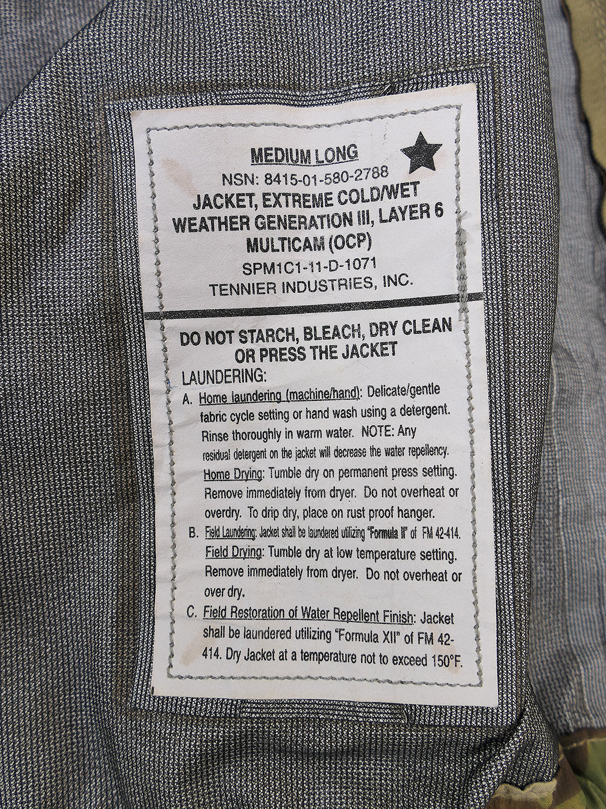 US GI Multicam Gen III L6 ECWCS Parka Extreme Cold/wet Weather Camouflage Goretex Jacket Medium Long